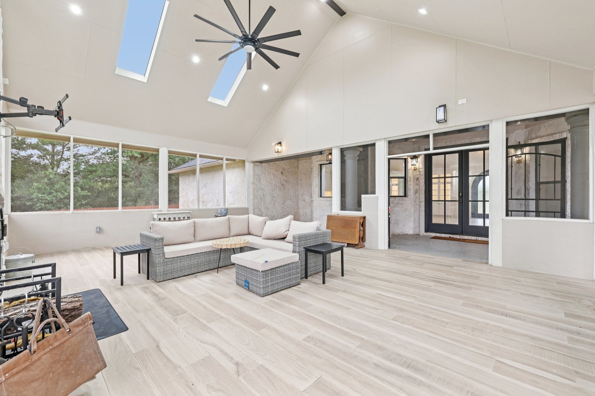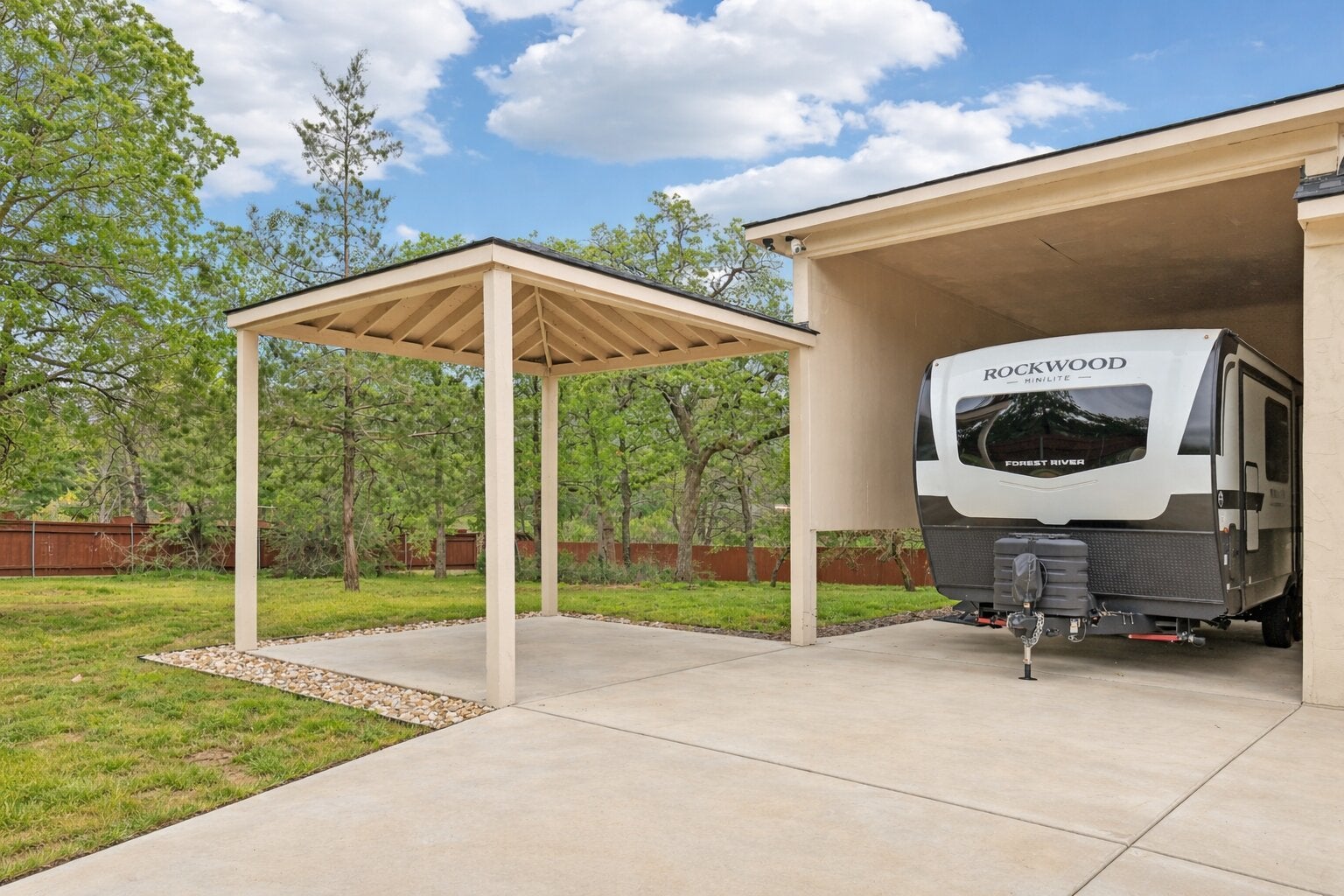Retreat to a fully updated property designed for both everyday living and long-term peace of mind. Where mornings start on the porch and evenings gather around the fire. Major improvements include a new roof, upgraded systems, custom finishes, a whole-house generator, private guest quarters, and a true shop setup with a climate-controlled studio. Supported by a private well for irrigation, the property blends efficiency with lifestyle, offering a full RV setup and screened outdoor living spaces, including a vaulted-ceiling gazebo with its own fireplace. Inside, the home carries a clean, elevated feel with smooth level 5 walls, new tile flooring, and all-new lighting and ceiling fans throughout. The main living areas center around a custom marble fireplace and include built-ins in both the living and dining spaces, a dedicated workspace, and a well-placed Murphy bed for flexibility. The kitchen is equipped with new appliances, plantation shutters throughout, and a custom iron double front door. Updated tile bathrooms, new AC systems, and a whole-house water filtration system provide comfort and reliability. Beyond the main home, a detached 1 bed / half bath guest quarters adds privacy for guests. Through the automatic gate, a large workshop (50 x 24) with two oversized bays and a finished, air-conditioned studio creates space for hobbies, business, or fitness. The RV setup includes electric, water, and septic hookups, while the automatic whole-house generator ensures readiness. Outdoor living stands out with an oversized screened-in porch featuring a stone wood-burning fireplace and vaulted ceiling, ideal for hosting or quiet evenings. A freshly stained fence frames the yard with a polished finish. Properties with this level of updates, flexibility, and functionality are rare. This is one you need to experience in person.