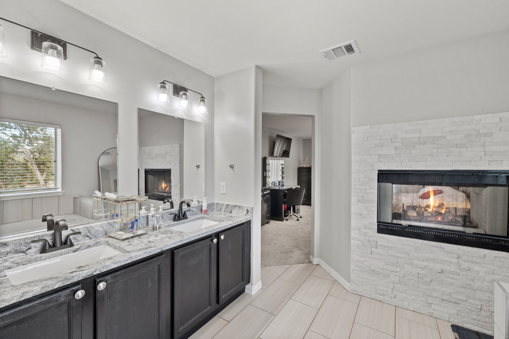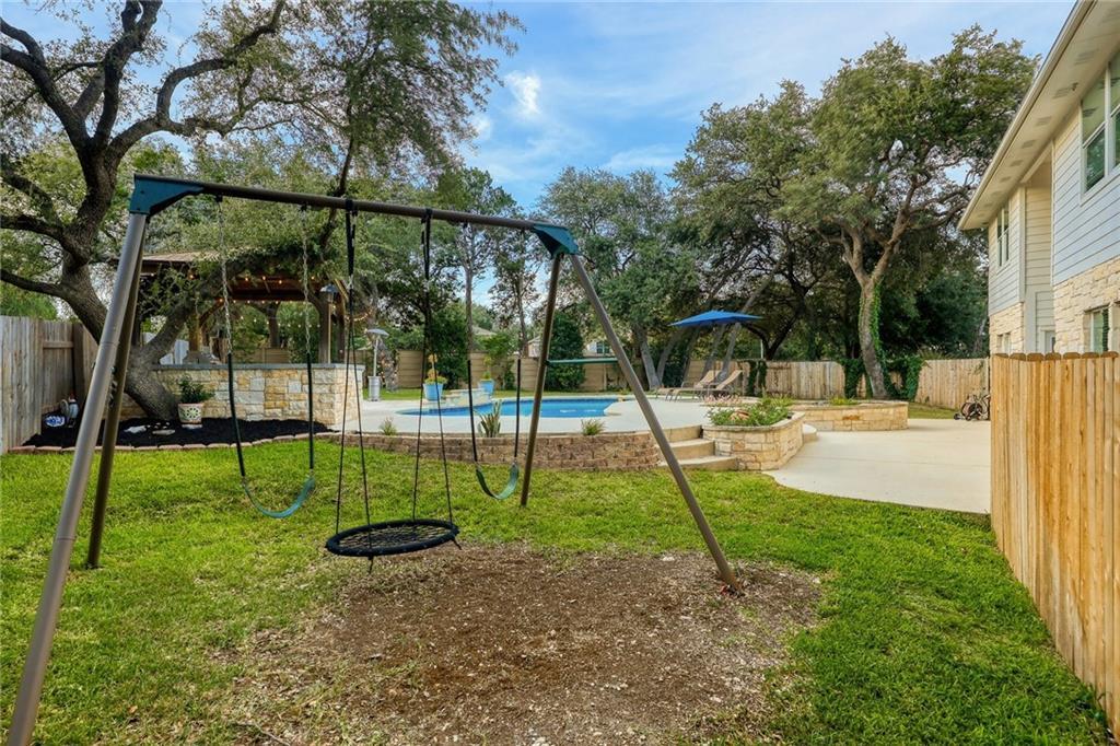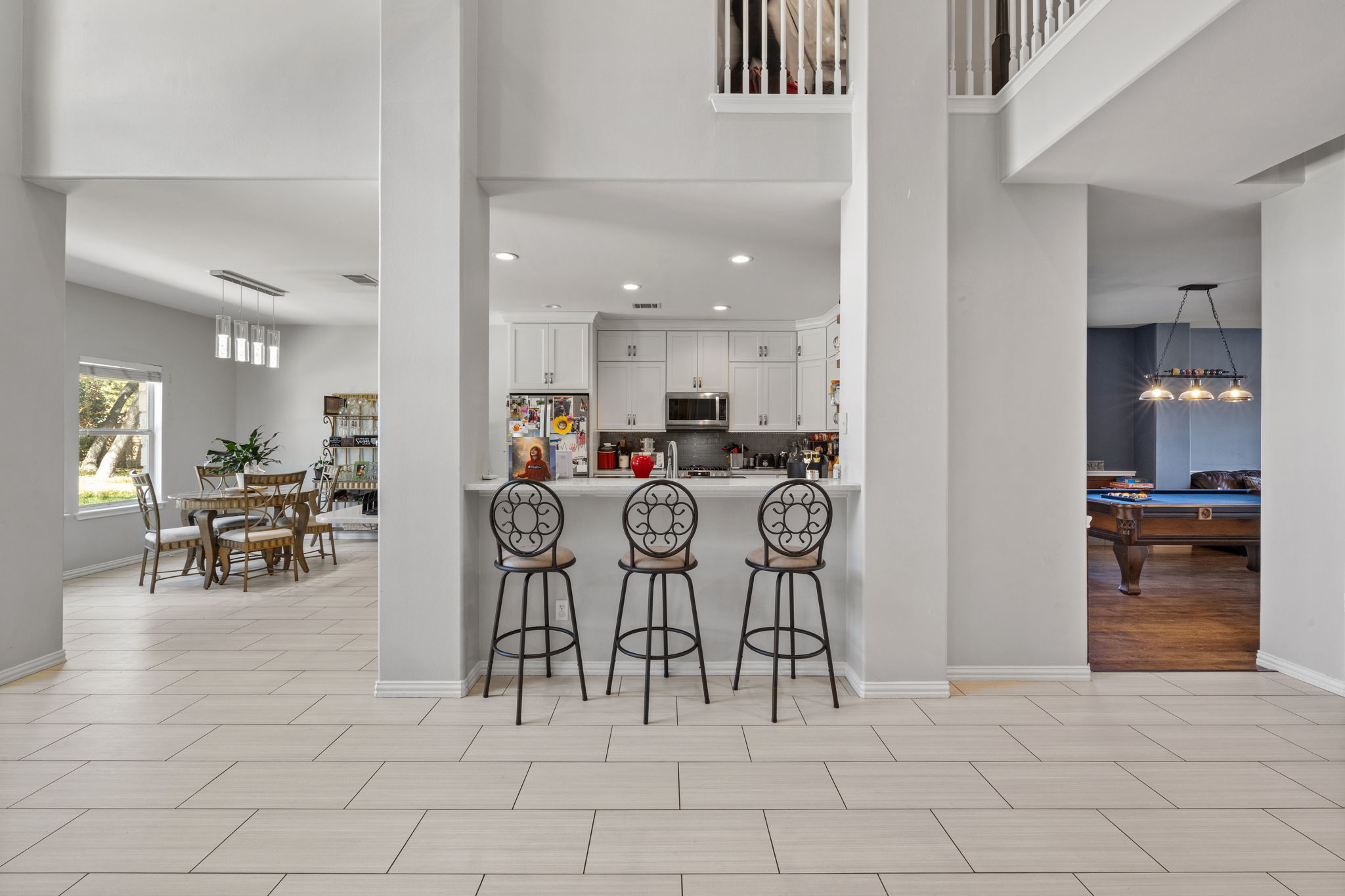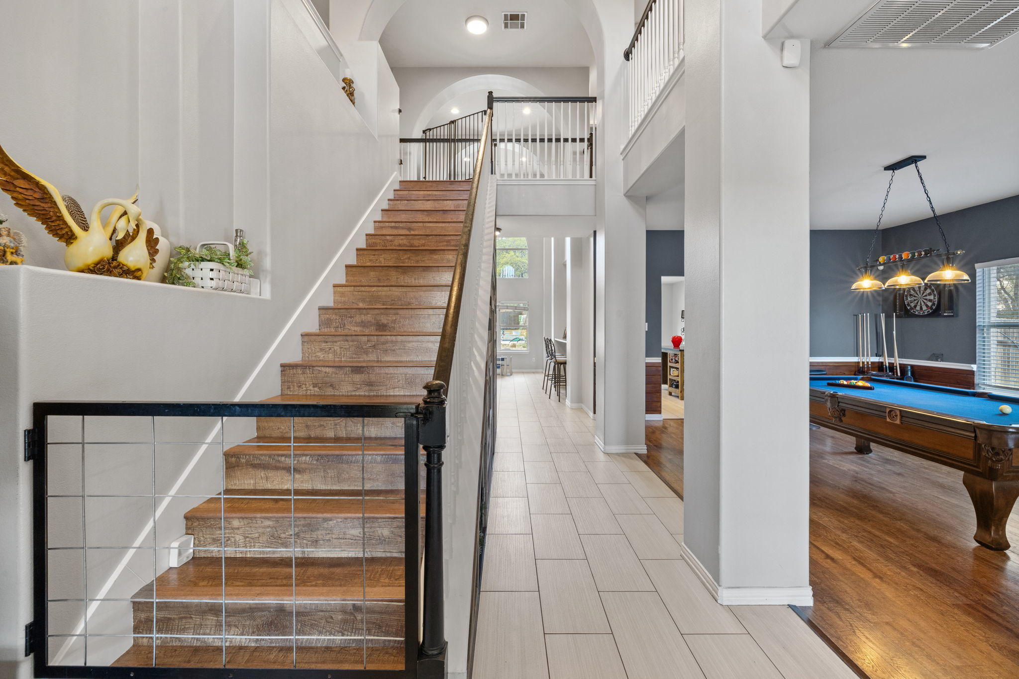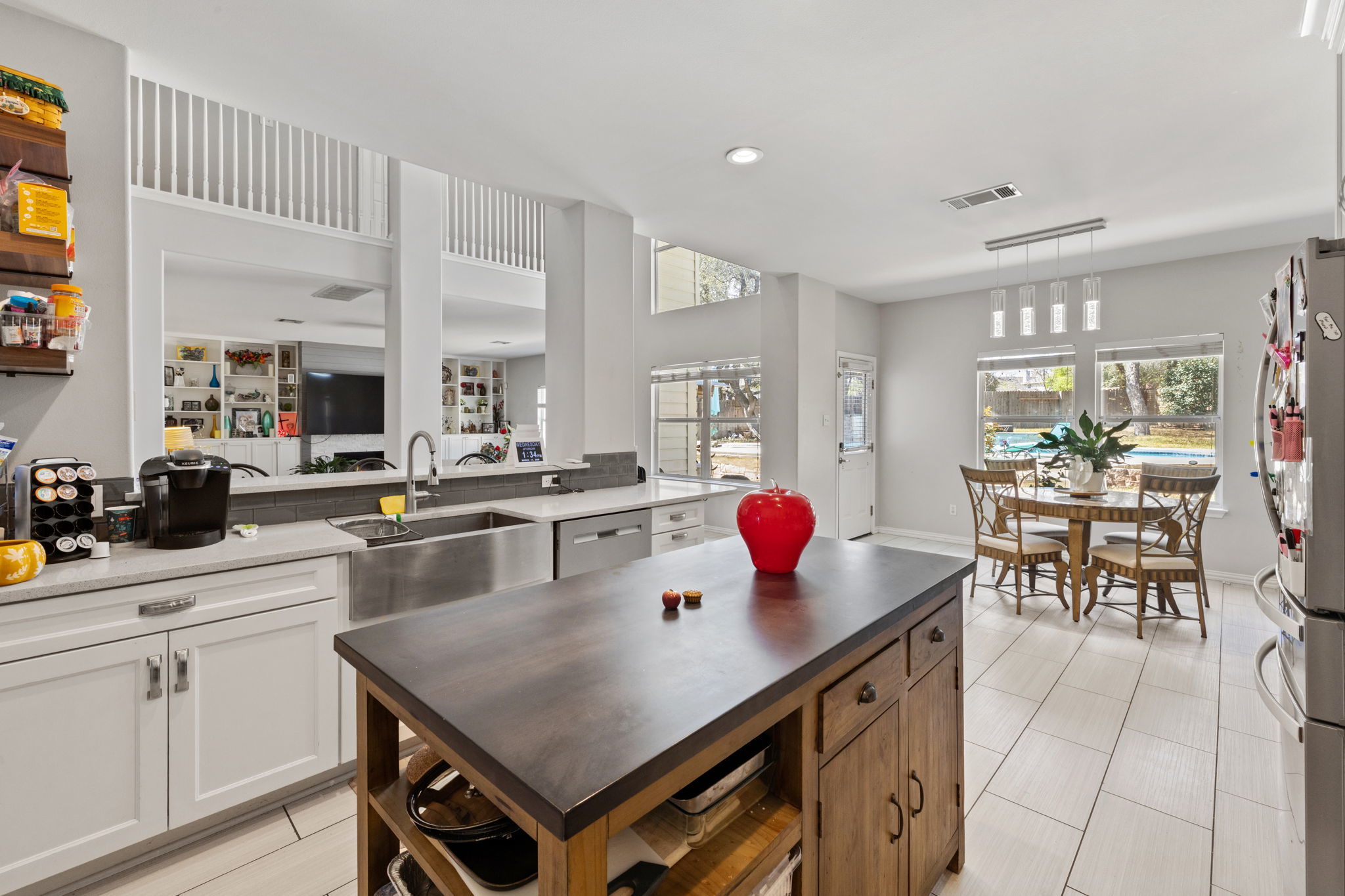 Experience the largest and most exquisite home currently available in this highly sought-after Cedar Park neighborhood. Nestled at the end of a peaceful cul-de-sac, this stunning 5-bedroom, 4.5-bath residence spans approximately 4200 sq ft on a generous 0.33-acre lot, offering spacious and versatile living spaces designed for comfort and seamless entertaining. The open and thoughtfully designed floor plan features multiple living and dining areas, enhanced by rich hardwood flooring throughout both levels. The well-appointed kitchen showcases elegant white cabinetry, stainless steel appliances, a center island, and a charming breakfast nook—perfect for daily meals or hosting guests. Additional functional spaces include an under-the-stairs cove ideal for storage, a built-in pet kennel, and a cozy playroom. Two beautifully remodeled master suites provide luxury and tranquility, each boasting spa tubs, walk-in showers, custom walk-in closets, and one featuring a dual-sided fireplace shared with the master bedroom for added warmth and ambiance. The home’s six bedrooms total, including a dedicated office and freshly carpeted secondary rooms, ensure ample space for your family’s needs. Connected to the main residence is a thoughtfully constructed 330 sq ft casita/guest house, complete with its own bedroom, full kitchen, living area, washer/dryer, and a private entrance—ideal for extended family, visitors, or multigenerational living. Step outside to your private backyard oasis, where a heated and cooled saltwater pool awaits alongside an outdoor kitchen equipped with a cabana and ceiling fan, flagstone seating areas, and a gazebo with grill and refrigerator. The expansive yard also features a children’s swing set and a dedicated garden space, perfect for recreation and relaxation. Additional highlights include a spacious three-car garage, recent HVAC upgrades (2019), pool heater/cooler installation (2020), and guest house construction completed in 2021. Schedule a Viewing!