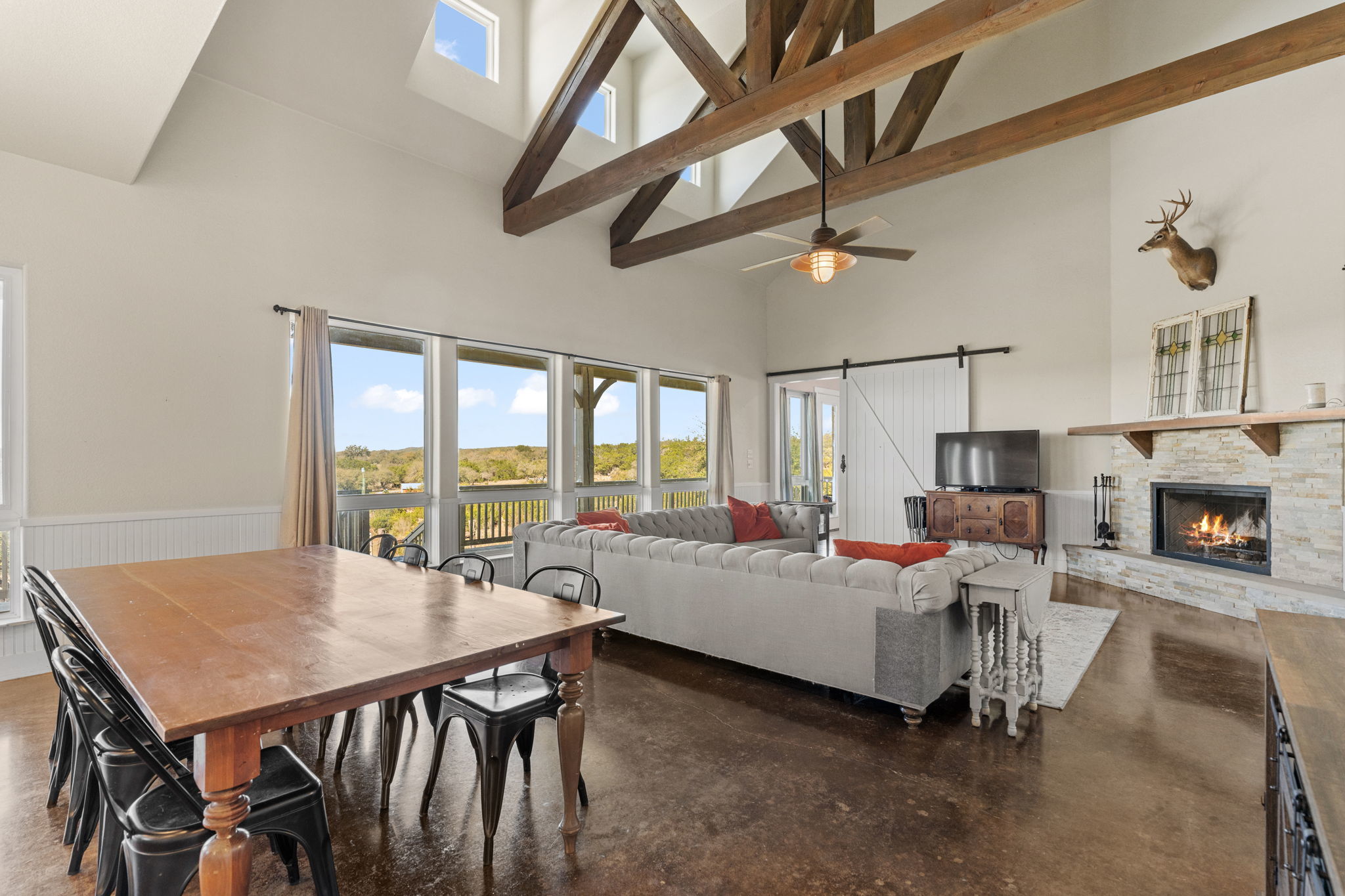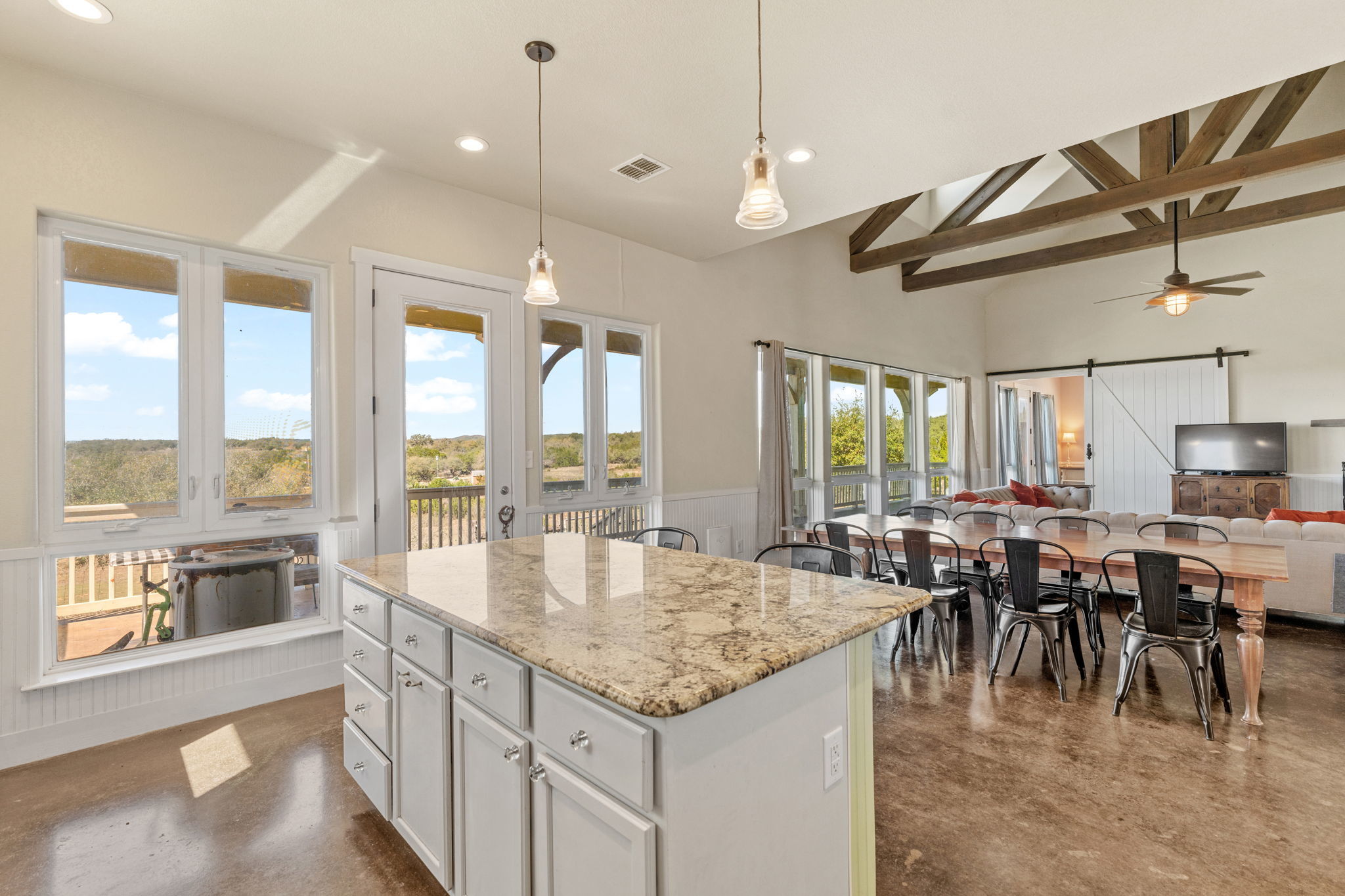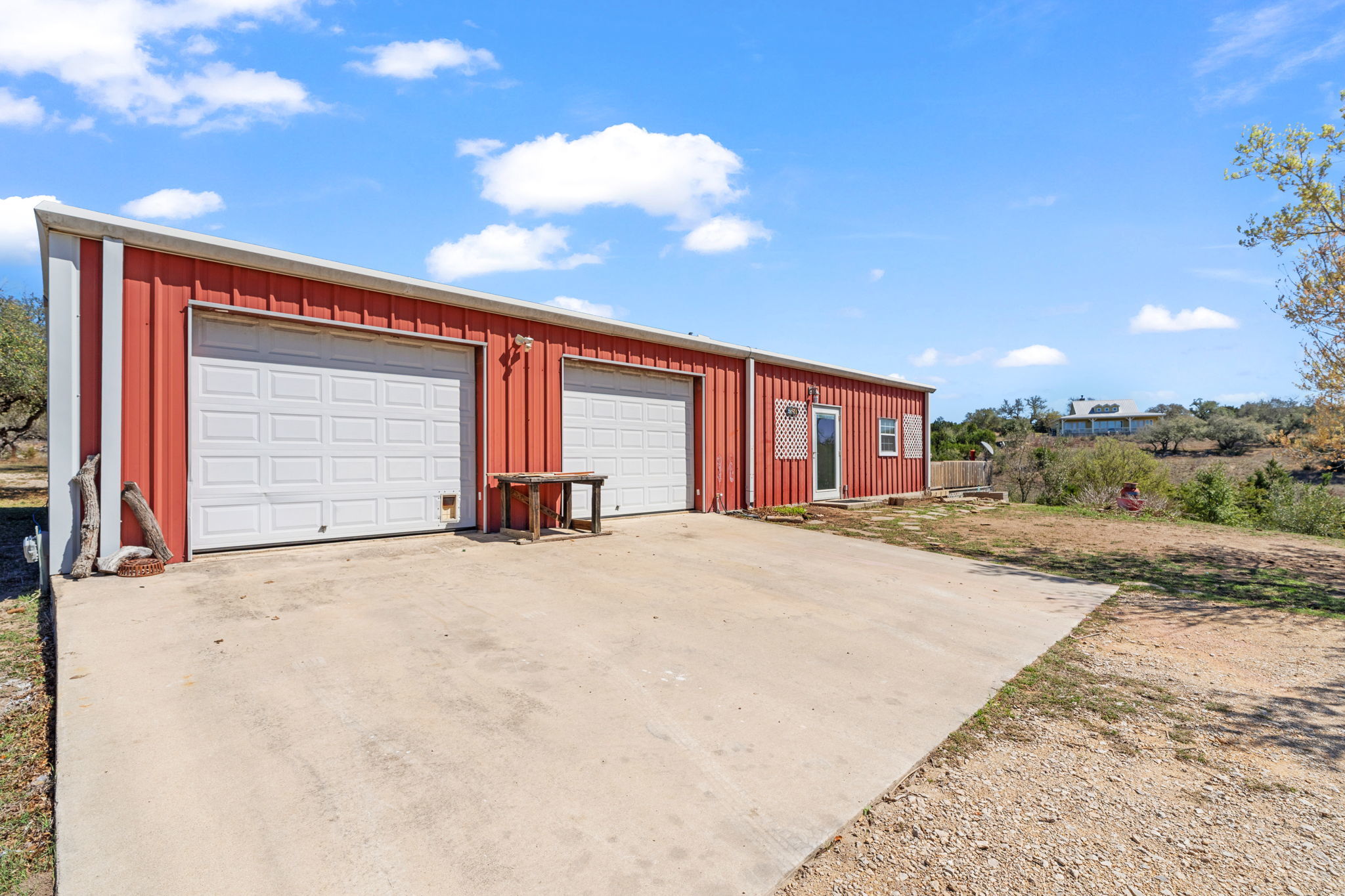 Perched on 11 Ag Exempt breathtaking acres with sweeping panoramic Hill Country views, this exceptional property offers the perfect blend of privacy, natural beauty, and refined country living. The gently rolling landscape provides a stunning backdrop of wide-open skies, mature native trees, and spectacular big Texas sunset views. The main residence is thoughtfully positioned to capture the incredible scenery and has 1904 square feet of comfortable, well-designed living spaces that blend seamlessly with the surrounding landscape. Expansive windows bring in abundant natural light and frame the views, creating a peaceful and inviting atmosphere throughout the home. The main house has an independent well and septic system from the guest apartment. The property has 2 wells and 2 septic systems. A separate guest house has an additional 1200 square feet of living space and 1200 square feet of workshop/storage and provides ideal accommodations for visitors or extended family offering flexibility and privacy while remaining conveniently close to the main residence. This 11 acre property offers private Hill Country land to explore, entertain, and create your dream outdoor living environment. Whether adding a pool, gardens, outdoor kitchen, or additional structures, the possibilities are endless. Enjoy the tranquility of country living while being just minutes from town—yet worlds away. Perfect as a full-time residence or lock-and-leave Hill Country retreat, this property has it all- views, privacy, and a setting ideal for entertaining and gathering with family and friends. A rare opportunity to own a truly special piece of the Texas Hill Country.