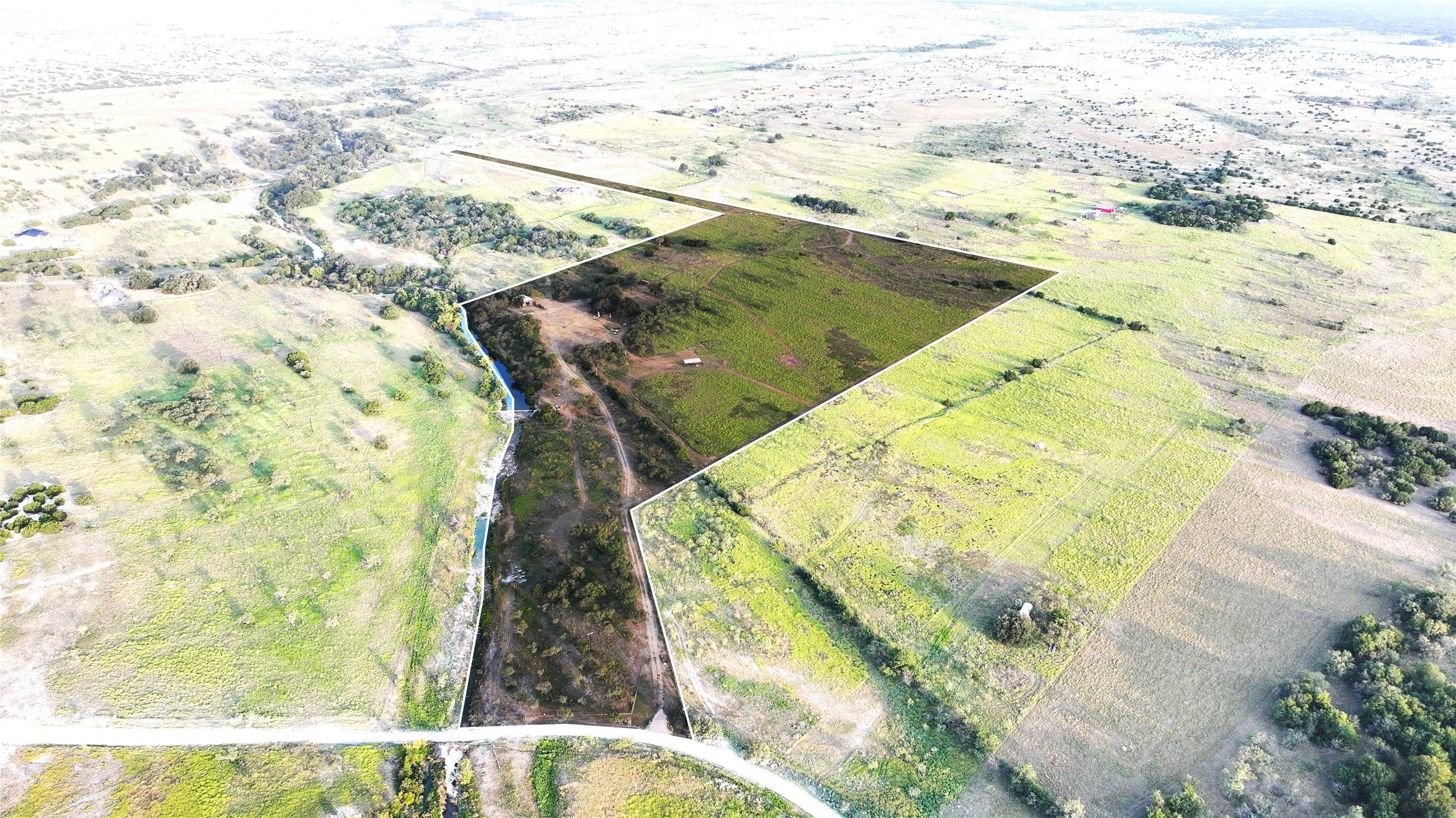 ***Seller Financing Available*** Welcome to a remarkable stretch of hill country land that blends natural beauty with practical improvements. This vacant property offers a unique setting for those seeking wide-open space, outdoor recreation, and sustainable living. Featuring gently sloping terrain, the land opens into expansive grass fields ideal for cattle or horses. Towering oak trees provide shade and character, creating a peaceful backdrop for your future homestead or weekend escape. The pinnacle feature of the property showcases the spring-fed Patterson Creek with deep, clear waters, inviting you to fish, swim, or simply enjoy the natural flow of the landscape. The area also supports hunting and recreational opportunities, boosting its appeal to outdoor enthusiasts. Agriculturally zoned and currently benefiting from a tax exemption, the land shares fenced boundaries and accessed by a private electric gate. Thoughtfully installed infrastructure includes Corix provided water piped across multiple areas and an in-ground electric conduit for added convenience. A dedicated RV cover with utilities is also in place, making it easy to stay comfortably on-site while planning future development or getting away for the weekend. Positioned next to the scenic Bar 17 Ranch, the location offers a sense of established community and rural privacy. This property combines essential groundwork with unspoiled terrain, providing a rare canvas for those ready to build or simply enjoy the land for what it is—peaceful, practical, and full of potential. Owner financing options available.