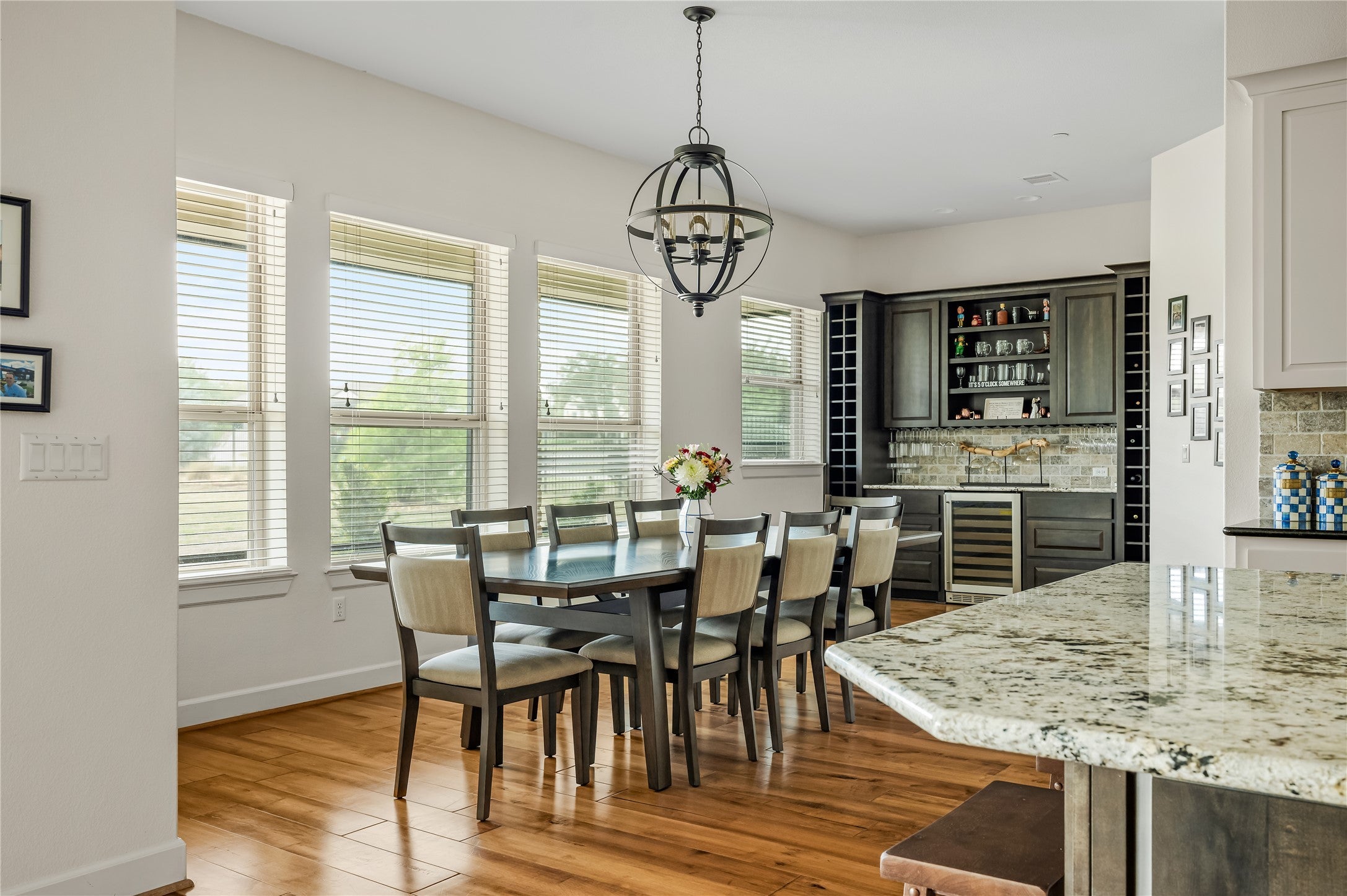 Built in 2017, this beautiful single-story sits on a flat, one-acre corner lot with a sense of space that’s hard to find. At nearly 3,100 square feet, the layout is thoughtful and easy, with 4 bedrooms, 3.5 baths, a dedicated office, plus a climate-controlled, three-car garage with an extended side bump-out. At the center, an eat-in kitchen anchors the home with an oversized island, granite countertops, stainless appliances, and generous storage. It opens seamlessly into the dining and living spaces, where a wall of glass brings in steady natural light, while the fireplace anchors the room. The primary suite is tucked away and well sized, with a spacious bath featuring a walk-in shower, double vanity, and a large walk-in closet. Separate from it, a secondary en-suite offers flexibility for guests, along with two additional bedrooms and a shared bath. The covered patio is set up for year-round use with motorized screens, a wood-burning fireplace, an eight-person hot tub, and an extended composite deck. The fully fenced yard offers plenty of room to roam or add a pool, along with a raised fire pit area for gathering. The home also includes an owned solar system with a transferable warranty, dramatically reducing electricity costs (avg. electric bill of ~$45/month). Positioned conveniently between Austin, Bee Cave, and Dripping Springs, it strikes a balance between space, privacy, and convenience.