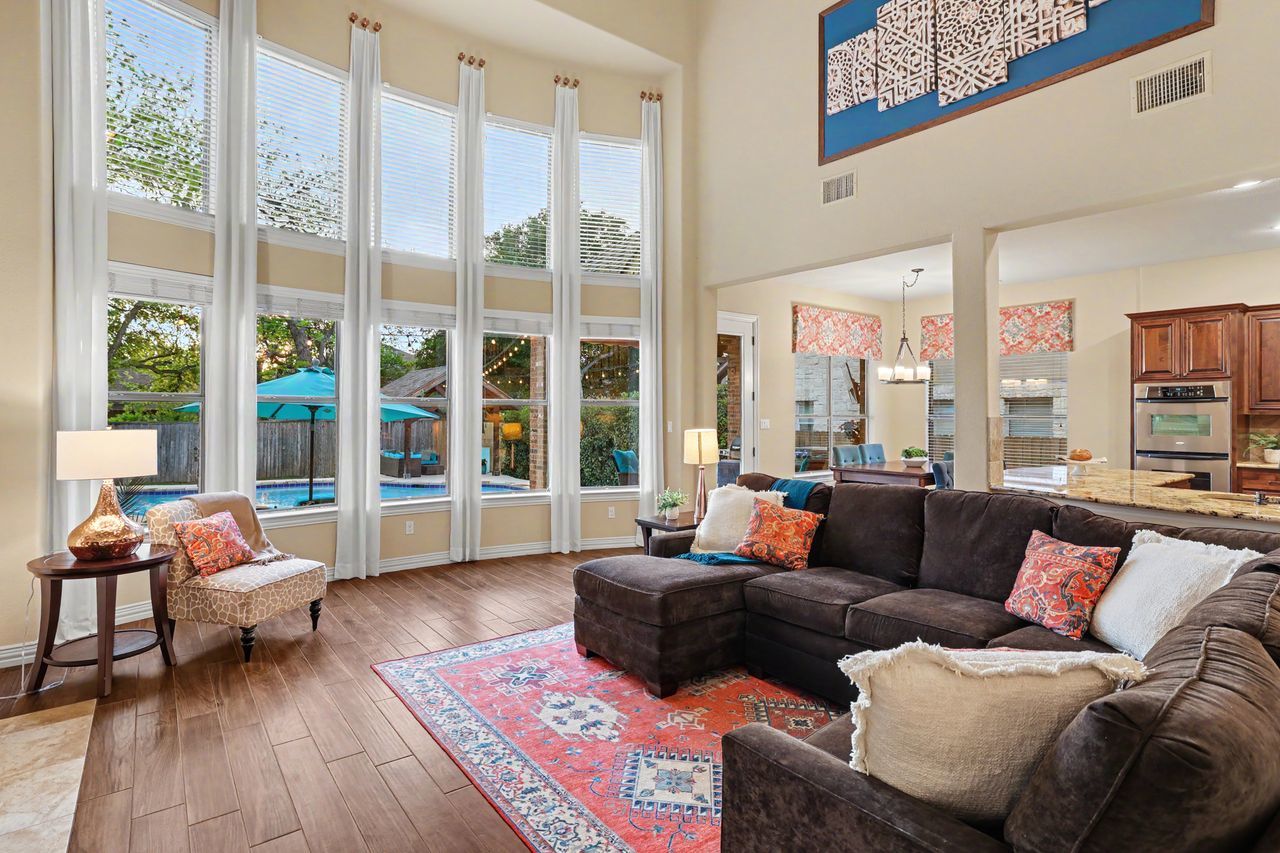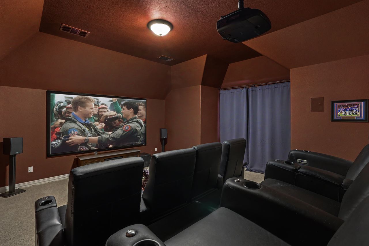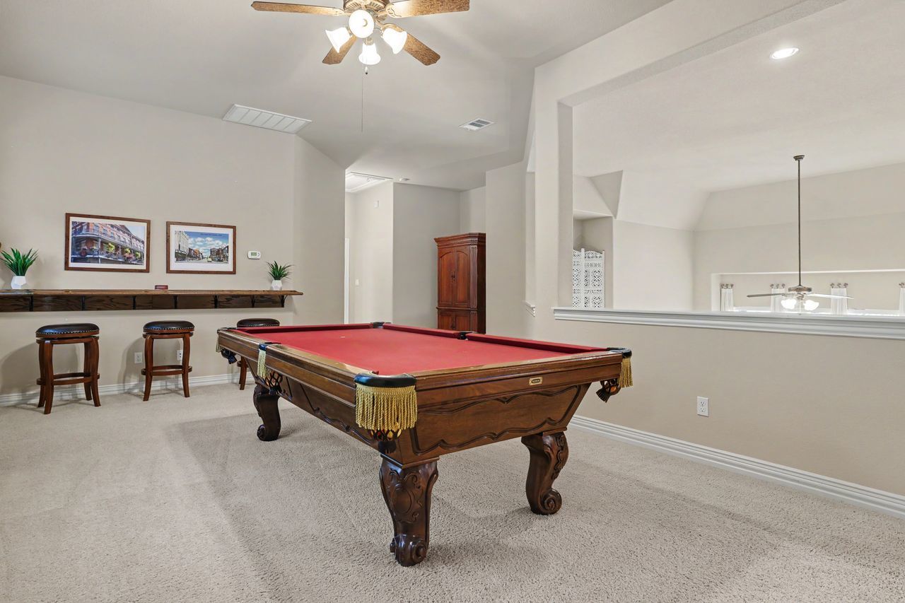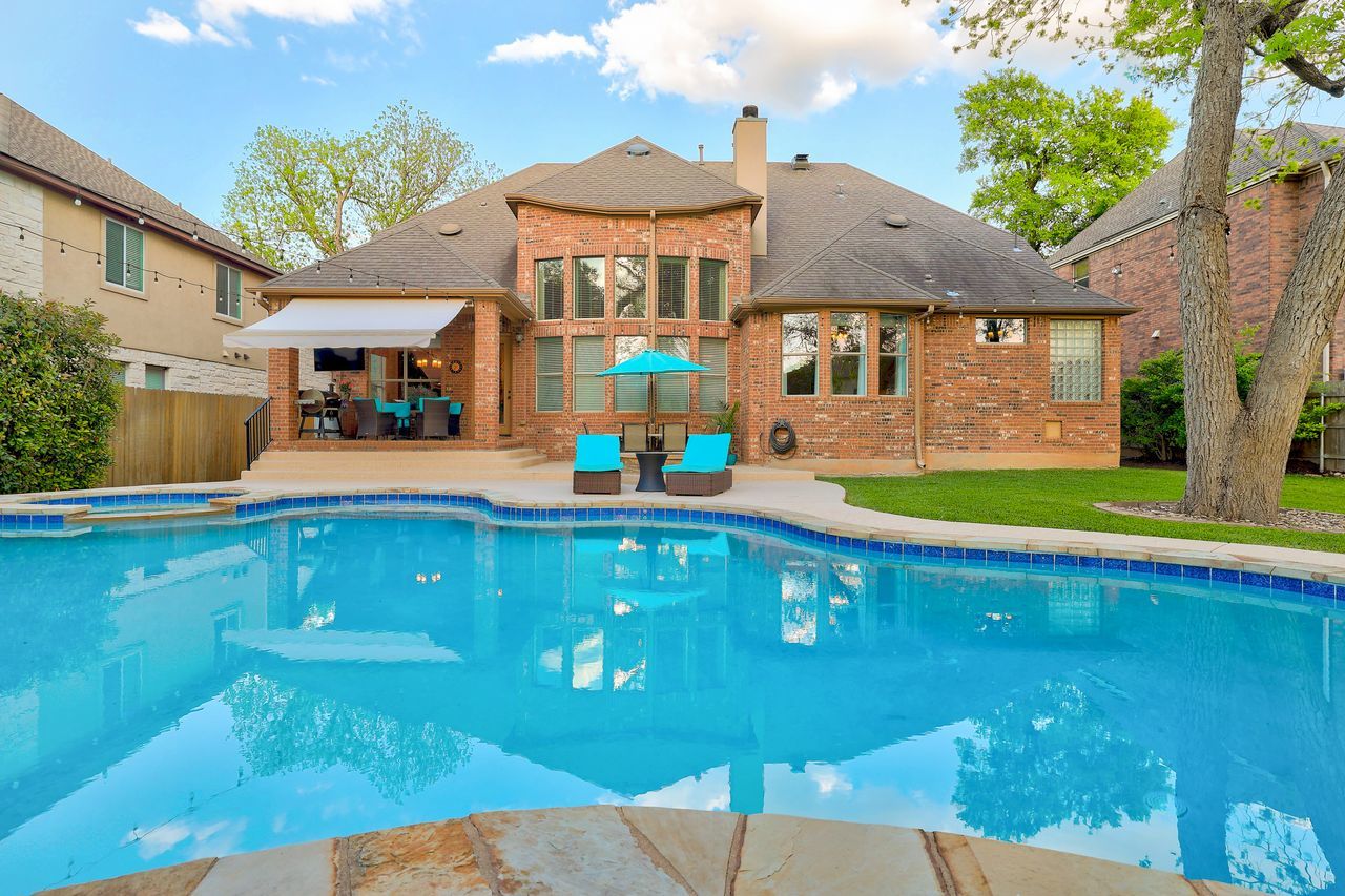 Tucked away on the quiet end of Collingwood Drive in the highly desirable Lake Forest community, this expansive 5-bedroom, 4-bathroom home offers over 4,100 square feet of thoughtfully designed living space. With two bedrooms on the main floor, this home is perfectly suited for welcoming guests, while a dedicated office with French doors provides a private, work-from-home retreat. Soaring ceilings and oversized windows fill the home with natural light, creating an open and inviting atmosphere throughout. The spacious kitchen is designed for both function and gathering, featuring abundant counter space, extensive storage, and seamless flow into both the formal dining room and large breakfast area. Upstairs, you’ll find three additional bedrooms, a versatile bonus room, and an impressive media room complete with a 110” screen, projector, and stadium-style powered leather seating—bringing the theater experience home. Step outside to a private backyard retreat shaded by mature trees, where a sparkling pool and spa, covered patio, cabana, and gas fire pit create the perfect setting for entertaining or relaxing. The oversized yard offers both privacy and space rarely found in the neighborhood. Located just a one-minute walk to the scenic Brushy Creek Regional Trail, this home also enjoys access to Lake Forest’s exceptional amenities, including a community clubhouse, pool, and tennis/pickleball courts. Additional highlights include Google Fiber high-speed gigabit internet and a peaceful setting with minimal through traffic. Zoned to acclaimed Round Rock schools.