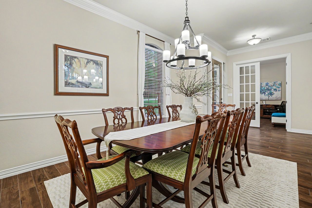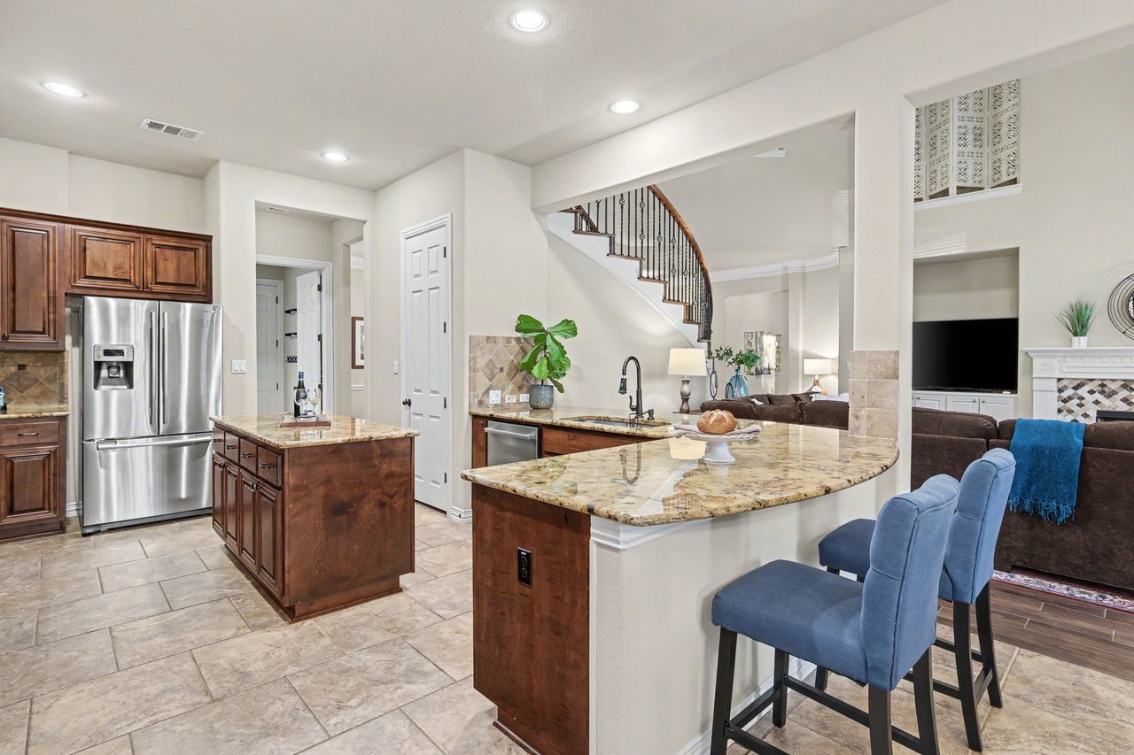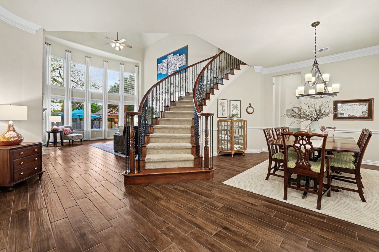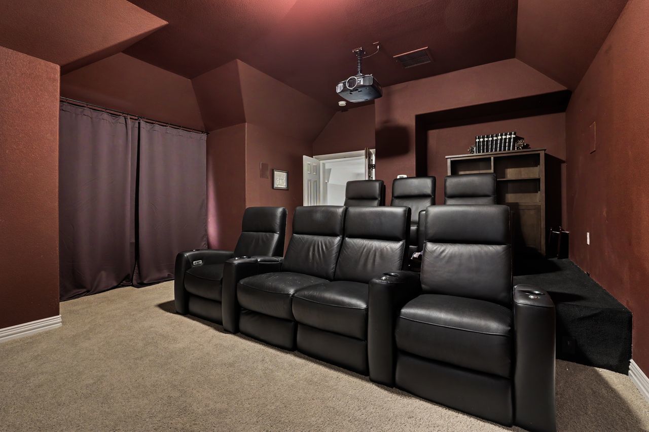 Tucked away on the quiet end of Collingwood Drive in the highly desirable Lake Forest community, this expansive 5-bedroom, 4-bathroom home offers over 4,100 square feet of thoughtfully designed living space. With two bedrooms on the main floor, this home is perfectly suited for welcoming guests, while a dedicated office with French doors provides a private, work-from-home retreat. Soaring ceilings and oversized windows fill the home with natural light, creating an open and inviting atmosphere throughout. The spacious kitchen is designed for both function and gathering, featuring abundant counter space, extensive storage, and seamless flow into both the formal dining room and large breakfast area. Upstairs, you’ll find three additional bedrooms, a versatile bonus room, and an impressive media room complete with a 110” screen, projector, and stadium-style powered leather seating—bringing the theater experience home. Step outside to a private backyard retreat shaded by mature trees, where a sparkling pool and spa, covered patio, cabana, and gas fire pit create the perfect setting for entertaining or relaxing. The oversized yard offers both privacy and space rarely found in the neighborhood. Located just a one-minute walk to the scenic Brushy Creek Regional Trail, this home also enjoys access to Lake Forest’s exceptional amenities, including a community clubhouse, pool, and tennis/pickleball courts. Additional highlights include Google Fiber high-speed gigabit internet and a peaceful setting with minimal through traffic. Zoned to acclaimed Round Rock schools.