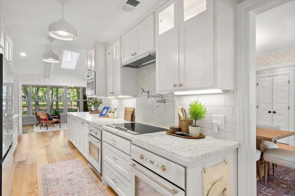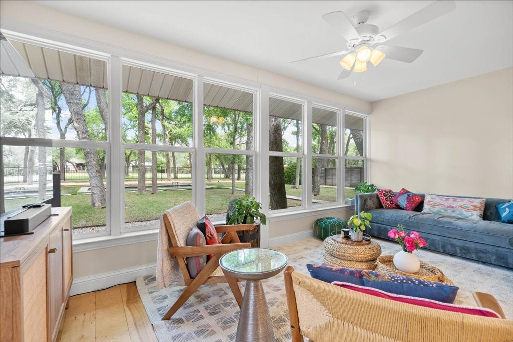 This move-in ready Balcones Village beauty sits on a peaceful .31-acre lot with serene views of Balcones Golf Course right from the in-ground saltwater pool (2025). Abundant natural light fills this home and the kitchen is a true centerpiece, showcasing a soft, neutral palette, a stunning designer backsplash, high-end appliances (2024), a pot filler and a breakfast bar made for morning coffee and lively gatherings alike. Curl up by the fireplace in the vaulted family room on cool Austin evenings. The flexible layout features 4 bedrooms and a flexible sun room. The primary suite is a true sanctuary, boasting its own fireplace. Need storage and function? The huge mud/laundry room combo with a built-in desk delivers on both counts. Add a 3-car garage and top-rated Round Rock ISD schools to the mix, and 9304 Spring Hollow Dr checks every box.