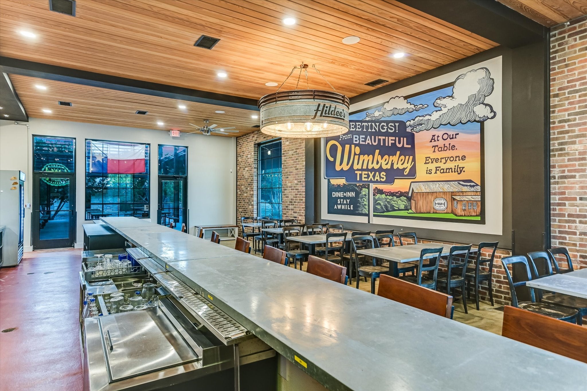 Introducing a premier commercial opportunity in the heart of Wimberley, Texas. Situated on approximately 1.57+/-; acres at the highly visible corner of Ranch Road 12 and Winters Mill Parkway, just over one mile east of downtown Wimberley, this recently constructed building offers exceptional quality and versatility. Formerly operating as the well-known Hildee’s Restaurant, the property was purpose-built for hospitality use and features an extensive commercial-grade kitchen rarely found in comparable offerings. The facility includes professional equipment, substantial prep areas, multiple service stations, walk-in coolers, and generous storage, allowing a new operator to begin service with minimal modification and reduced startup costs. The improvements extend beyond the main structure. Separate exterior restrooms accommodate outdoor service and events, making the property well suited for patio dining, live music, private gatherings, and seasonal traffic. A rainwater collection system supports efficient water use and reflects long-term operational planning appropriate for the Hill Country environment. The layout adapts to a variety of concepts, including a wine bar, brewery or taproom, cafe, specialty coffee shop, retail showroom, event venue, or health and wellness studio. Durable construction and an inviting setting appeal to both destination clientele and local patrons. The generous site provides ample parking and convenient access from two major corridors, offering strong visibility and ease of entry. Wimberley continues to experience steady growth and year-round tourism, creating an ideal environment for an owner-operator or investor seeking a presence in one of the Texas Hill Country’s most desirable markets. Seize this opportunity to establish your business in a thriving and highly sought-after location. All information contained herein is deemed reliable but not guaranteed. Buyer to independently verify all information.