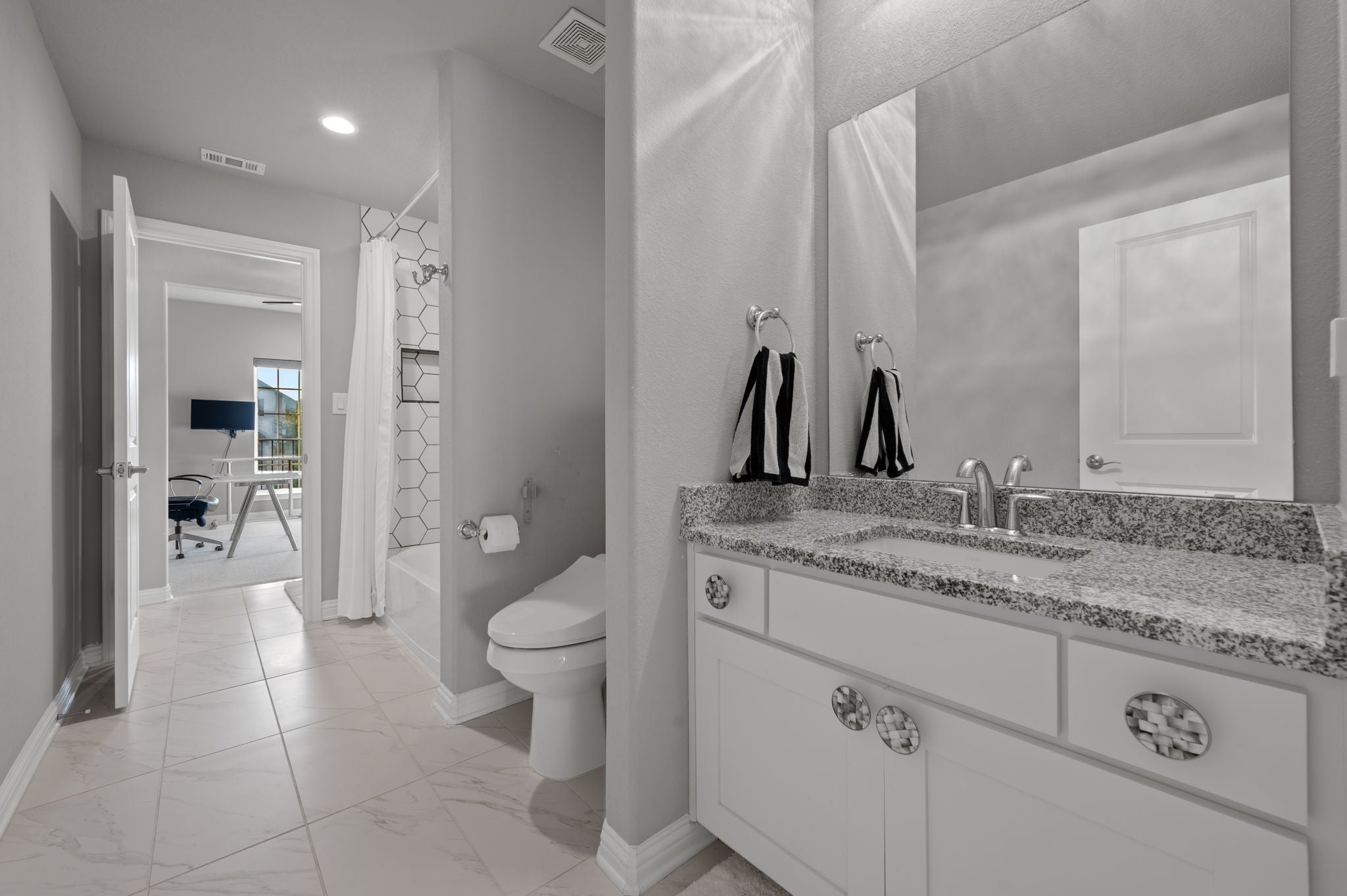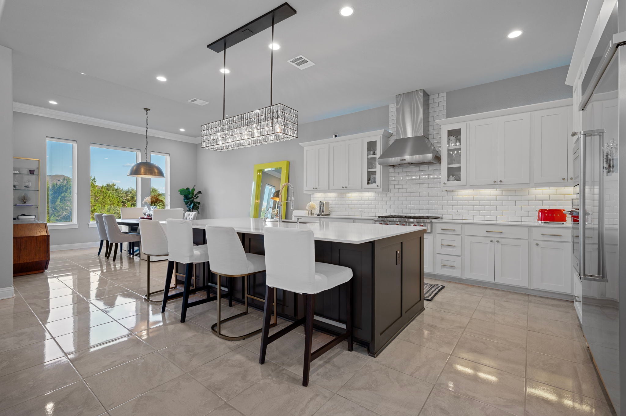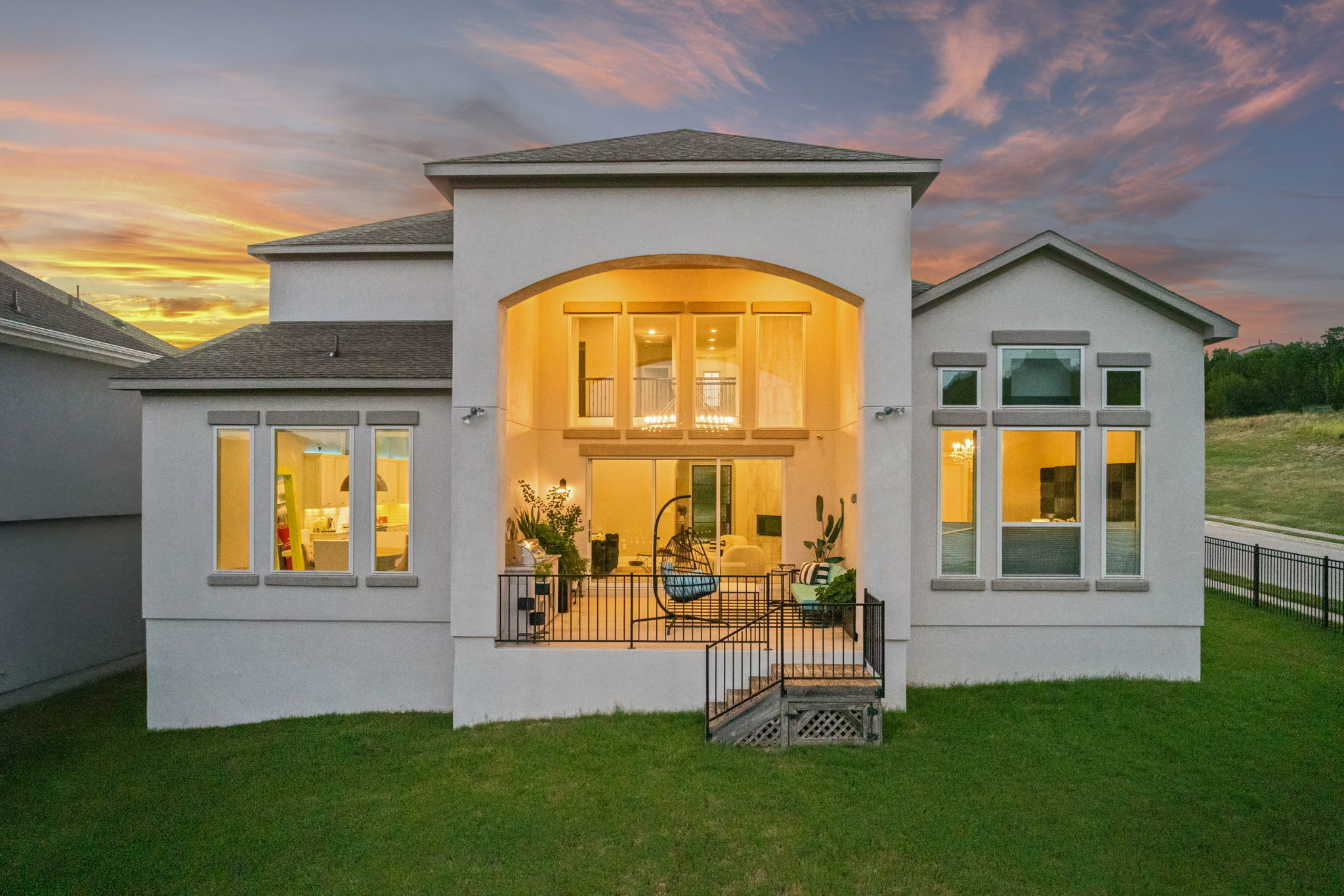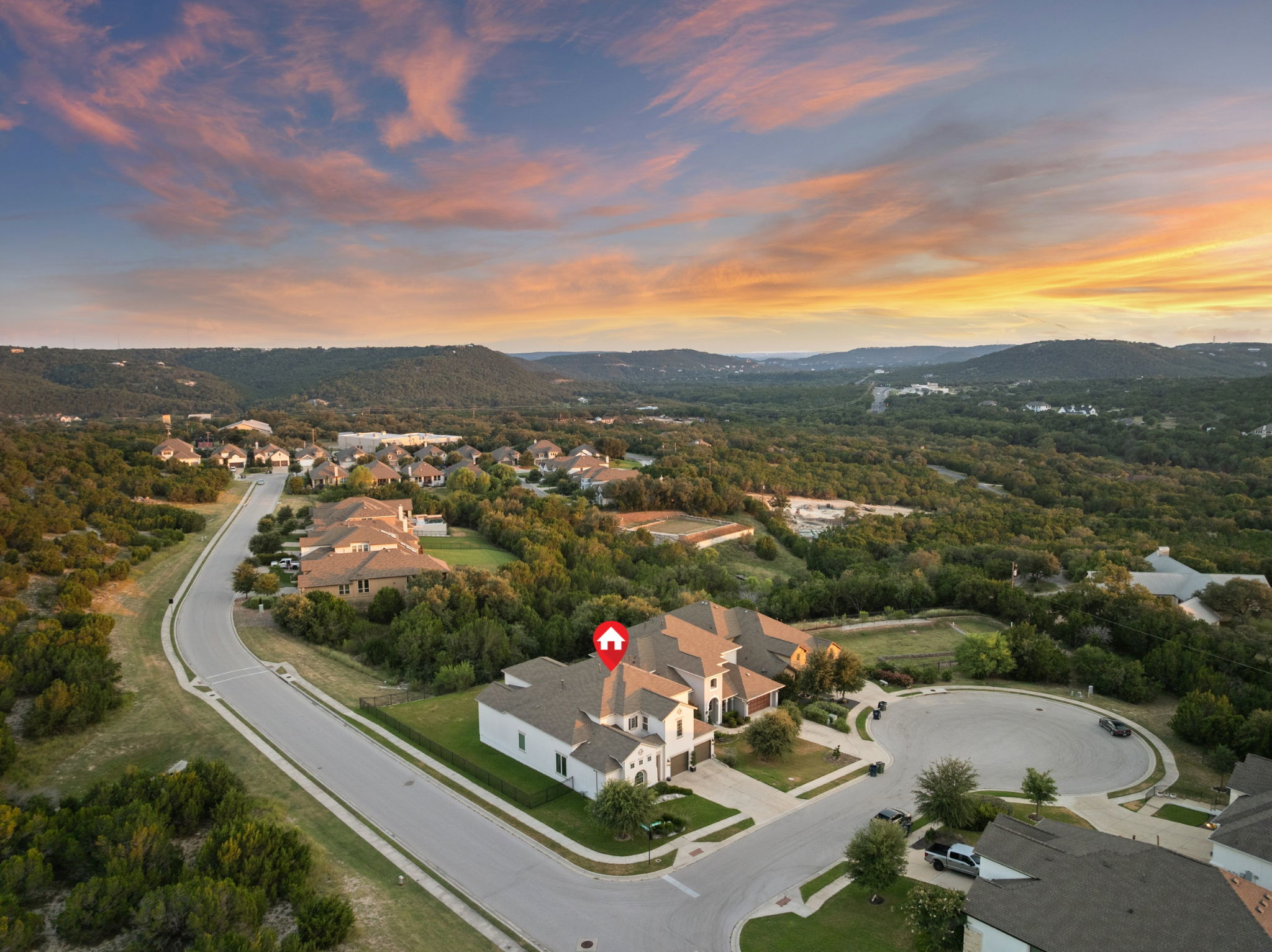 Through the impressive 4-foot wide cast iron and glass front door, a dramatic two-story foyer and sweeping curved staircase set the tone for this luxurious home. Thoughtfully designed with over $200,000 in builder upgrades, every detail exudes elegance. The open-concept main level is anchored by a chef’s kitchen featuring an extended island with hidden storage, Wolf appliances, a KitchenAid custom built-in refrigerator, and pristine white cabinetry topped with quartz counters. An expanded dining area offers space for large gatherings, while the living room boasts 12-foot double-glass sliding doors framing panoramic greenbelt views. The main-level primary suite is a serene retreat, expanded for extra comfort, and features a sitting area, Grohe dual rain shower, a Kohler heated air bubble jet soaking tub, Toto fully automated bidet, and a walk-in closet with built-in organization. A secondary bedroom with a full bath adds flexibility for guests or multigenerational living. Upstairs, you’ll find two additional bedrooms, a Jack-and-Jill bath, a game room, and a finished storage room. Outdoors, enjoy a built-in kitchen/BBQ area, an extended covered patio with soaring 20’ ceiling, and a private greenbelt backdrop with only one neighboring home. Ideally situated near the front of the Travisso community, this home offers quick and convenient access to FM 1431. Residents enjoy two amenity centers—including a brand-new facility opened in June 2025—featuring a resort-style pool, clubhouse, fitness center, tennis courts, playscape, hike-and-bike trails, and more!