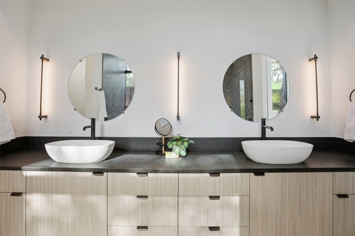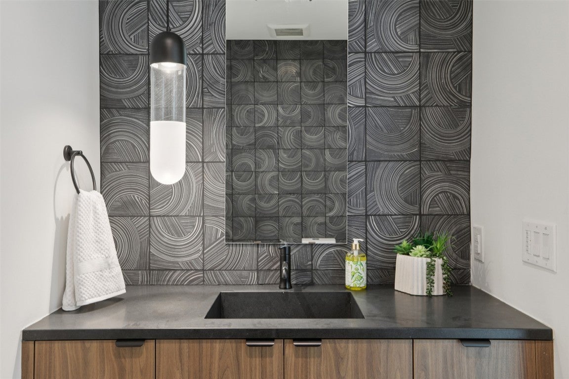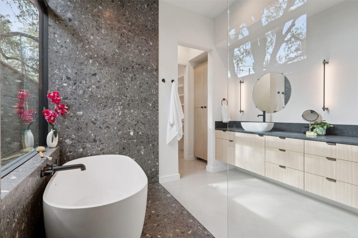 Experience the ultimate Austin lifestyle in this exquisite modern home, perfectly situated in Barton Hills, one of the city’s most desirable neighborhoods. The residence features four spacious bedrooms, a dedicated office, and a massive upstairs den. The modern aesthetic is showcased by an exterior mix of metal, stucco, and limestone. Inside, find concrete and European Oak wood flooring paired with granite and Caesarstone countertops. The chef’s kitchen is equipped with top-of-the-line appliances from Sub-Zero Wolf to Thermador. Floor-to-ceiling windows flood the open floor plan with natural light and seamlessly integrate the interior with the pool and private backyard, making it great for entertainment. Enjoy sweeping views of the adjacent greenbelt from your property. Upstairs, a massive den offers a versatile retreat. Beyond the home, you gain access to the unparalleled Barton Hills lifestyle. The community is known for its supportive nature, its proximity to the amazing greenbelts, and the highly-regarded Barton Hills Elementary School. Located minutes from Downtown, Barton Springs, Zilker Park, and ACL Festival, this property epitomizes luxury living in a truly exceptional setting. All values are approximate and to be verified.