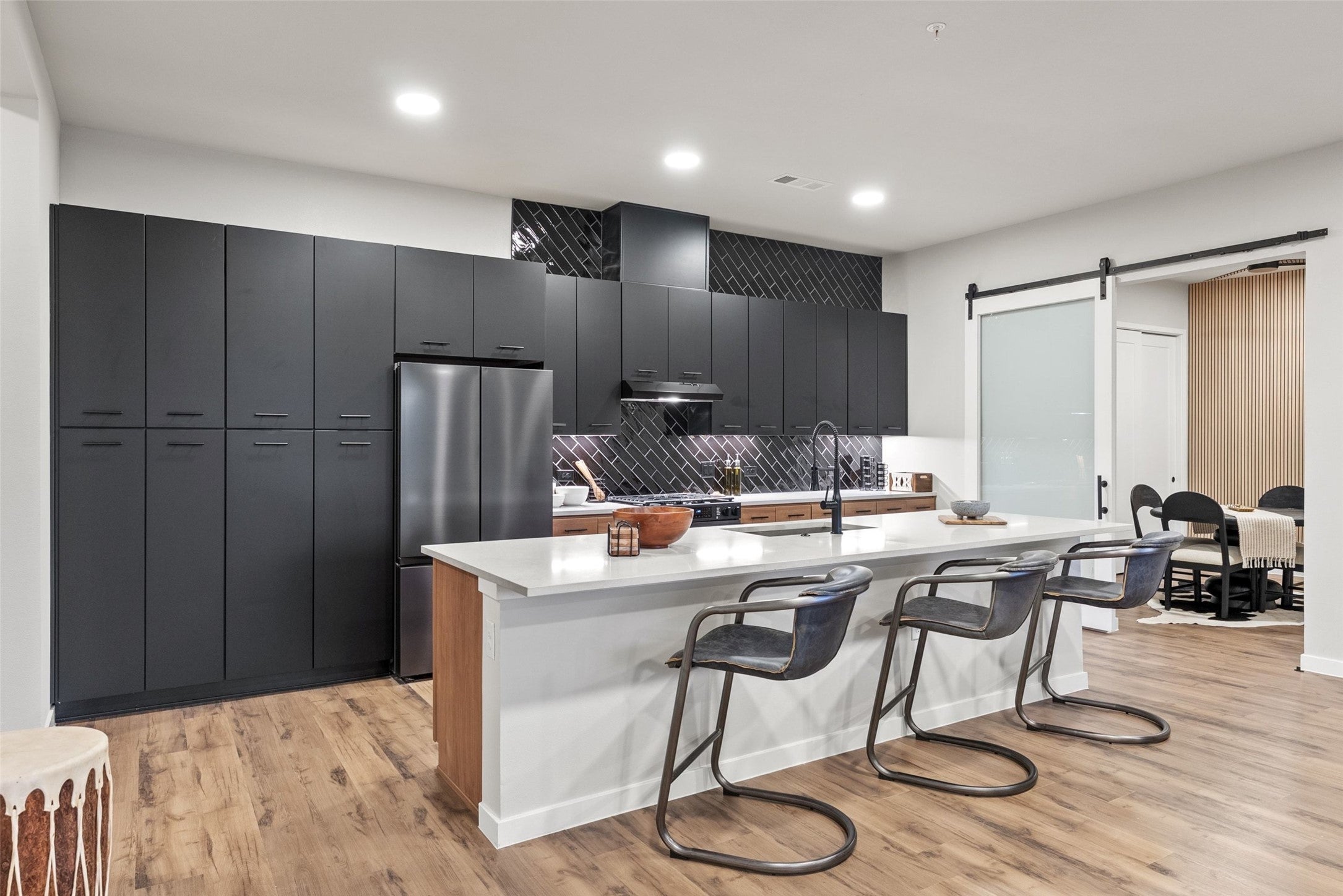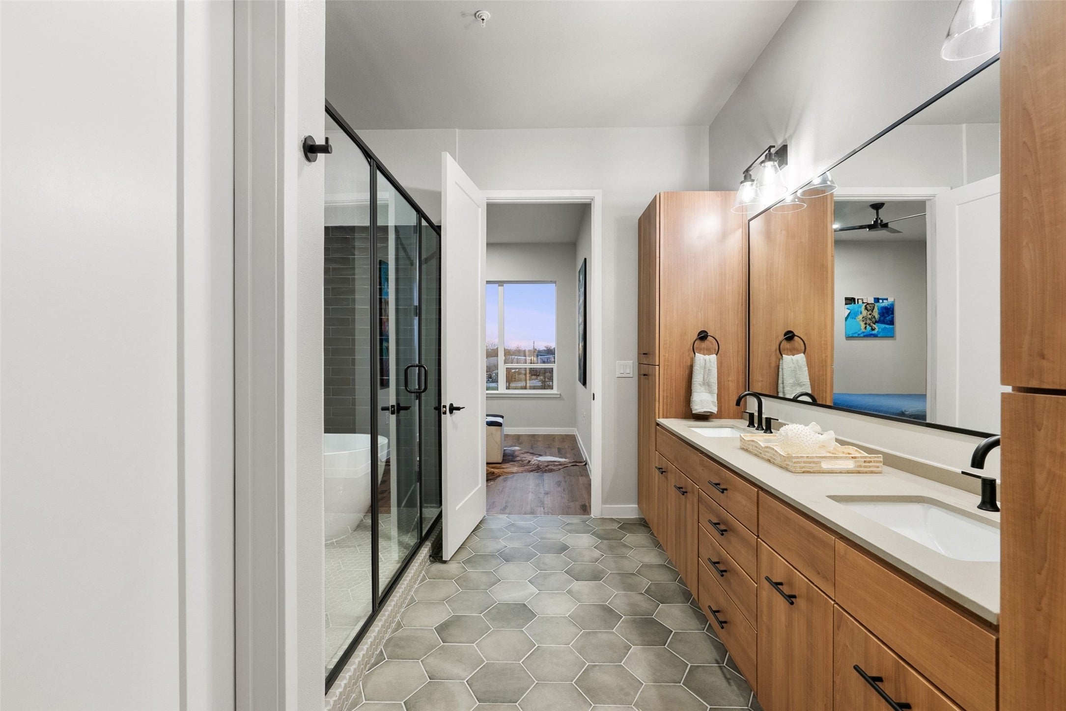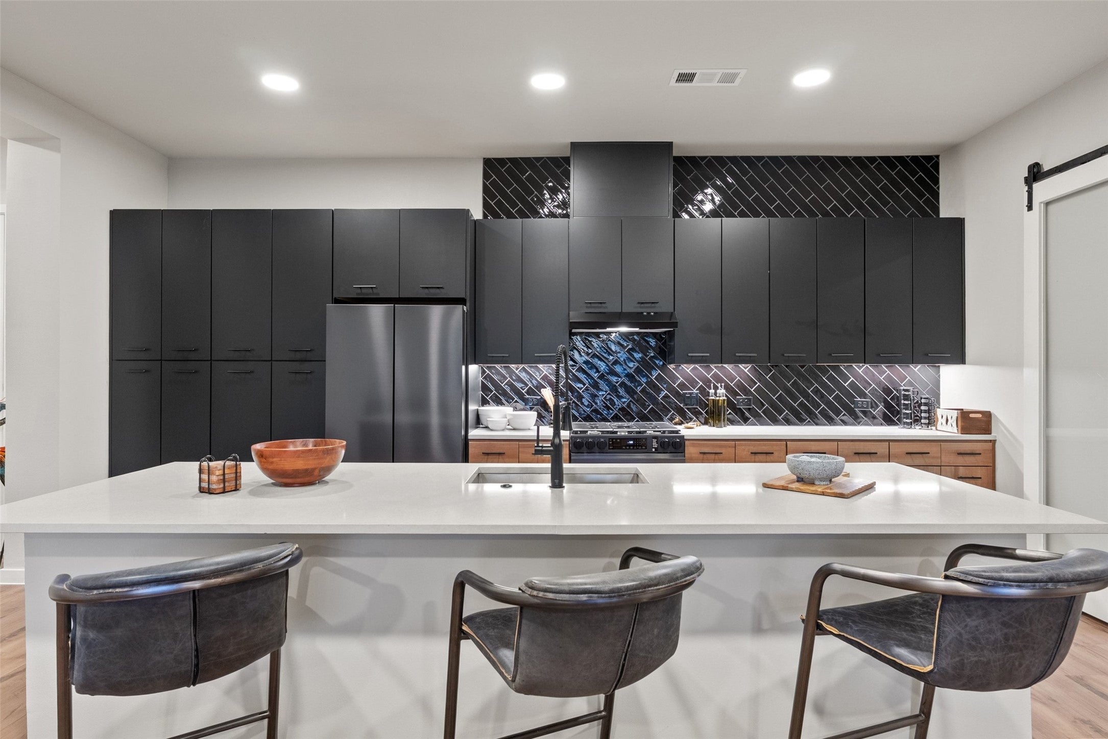 This penthouse at The Station is a true statement—spanning 1,920 square feet with three bedrooms and three bathrooms, thoughtfully designed for elevated living and effortless entertaining. At the heart of the home, a custom wine wall creates an immediate focal point, setting the tone for a space that balances sophistication with functionality. The layout flows seamlessly, opening into expansive living areas filled with natural light and clean, modern finishes throughout. One of the most distinctive features is the dual primary bathroom concept—each designed as a spa-level retreat, complete with oversized walk-in wet rooms and freestanding soaking tubs, delivering a daily experience that feels more like a luxury hotel than a residence. Beyond the residence, The Station offers a full suite of curated amenities designed to match the lifestyle—resort-style pool, fitness center, yoga and dance studio, and conference facilities for both work and wellness. Open-air lounge decks, multiple entertainment courtyards, grilling areas, Library and a club room create dynamic spaces to gather, unwind, and host. The community is further elevated with a dedicated dog park and underground, covered, gated parking for convenience and peace of mind. This isn’t just a top-floor unit—it’s a refined, lifestyle-driven penthouse offering in one of Austin’s most dynamic and evolving neighborhoods.