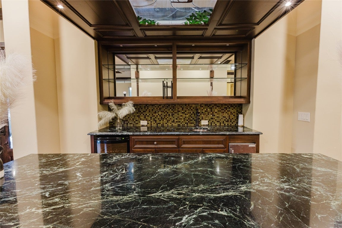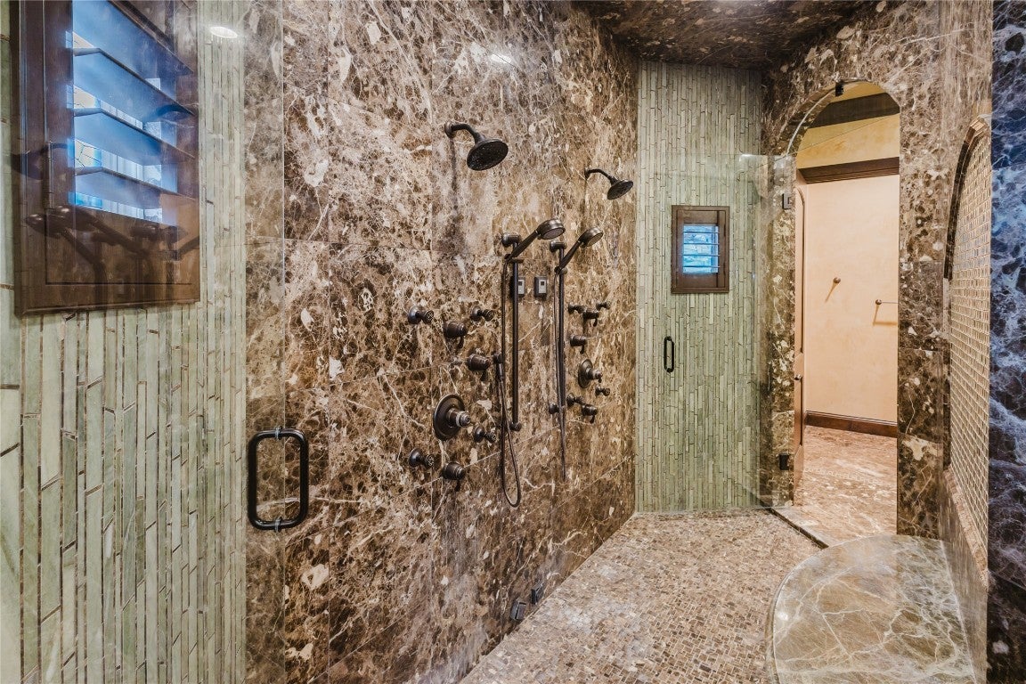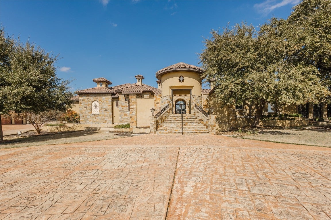 A Slice of Hill Country Heaven in New Braunfels! Welcome to over 9,200 sq. ft. of pure Hill Country charm, nestled on 2+ acres of prime Texas land. From the moment you step through the Mediterranean-style courtyard, past the beautiful fountain, you’ll be blown away by this home's grand entrance and warm, inviting feel. Custom-built with Texas craftsmanship in mind, this home boasts mesquite wood floors, soaring cathedral ceilings, stunning marble mosaics, and rich wood accents. Huge Nanawalls seamlessly bring the outdoors in, and the Venetian plaster finishes add a touch of timeless elegance. Inside, you’ll find 3 spacious bedrooms on the main floor, a Jack-and-Jill setup upstairs, 4 full bathrooms, and 3 half baths. The owner’s suite feels like a luxury retreat, and the chef’s kitchen is built for gathering, featuring high-end finishes and plenty of space to cook up something special. Love to entertain? You’ll adore the custom wine room, home theater with Italian leather seating, and the full bar upstairs—complete with its own fridge and ice maker. There are also multiple offices, a safe room, a library, a craft room, and an oversized 4-car garage with A/C. But the real showstopper? Your very own backyard paradise. Whether you’re grilling in the outdoor kitchen, relaxing under the oversized covered patio, or unwinding in the heated pool and hot tub next to the waterfall and fire pit, there’s no better place to kick back. You even have your own putting green! And don’t forget the casita—designed with the same attention to detail as the main house. With 2 bedrooms, a full kitchen, living space, laundry room, and an attached 3-car garage, it’s perfect for guests or extended family. If you’re looking for a one-of-a-kind Texas estate that offers luxury, comfort, and plenty of space to enjoy the good life, you’ve just found it. Come on out and see for yourself—you won’t want to leave!