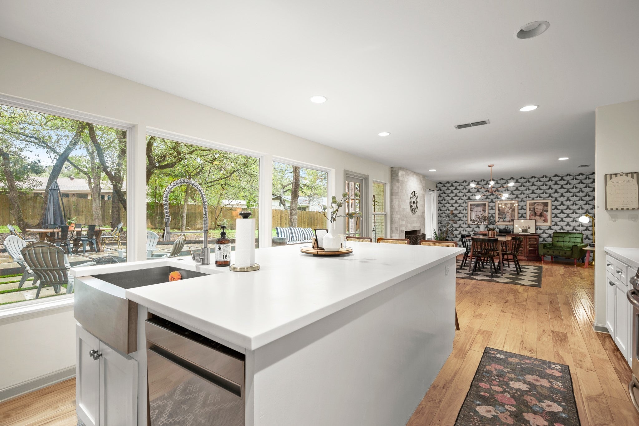 Set on a .422-acre cul-de-sac lot in coveted Westover Hills, this beautifully updated single-story home blends timeless charm with modern design in a peaceful, tree-filled setting. Originally built in 1964, the property offers a two-car garage and exceptional curb appeal surrounded by lush landscaping. A modern glass front door welcomes you into an inviting open-concept interior featuring high ceilings, rich hardwood flooring, crisp white walls, recessed lighting, and abundant natural light throughout. The spacious living area flows seamlessly into the dining space, highlighted by an elegant chandelier and a cozy fireplace that anchors the room, creating the perfect environment for both everyday living and entertaining. The heart of the home is the chef’s kitchen, thoughtfully designed with a large center island and breakfast bar seating, quartz countertops, white cabinetry accented with gold hardware, and stainless-steel appliances. The open layout allows the kitchen to connect effortlessly with the main living spaces, making it ideal for hosting gatherings. The primary suite offers a relaxing retreat with a charming window seat overlooking the backyard, a walk-in closet, and a beautifully updated spa-inspired bathroom featuring a dual vanity and a walk-in shower with floor-to-ceiling tile surround. Step outside to a private backyard retreat shaded by towering oak trees. The expansive patio features large concrete pavers set in a modern grid pattern with lush grass inlays, creating multiple outdoor living spaces including a fire pit lounge and separate dining area—perfect for entertaining or relaxing under the trees. With its rare oversized lot, thoughtful updates, and stunning outdoor living spaces, this Westover Hills home offers a unique blend of style, comfort, and functionality in one of the area’s most desirable neighborhoods. Schedule a showing today!