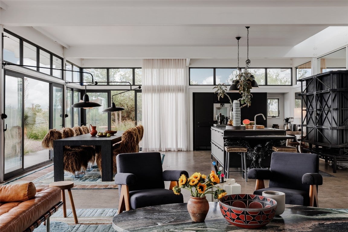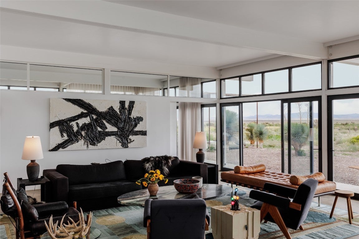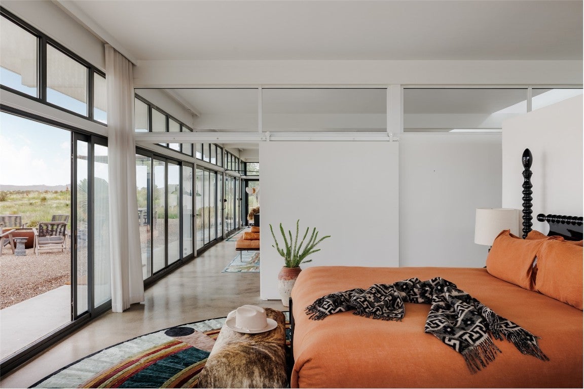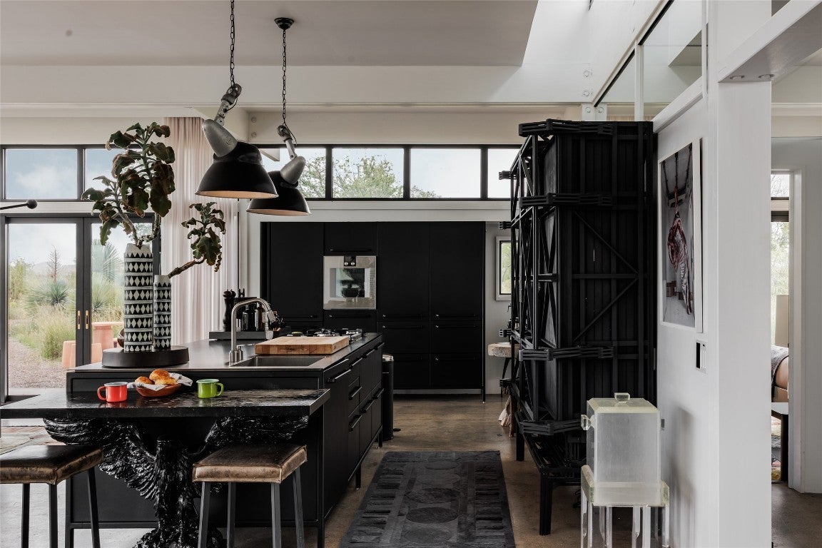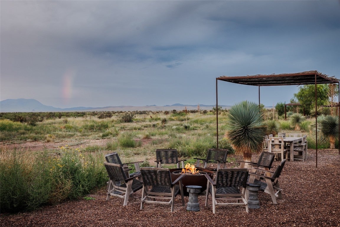 Welcome to 2405 E Antelope Hills Road — a place where modern design meets the magic of Marfa’s wide-open skies. Just two miles from town, this home sits on ten private acres with breathtaking views of the Davis and Haystack Mountains. Built in 2016, it offers three bedrooms and two bathrooms across 2,304 square feet, with walls of glass and a continuous clerestory that floods the space with light and gives the roof its signature “floating” effect. Inside, the vibe is sleek yet warm. The kitchen is a showstopper with its Vipp steel system, Gaggenau appliances, and Liebherr refrigerator — the kind of setup that makes cooking feel effortless and inspired. Radiant heated floors keep the space cozy while you throw the windows wide open to the desert breeze. With solar power and a deep private well, the home is as practical as it is beautiful. Step outside and you’ll find plenty of ways to enjoy the landscape. Take a dip in the Modpools shipping-container lap pool with its built-in spa, gather with friends around the fire pit for sunsets, or unwind in the screened palapa that opens to the desert night. There’s even a minimalist pavilion inspired by Donald Judd for shaded lounging. The property is landscaped with native grasses and desert plants that thrive with little upkeep. It’s no wonder this home has been featured in Architectural Digest and celebrated around the world. More than a house, it’s a true Marfa experience. Schedule your showing today and see what makes this desert escape so extraordinary.
