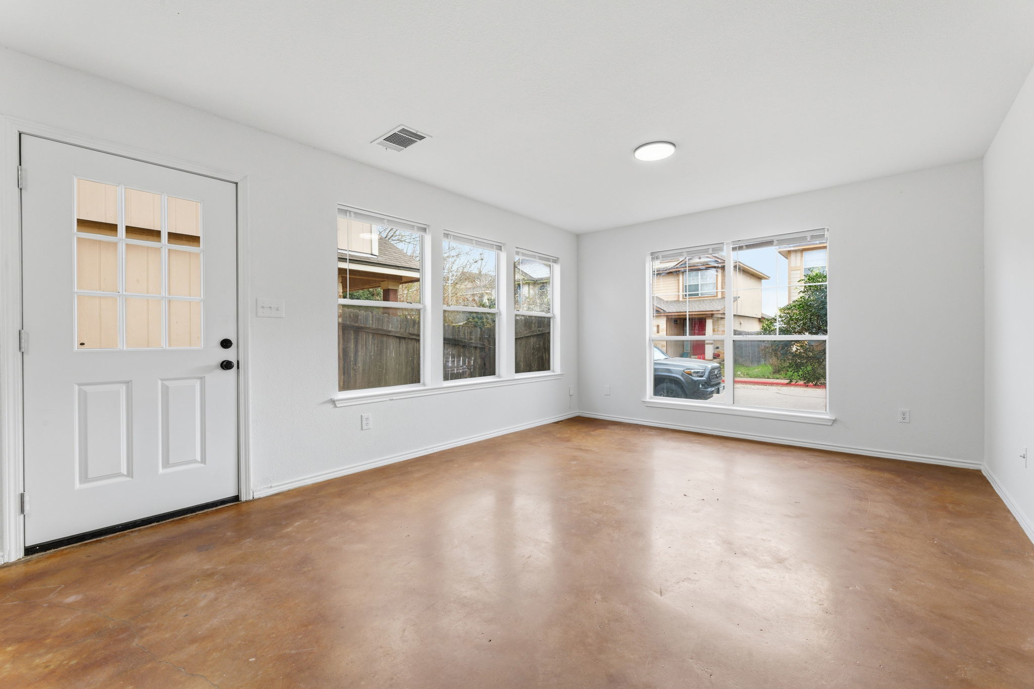 Fresh updates, flexible living space, and an unbeatable Southeast Austin location define this charming two story home in Chaparral Crossing. Move in ready, this inviting home offers four bedrooms and 2 full bathrooms with a functional layout designed for comfortable everyday living. The open concept main level seamlessly connects the kitchen, dining area, and living room which is perfect for entertaining or relaxing at home. The downstairs primary bedroom and full bath provides an option for multigenerational living. The home has been thoughtfully refreshed with brand new luxury vinyl plank flooring upstairs, durable concrete flooring on the main level, and a fresh coat of interior paint that gives the space a clean, modern feel. Upstairs, you will find three additional bedrooms and a full bathroom, offering comfortable space for family or guests. Step outside to a fully fenced backyard that works well for pets, play or weekend gatherings. Located just minutes from Austin-Bergstrom airport, Tesla, and with easy access to highway 130, this home offers exceptional convenience. Quaint, updated, and ideally located; this is an excellent opportunity to own in one of Southeast Austin's growing communities.
