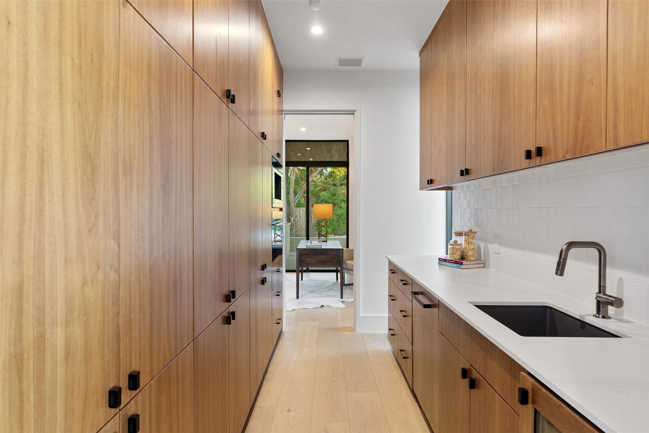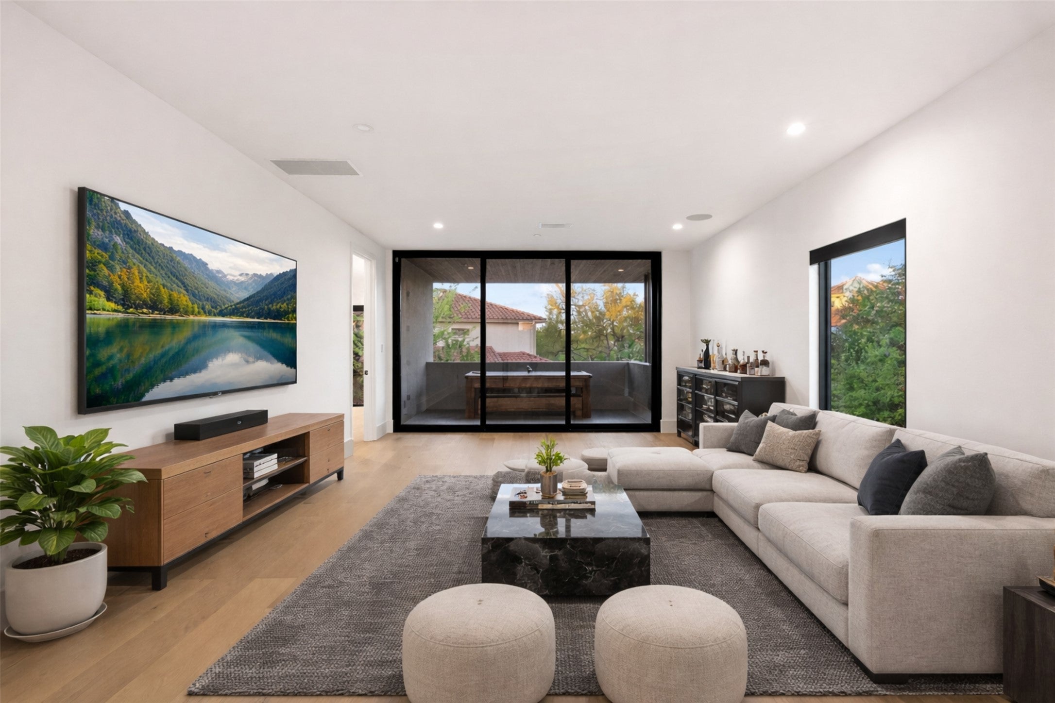 Set on a generous .63-acre homesite in Westlake, 1604 Barclay Drive is a newly built architectural statement by Parkside Homes, designed by Ravel Architecture. Completed in 2024 and enhanced with approximately $200K in custom upgrades, this home offers a refined balance of modern design, functionality, and comfort just minutes from downtown. Spanning 5,763 square feet, the residence features a light-filled floor plan where expansive walls of glass and clean architectural lines create a seamless connection to the surrounding landscape. White oak flooring, custom cabinetry, and curated finishes establish a warm, sophisticated aesthetic throughout. At the center of the home, the chef’s kitchen is equipped with Wolf and Sub-Zero appliances, dual dishwashers, and a built-in coffee system—opening to spacious living and dining areas designed for both everyday living and entertaining. Four covered patios extend the experience outdoors, where a resort-style pool and spa anchor the private backyard, supported by a dedicated irrigation/pool well for efficient, sustainable water use. The main-level primary suite offers a true sense of retreat, featuring direct outdoor access, a spa-inspired bathroom enhanced by a recent remodel, and a fully customized walk-in closet by California Closets. Each additional bedroom includes its own en-suite bath, complemented by two powder rooms, a private office, an upstairs game room, and flexible workspaces suited for modern living. Thoughtful functionality continues with dual laundry rooms, a mudroom, and a butler’s pantry. Additional upgrades—including Lutron Triathlon smart shades, designer wallpaper installations, and a fully integrated Vivint security system—bring both convenience and sophistication. Smart home features, a Tesla charger, and pool automation further elevate the experience. 1604 Barclay Drive presents a rare opportunity to own a newly constructed, design-forward residence with meaningful upgrades.