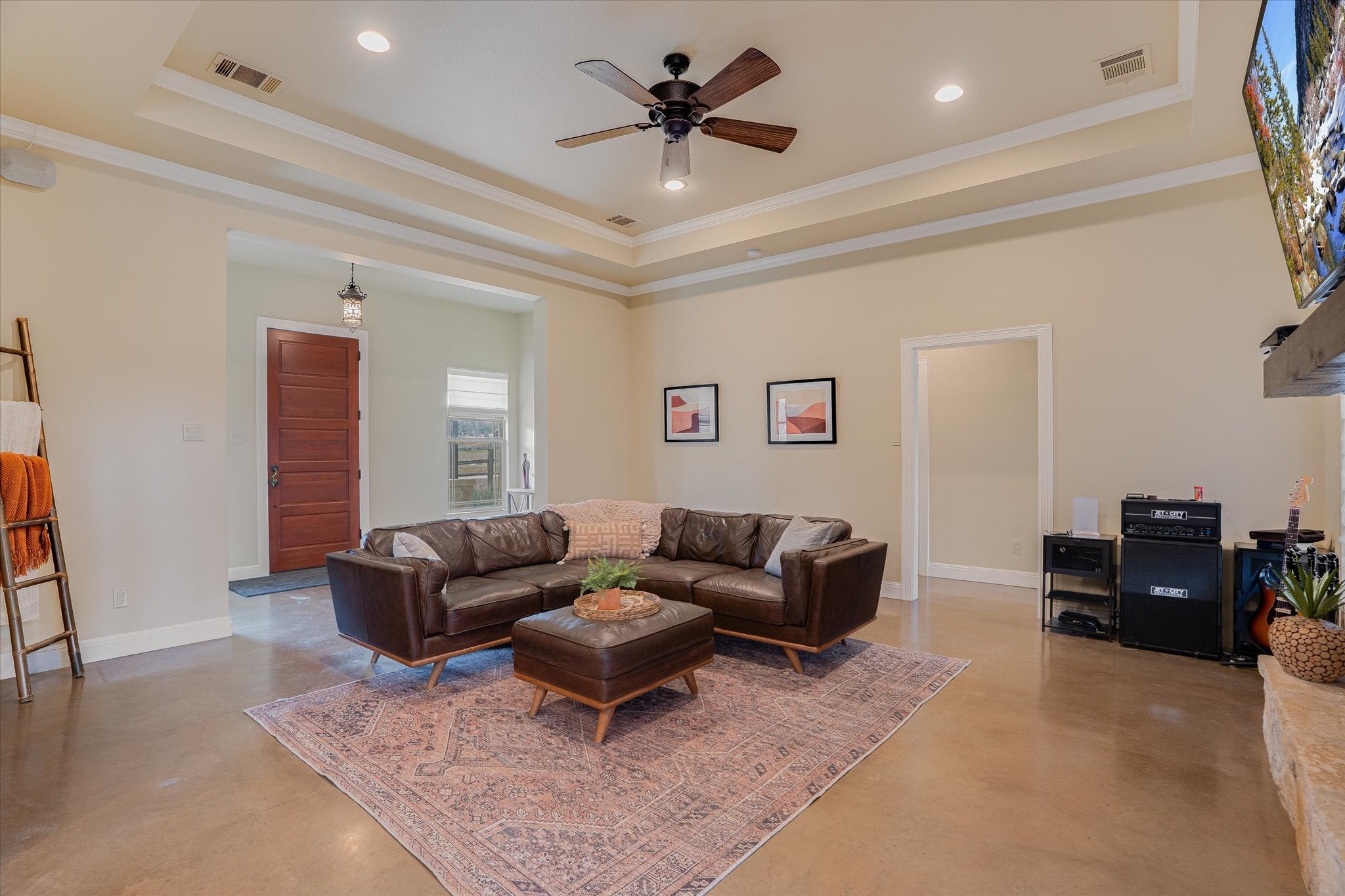 Discover 20+ unrestricted acres in the heart of the Texas Hill Country in Dripping Springs, where wide-open spaces, BIG Texas skies, and peaceful privacy define everyday living. With no HOA, no restrictions, a low tax rate, and a valuable Wildlife tax exemption, this property offers rare freedom and flexibility just minutes from town. Listen to the wind in the trees and birdsong in the distance. At night, the dark skies put on a breathtaking display of stars. Whether you're seeking a serene full-time residence, a weekend retreat, or multi-generational living, this property delivers. The Home-Well maintained and thoughtfully positioned to overlook stunning meadows, majestic oaks and elms, seasonal wildflowers, a seasonal creek, and sweeping Hill Country vistas, this custom 1-story home, 3/2 w/ 2 car garage blends comfort and function beautifully. Featuring an expansive living room with wood-burning fireplace; spacious chef’s kitchen featuring, granite countertops, stainless steel appliances and an oversized island/breakfast bar — ideal for entertaining. 30,000-gallon rainwater collection system providing exceptionally clear, soft water; Solar panels with two Tesla Powerwall's; Brand new 2025 HVAC system. Ranch & Recreational Amenities include 40' x 60' air-conditioned shop w/ climate controlled room with 6” concrete walls and ceiling; 2-stall horse barn w/tack room; 60' round pen; 140' x 240' horse arena; Chicken coop; Private shooting range and trails. The land is sub-dividable, offering flexibility for a second home, guest home, or investment potential.