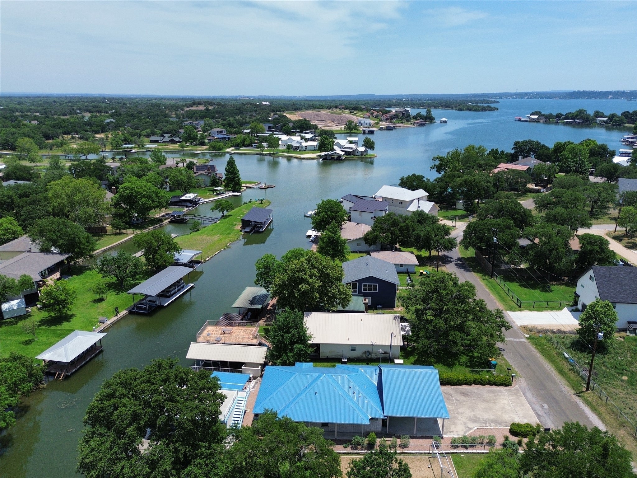 This hidden gem in Granite Shoals offers a low-maintenance, lock-and-leave lakefront property with all the essentials for laid-back lake living! The 1,440 sf home features 3 bedrooms, 2 bathrooms, and a 3-car carport, making it ideal for weekend getaways, full-time living, or a short-term rental investment. Enjoy 50' of frontage on a wide channel facing NNE, offering calm waters, excellent fishing and quick access to the main lake. The concrete and steel boat dock (built in 2016) is a showstopper, it includes a covered boat slip, an upper party deck, and a lakeside storage shed for all your gear. Two jet ski lifts on the bulkhead make getting on the water a breeze. Inside, the cozy floor plan is perfect for relaxing after a day on the lake, and the no-lawn yard means your weekends stay worry-free. The property includes use of an off-water septic lot, and STRs are allowed, giving you flexibility and income potential. Whether you're looking to enjoy Lake LBJ now or invest in the future, this home is your chance to get on the lake with ease!