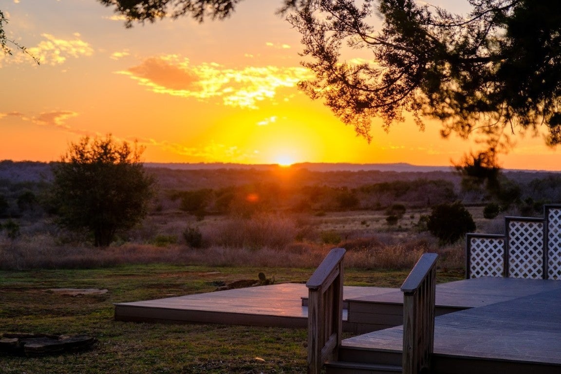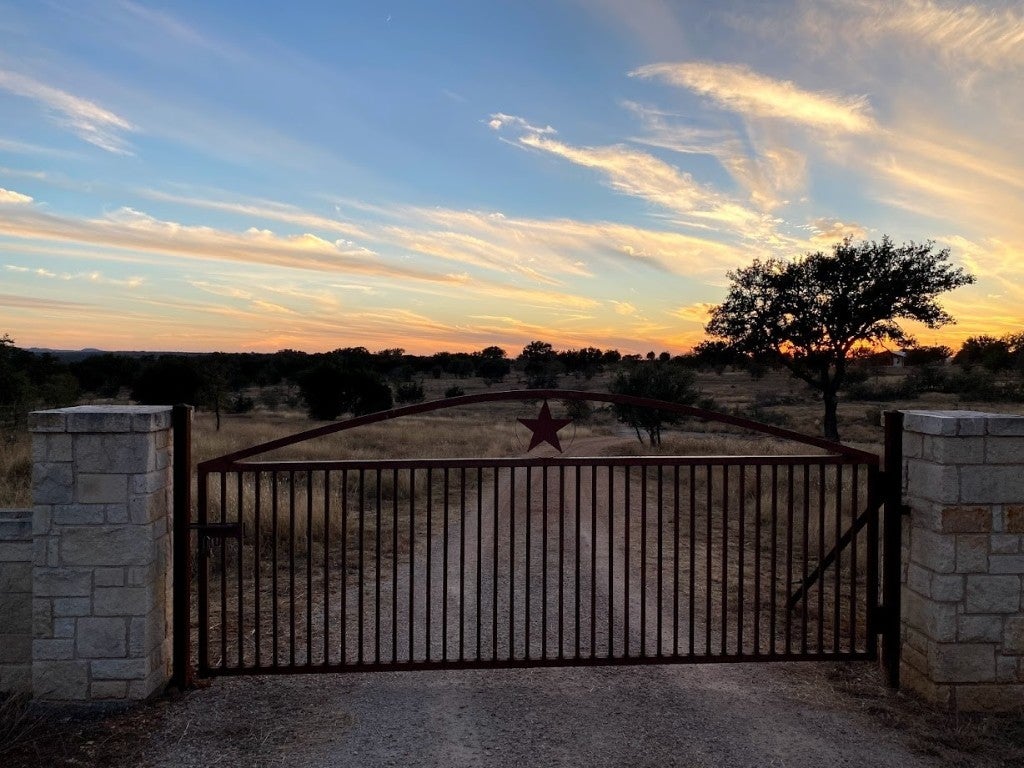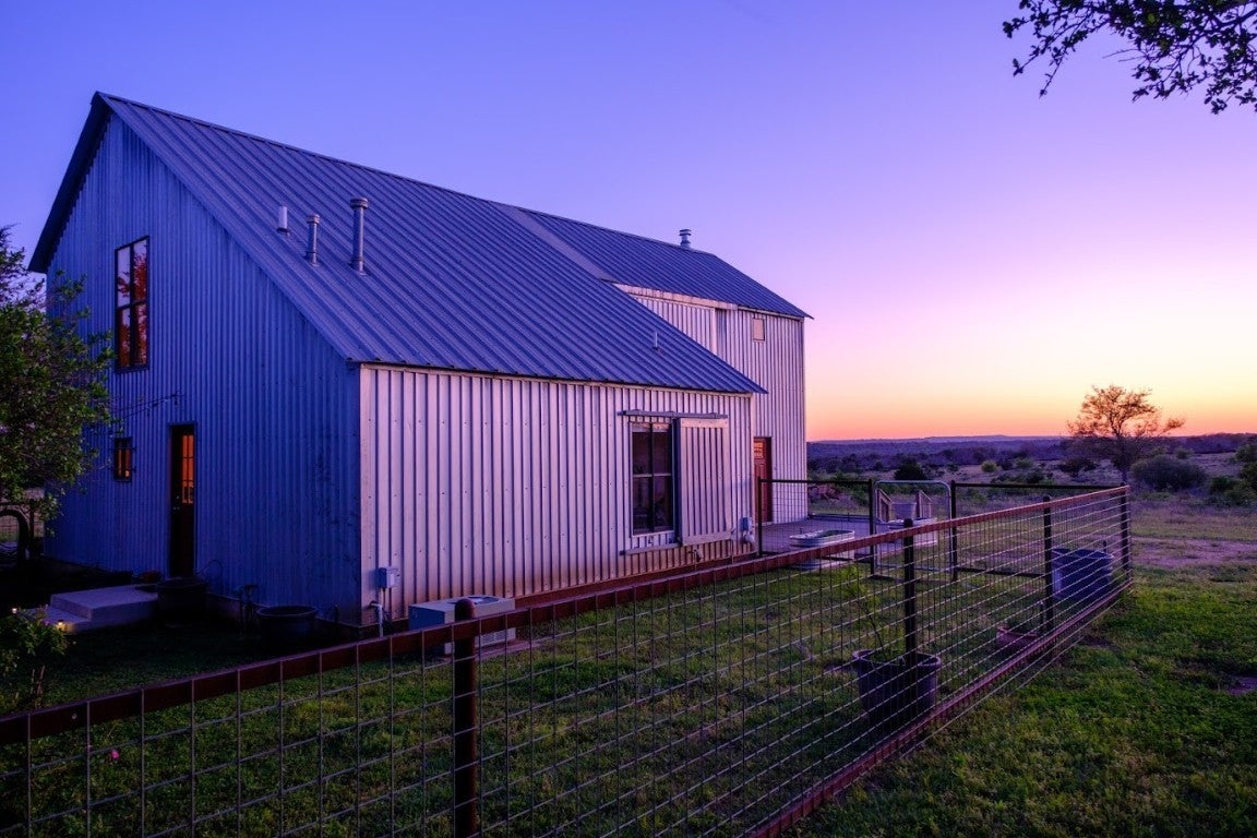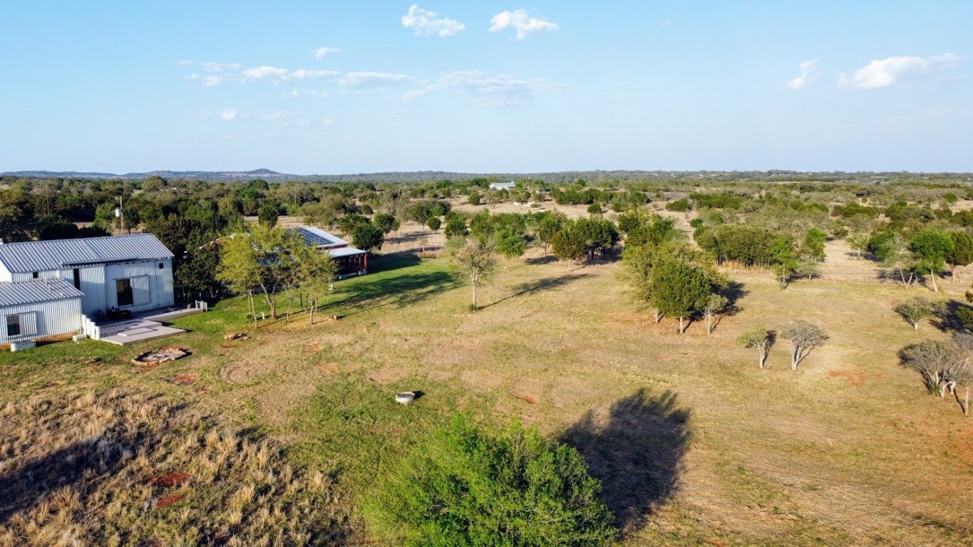 Discover the epitome of serene living at 997 Big Sandy, a rare unrestricted gem nestled in a prime location with endless possibilities. Whether you're seeking a residence, an event venue, a picturesque wedding destination, or a lucrative short-term rental investment, this property offers it all. The main structure, a striking silver barn, boasts a spacious 1,600-square-foot open living concept. Featuring two bedrooms and two full baths, the barn is designed with a large kitchen and dining area, soaring 24ft tall ceilings, and an authentic wood-burning stove fireplace. Enormous sliding barn doors open to reveal unrestricted views of the stunning Texas Hill Country. A large deck seamlessly transitions between indoor and outdoor living, offering breathtaking natural beauty, captivating wildlife, and great recreational opportunities. Here, you can witness amazing sunsets and indulge in stargazing. The second structure, a vibrant red building, spans 2,000 square feet under air conditioning. The open studio concept includes a kitchen and a bathroom, a large screened-in porch, and an attached flex space that can be utilized as a garage, gym, studio, or storage area. A 30 panel solar system on the roof covers your energy needs. Additional amenities include a custom built 16-ft long stand-alone sauna that includes a changing room, an indoor shower, outdoor shower, Huum wood-fired stove, and high fidelity Sonos sound system. Blink Smart Security cameras are available for peace of mind. The property is fully fenced, featuring a beautiful hand-stacked stone wall on the west side. Wildlife enthusiasts will appreciate the deer feeder, wild turkey feeder, and water trough that support abundant wildlife. The property also holds a Wildlife Management Tax Exemption. Enjoy private gated access and proximity to Johnson City, Fredericksburg, Horseshoe Bay, Austin, and San Antonio, making 997 Big Sandy the perfect blend of seclusion and convenience.