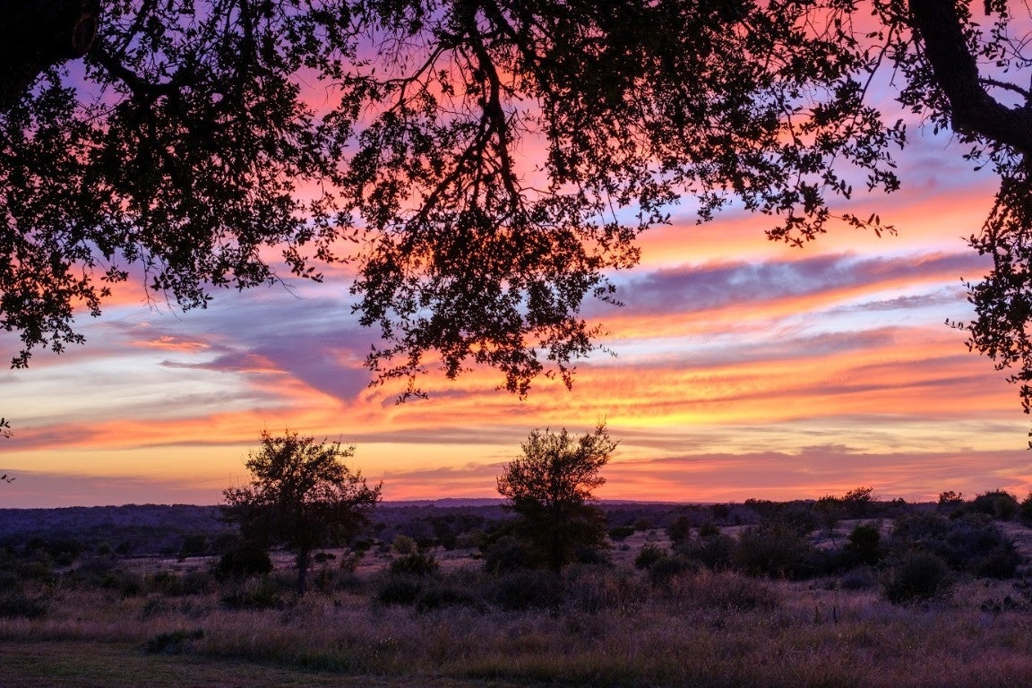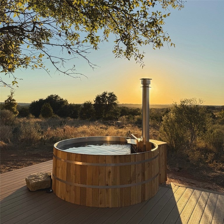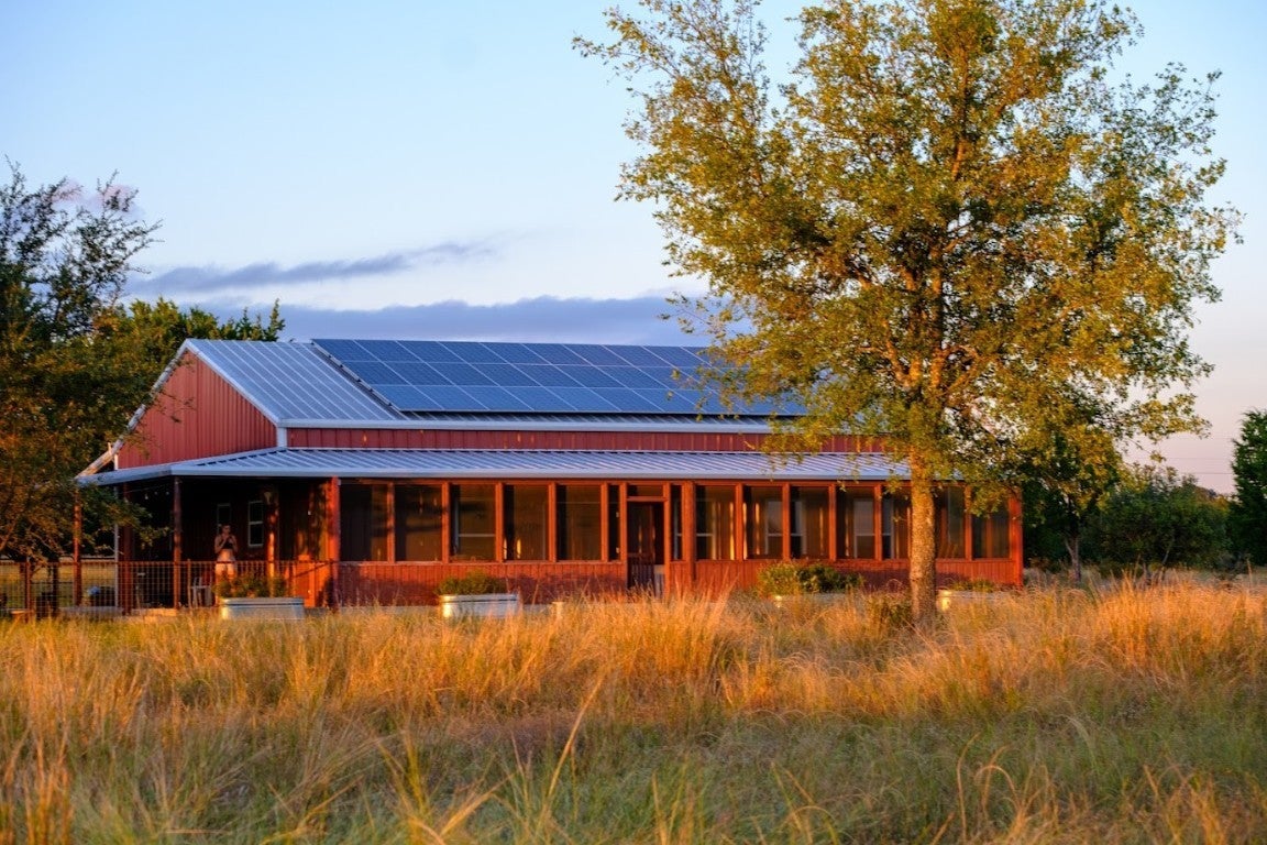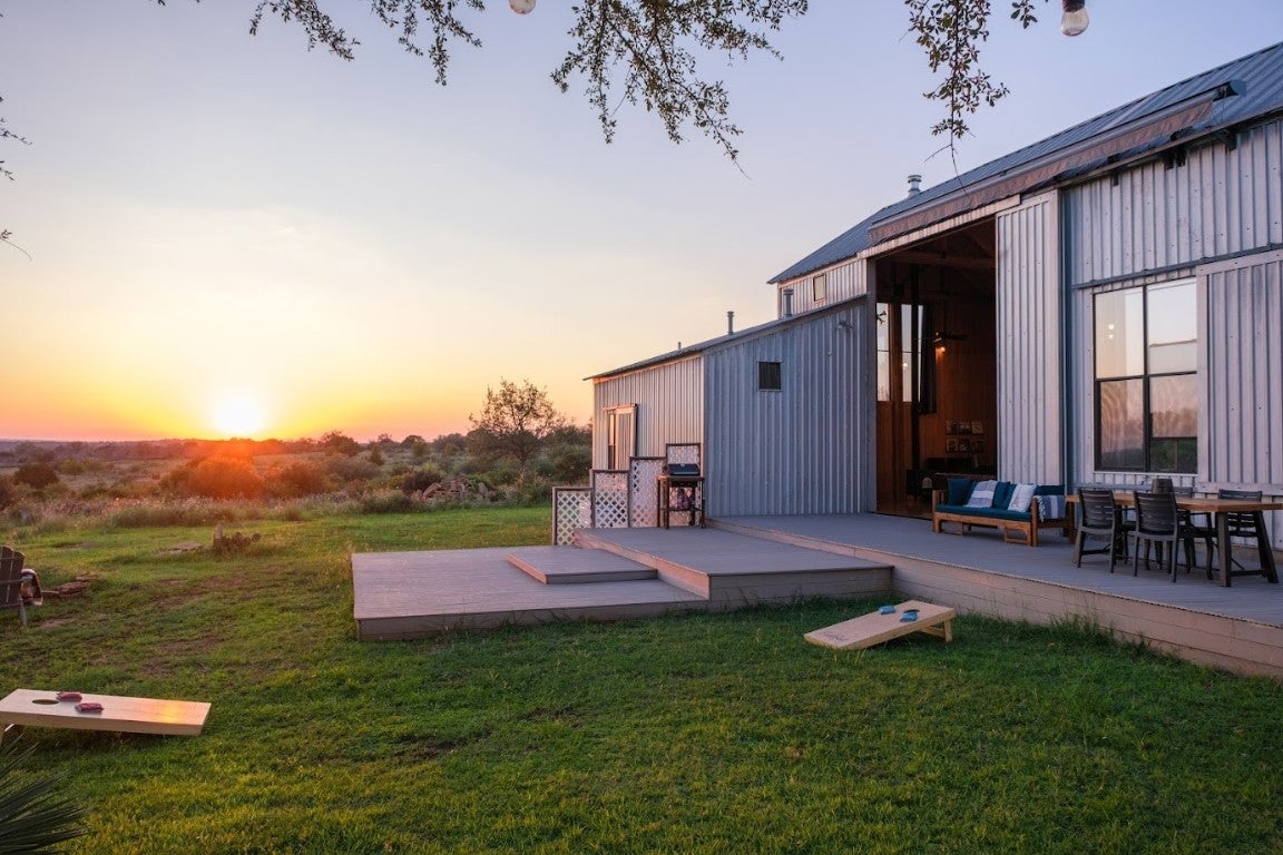 Discover the epitome of serene living at 997 Big Sandy, a rare unrestricted gem nestled in a prime location with endless possibilities. Whether you're seeking a residence, an event venue, a picturesque wedding destination, or a lucrative short-term rental investment, this property offers it all. The main structure, a striking silver barn, boasts a spacious 1,600-square-foot open living concept. Featuring two bedrooms and two full baths, the barn is designed with a large kitchen and dining area, soaring 24ft tall ceilings, and an authentic wood-burning stove fireplace. Enormous sliding barn doors open to reveal unrestricted views of the stunning Texas Hill Country. A large deck seamlessly transitions between indoor and outdoor living, offering breathtaking natural beauty, captivating wildlife, and great recreational opportunities. Here, you can witness amazing sunsets and indulge in stargazing. The second structure, a vibrant red building, spans 2,000 square feet under air conditioning. The open studio concept includes a kitchen and a bathroom, a large screened-in porch, and an attached flex space that can be utilized as a garage, gym, studio, or storage area. A 30 panel solar system on the roof covers your energy needs. Additional amenities include a custom built 16-ft long stand-alone sauna that includes a changing room, an indoor shower, outdoor shower, Huum wood-fired stove, and high fidelity Sonos sound system. Blink Smart Security cameras are available for peace of mind. The property is fully fenced, featuring a beautiful hand-stacked stone wall on the west side. Wildlife enthusiasts will appreciate the deer feeder, wild turkey feeder, and water trough that support abundant wildlife. The property also holds a Wildlife Management Tax Exemption. Enjoy private gated access and proximity to Johnson City, Fredericksburg, Horseshoe Bay, Austin, and San Antonio, making 997 Big Sandy the perfect blend of seclusion and convenience.