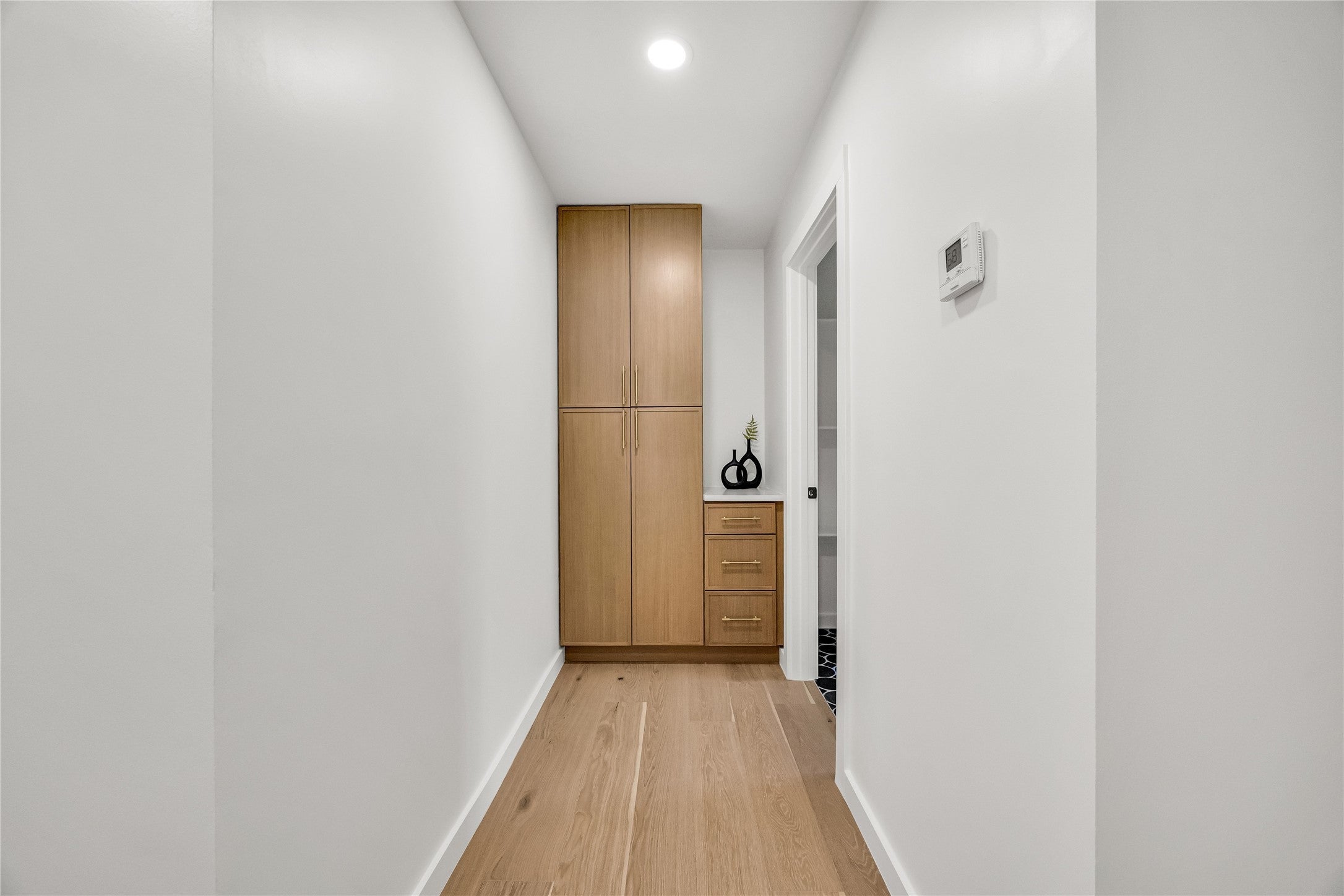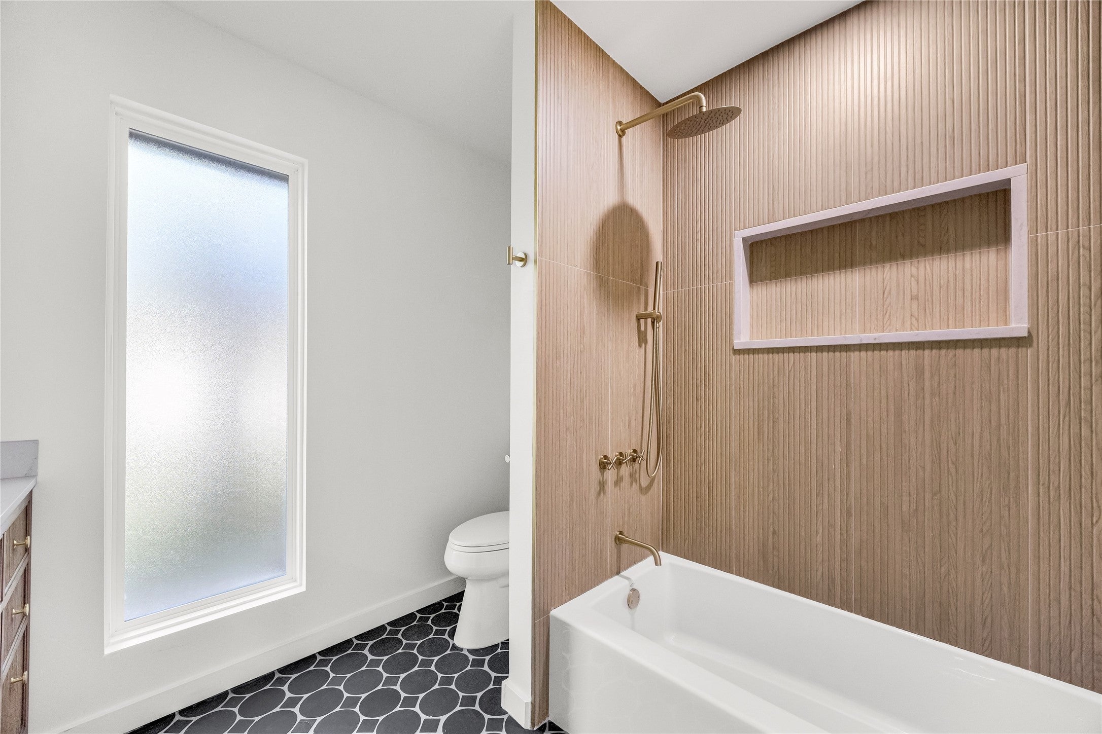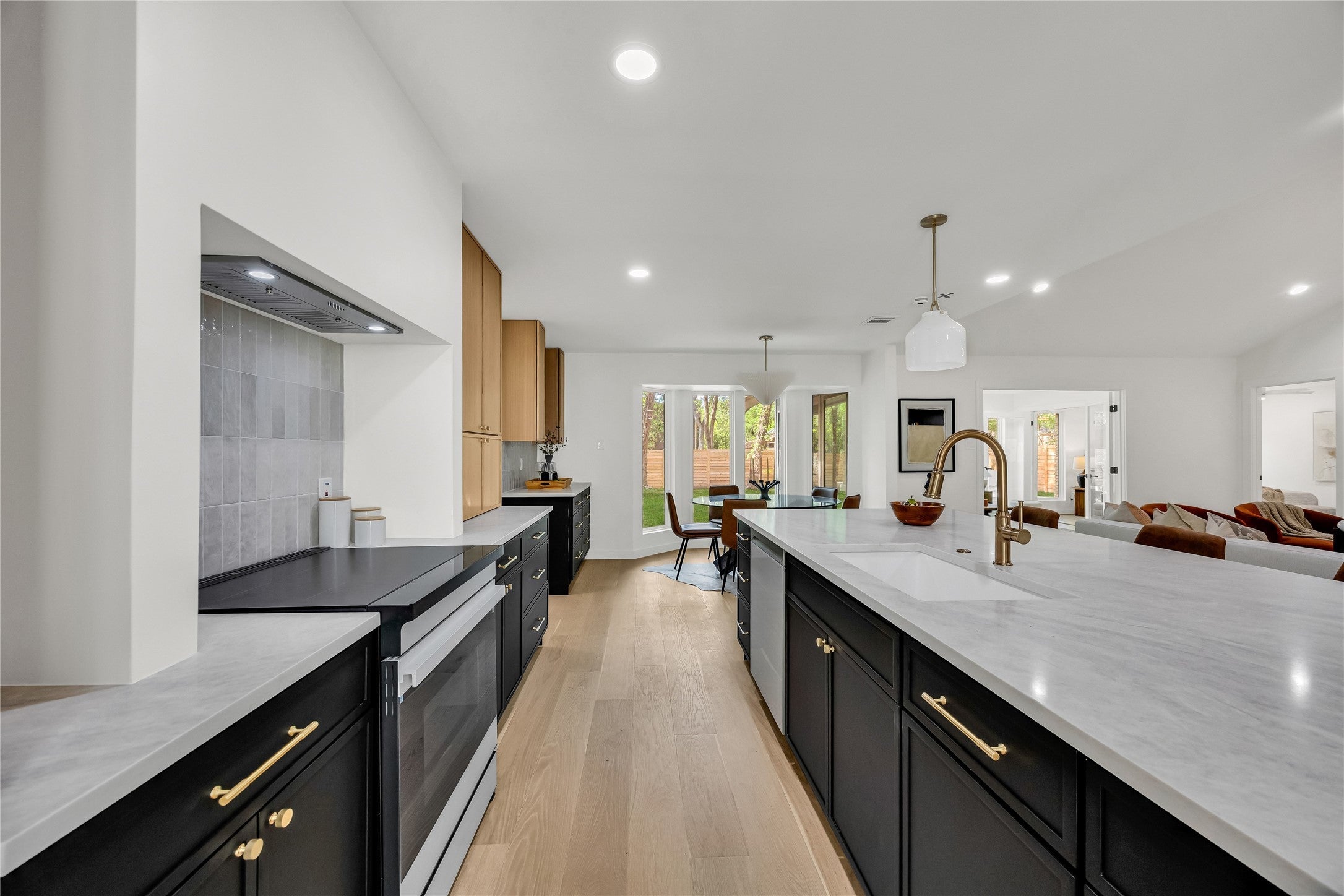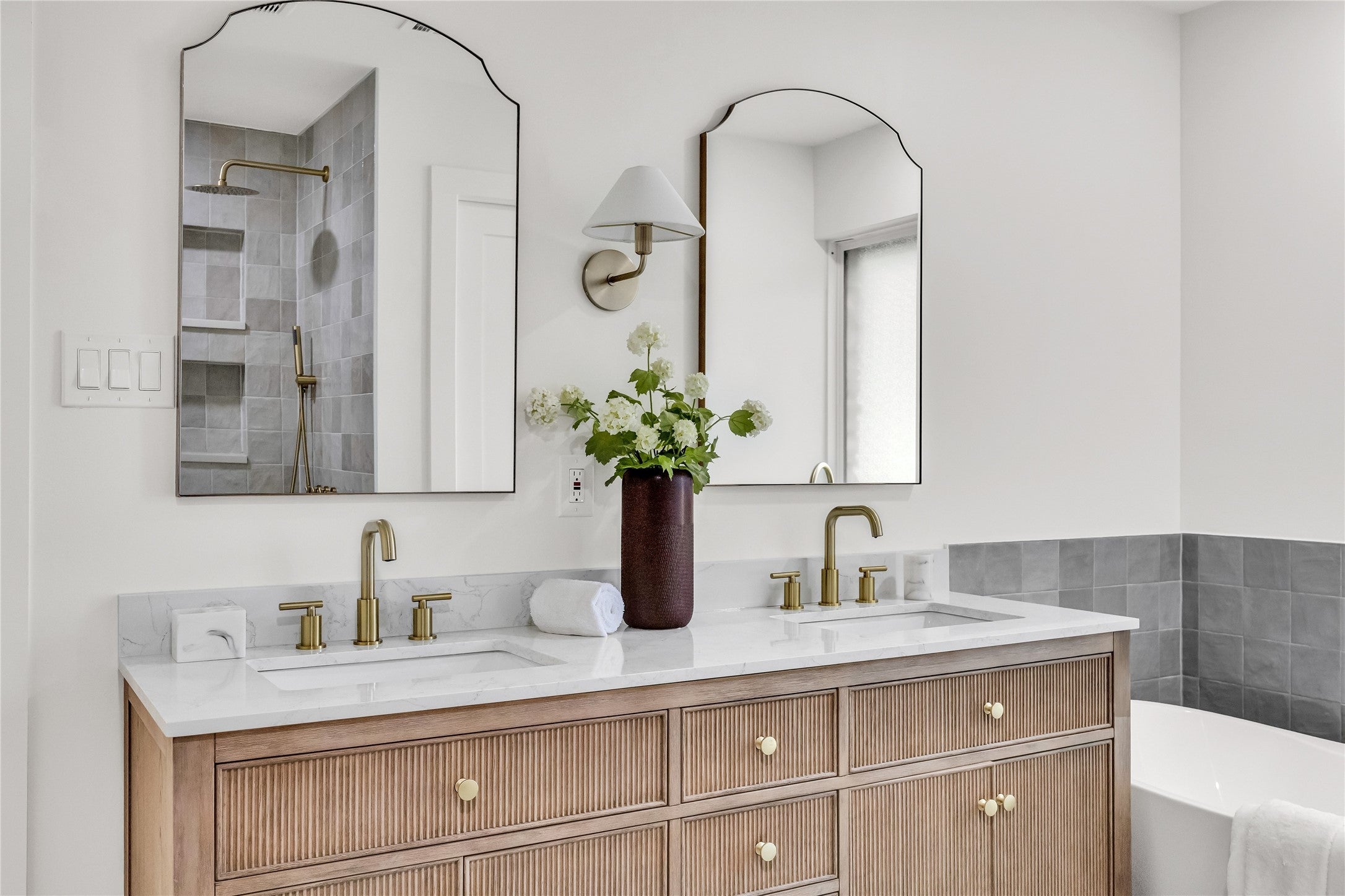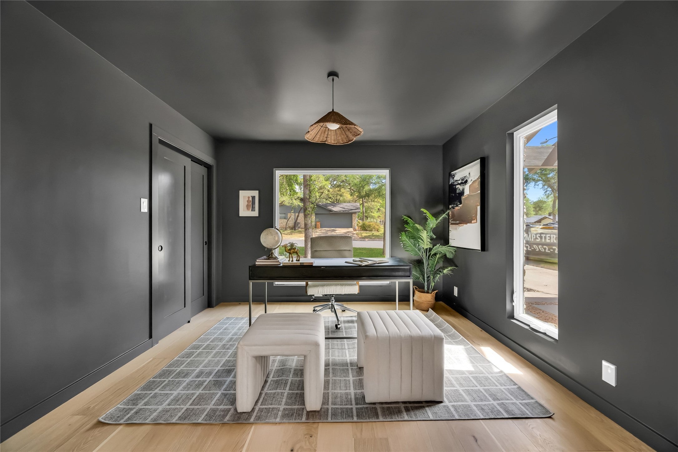 Fully reimagined and thoughtfully designed, this 4-bedroom, 3-bath home sits on an oversized 1/3-acre lot beneath a canopy of mature trees—blending modern design with natural tranquility. Inside, clean lines and warm finishes create an inviting, elevated feel throughout. The open-concept living spaces are anchored by a vaulted ceiling with exposed beam, wide-plank flooring, and seamless indoor-outdoor flow. A beautifully positioned dining area with statement lighting and expansive windows brings in natural light and backyard views. The home features a highly sought-after dual primary suite layout, ideal for multi-generational living, guests, or added flexibility. The main primary suite offers a spa-like retreat with a freestanding soaking tub, walk-in shower, and serene natural light. Secondary bedrooms are well-sized, complemented by a stylishly designed hall bath with custom finishes. Designed with everyday living in mind, the home features a functional mudroom, a spacious laundry room conveniently located off the garage, and a separate pantry with custom cabinetry—offering a seamless blend of organization and practicality. Step outside to a private backyard with mature trees, fresh landscaping, and plenty of room to create your ideal outdoor living space—perfect for entertaining or relaxing in a peaceful setting. A rare opportunity to own a design-forward home on a large lot with a flexible layout—offering space, style, and functionality in one exceptional package. *Renovations were fully permitted through the City of Austin.*