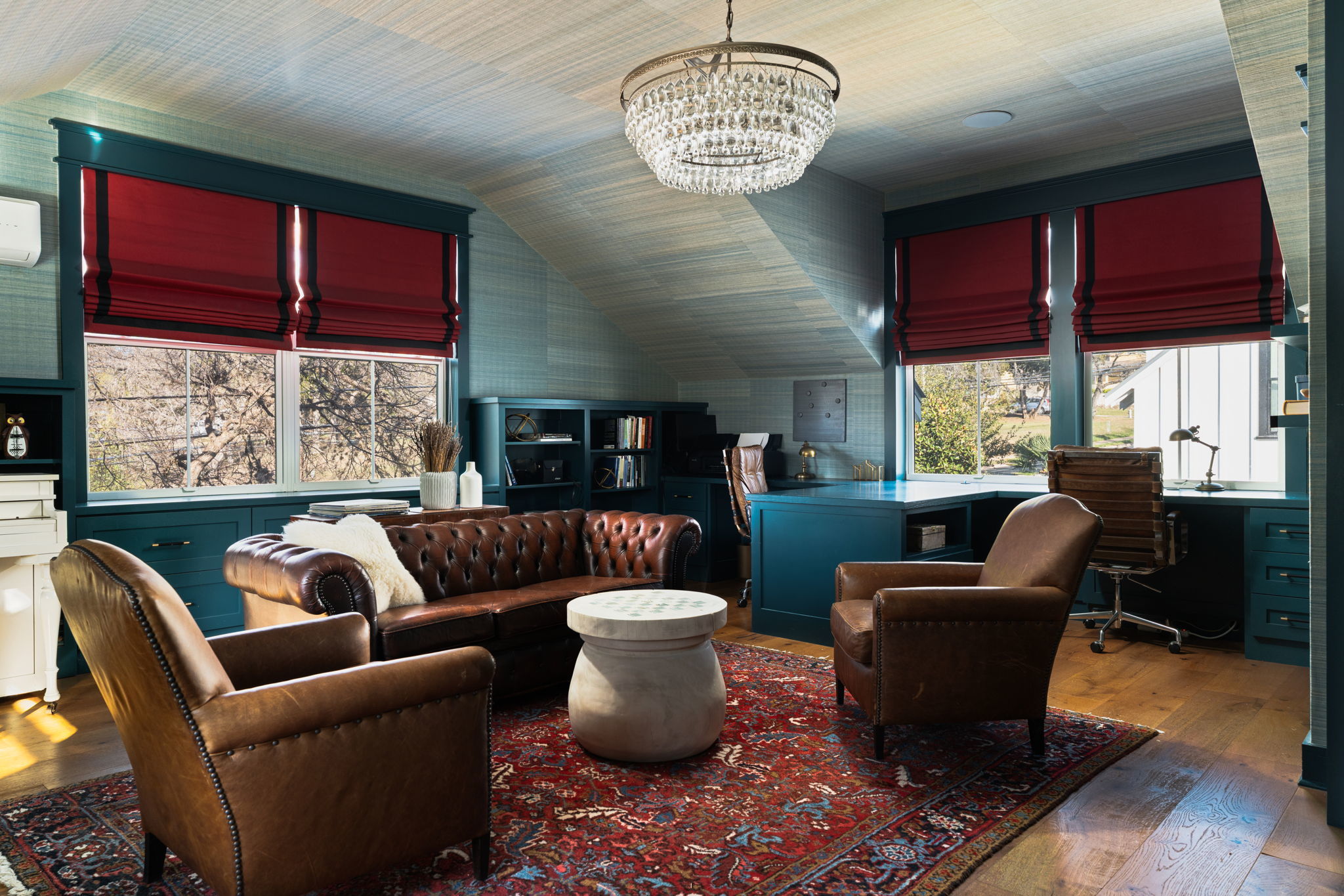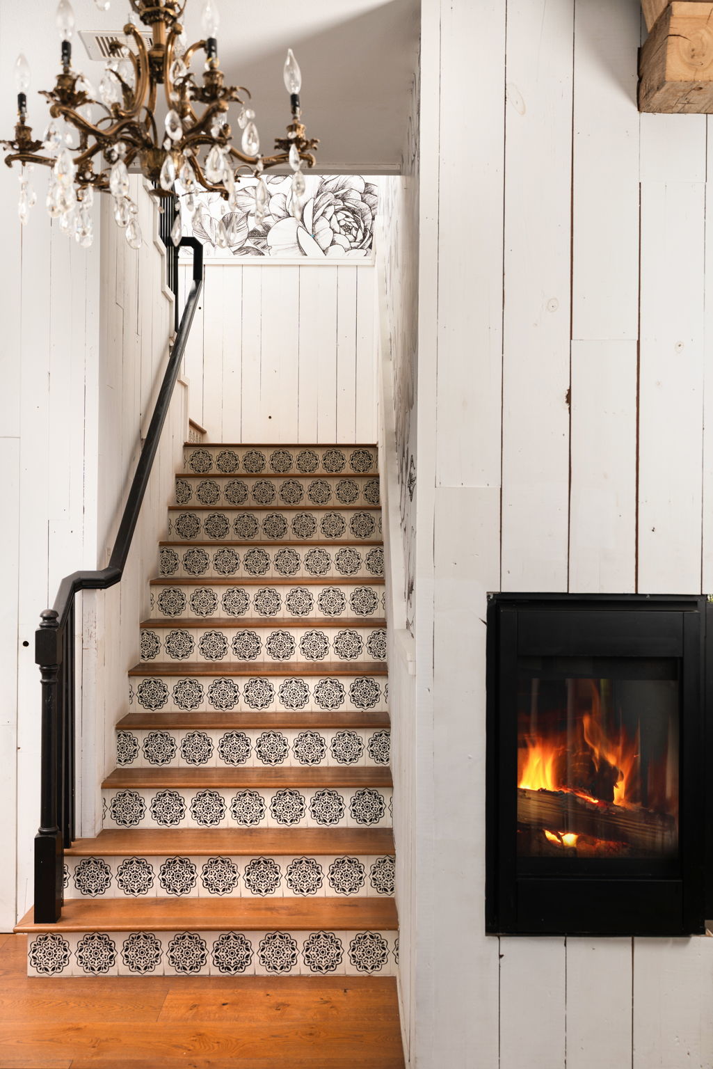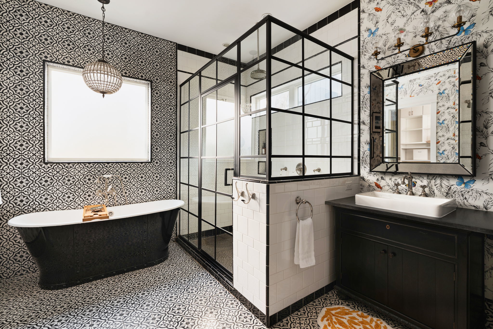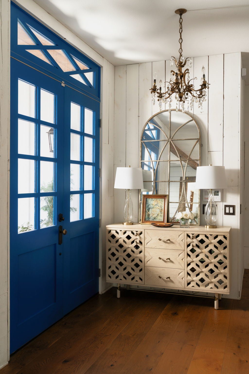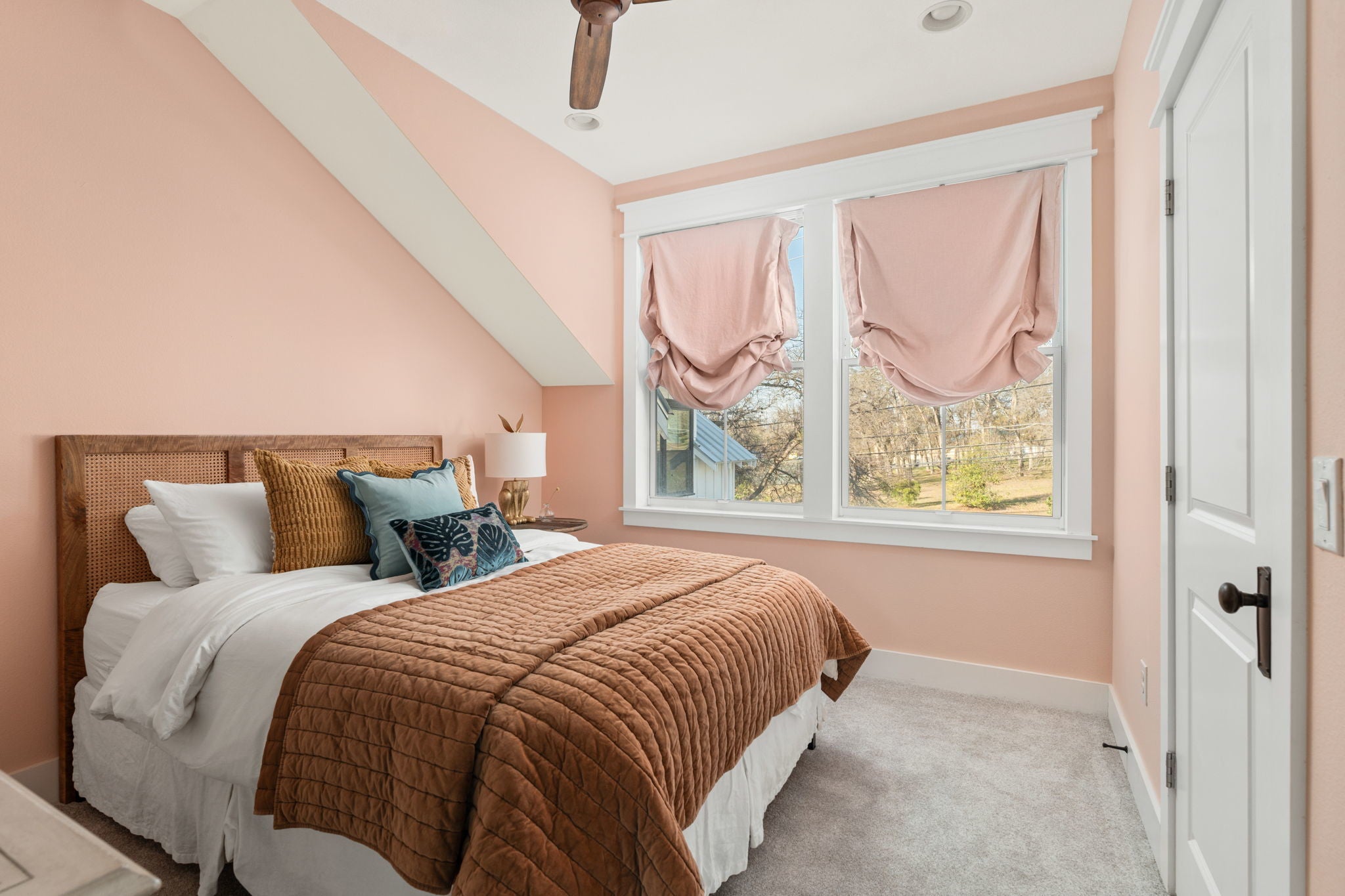 Tucked in the heart of Travis Heights just steps from South Congress, this modern farmhouse feels like a private retreat layered with color, texture, and thoughtful design. A white exterior with blue doors, metal rooflines, and warm wood accents sits behind a gated yard surrounded by lush landscaping, an expansive lawn, flourishing gardens, and a serene creek bed that creates a true urban oasis. Inside, reclaimed Austin shiplap walls and 1800s farmhouse beams add warmth and character throughout. Hardwood floors run across the open living space, anchored by a corner fireplace, custom media cabinetry, and walls of windows framing peaceful backyard views. The kitchen blends charm and high-end function with hand-laid tile flooring, an island crafted from an antique door, and a curated appliance suite including a Wolf induction cooktop, Thermador 6-burner gas range, Miele steam oven, Sub-Zero refrigerator, and drink drawers. Quartz countertops, a wood vent hood, and a classic farmhouse sink complete the space. Accordion windows open to outdoor bar seating, while a screened porch creates seamless indoor-outdoor living. The primary suite features exposed beams, architectural molding, and glass doors overlooking the trees. The spa-like bath— inspired by Hotel Saint Cecilia— showcases bold wallpaper, black-and-white tile, a soaking tub, glass shower, and penny round tile floors. Upstairs, three spacious bedrooms surround a large second living area. A Jack-and-Jill bath features blue star tile floors, quartz counters, and wood vanities, while another bedroom enjoys its own bath with printed tile and soaking tub. A detached guest suite adds flexibility or potential rental income with a kitchenette, full bath, and upstairs bedroom suite. Located directly across from Big Stacy Park and pool with easy access to the Blunn Creek Greenbelt and Lady Bird Lake, this home pairs tranquil creekside living with walkable Travis Heights energy.