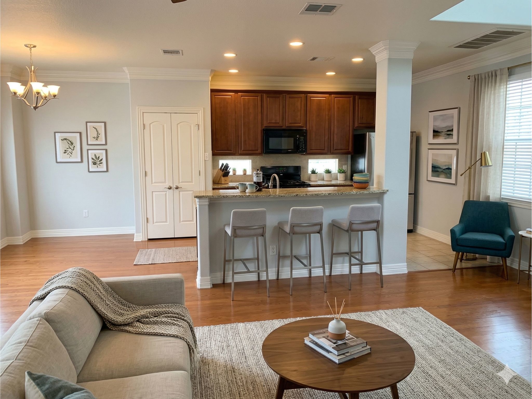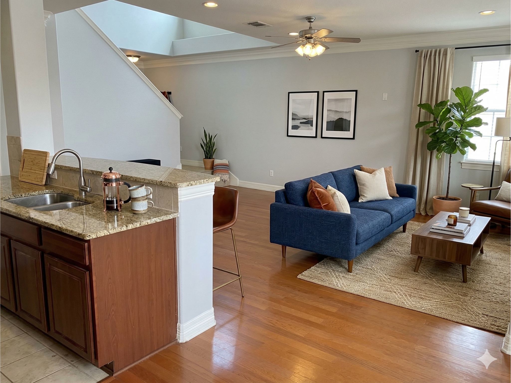 Situated at 6715 Windrift Way #15, Austin, TX, this single family townhome presents an attractive property, offering a sophisticated dwelling within a desirable setting. The culinary space within this residence is designed for both utility and aesthetic appeal, featuring a detailed tumbled tile backsplash, granite countertops, and gas cooking, A prominent kitchen bar and a generously sized kitchen island enhance the area’s functionality, while a practical kitchen peninsula offers additional workspace. Fine crown molding adds a touch of elegance, completing this thoughtful design. The central gathering area is graced with refined crown molding, contributing to an elevated ambiance perfect for relaxation or engagement. The spacious master suite includes its own private deck, a bathroom appointed with a double vanity, providing ample space and convenience, alongside a luxurious walk in shower/garden tub, and a large walk in closet. Further enhancing the property's appeal are its three serene bedrooms and three well-appointed bathrooms, ensuring comfort and privacy for all occupants. The residence also includes two dedicated garage spaces with garage opener, offering practical accommodation for vehicles. Enjoying the outdoors is effortless with a private patio and a charming balcony, providing tranquil spaces for repose. The inclusion of a walk-in closet offers substantial storage, and the property's location within a gated community provides an added layer of peace. Lease includes refrigerator with ice washer & dryer. Available May 1st so Don't miss out!