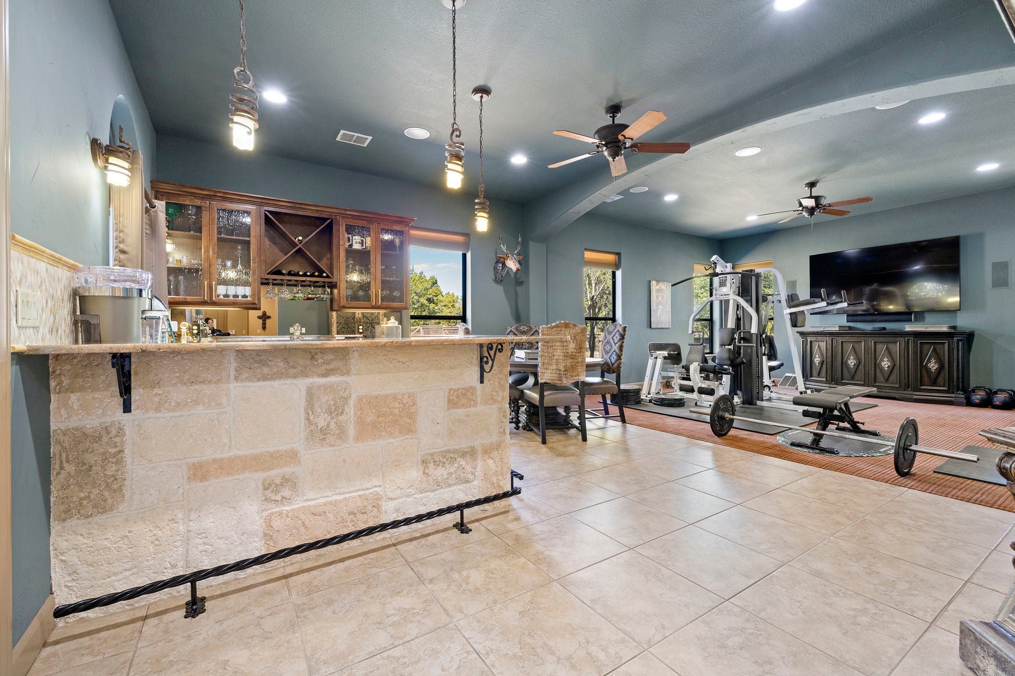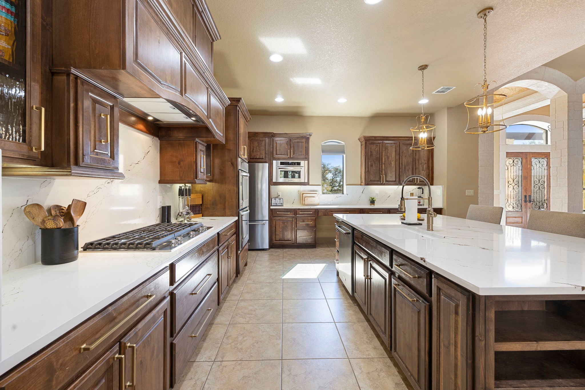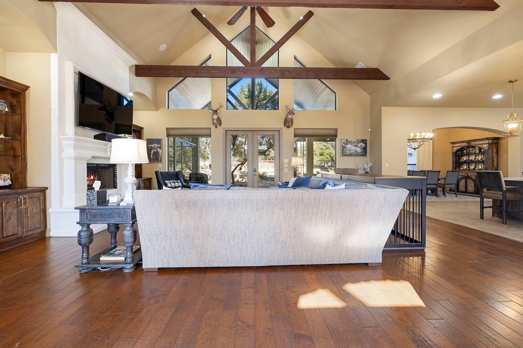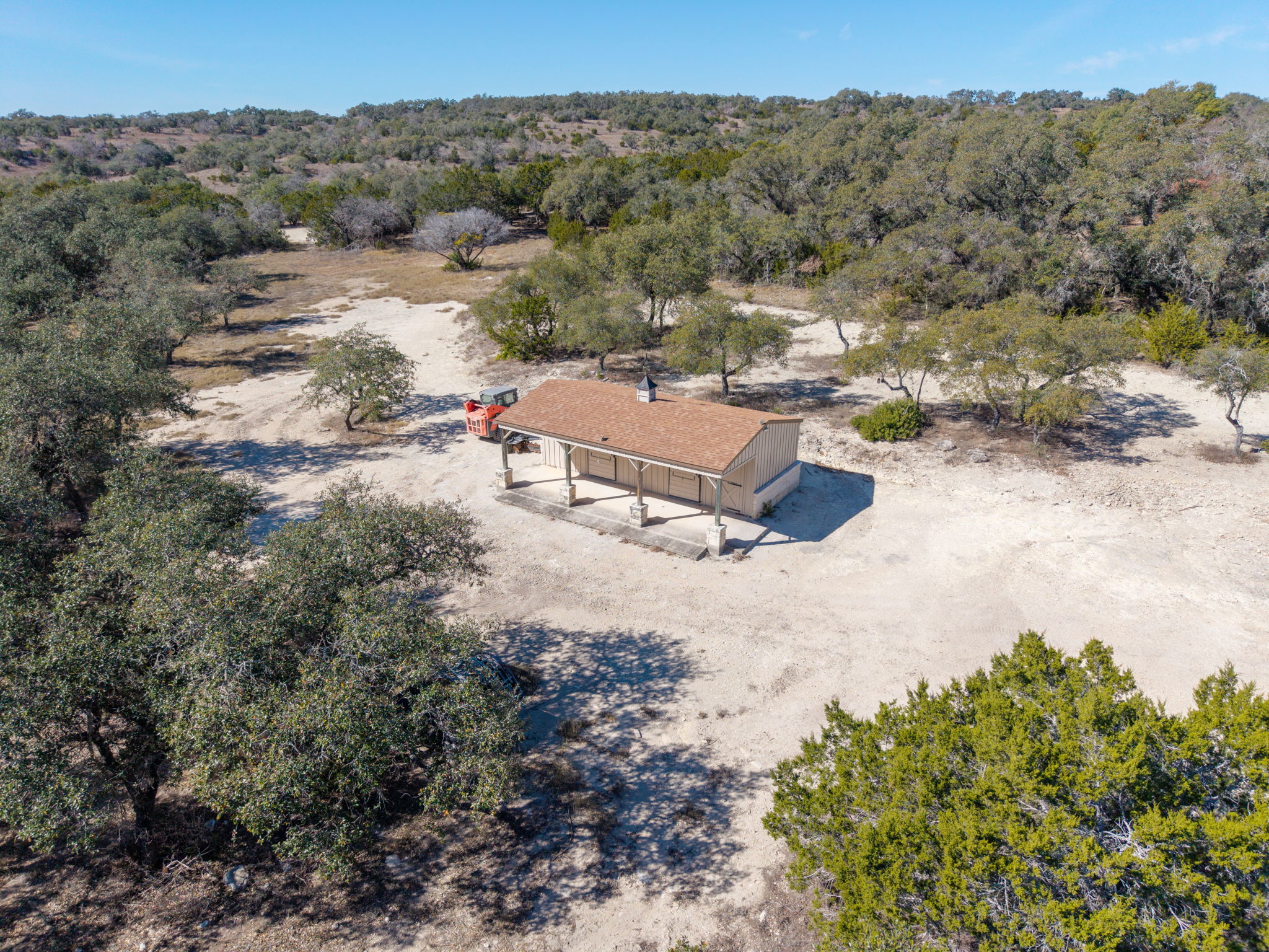 Discover refined Hill Country luxury, set on nearly 17 acres under a wildlife exemption, this transitional horse property offers exceptional privacy, recreation, and approximately 4,450 square feet of elegant living space. A private drive and grand circle entry lead to the striking stone and stucco residence with a standing seam metal roof and exposed hardwood trusses. Inside, the impressive foyer showcases triple barrel ceilings with gold leaf accents, sculpted stone archways, and hand-scraped hardwood floors. The home offers three private bedroom suites, four full baths, and a spacious three-car garage. The 2025-updated chef’s kitchen features Cambria quartz countertops, gas cooktop, designer sink and faucet, upgraded lighting, and refined finishes. Outdoor living includes a covered pavilion, saltwater pool, two-stall horse barn with tack room, fenced pasture, 25x24 workshop, and private shooting range, located within the exclusive gated Cross Canyon Ranch community.