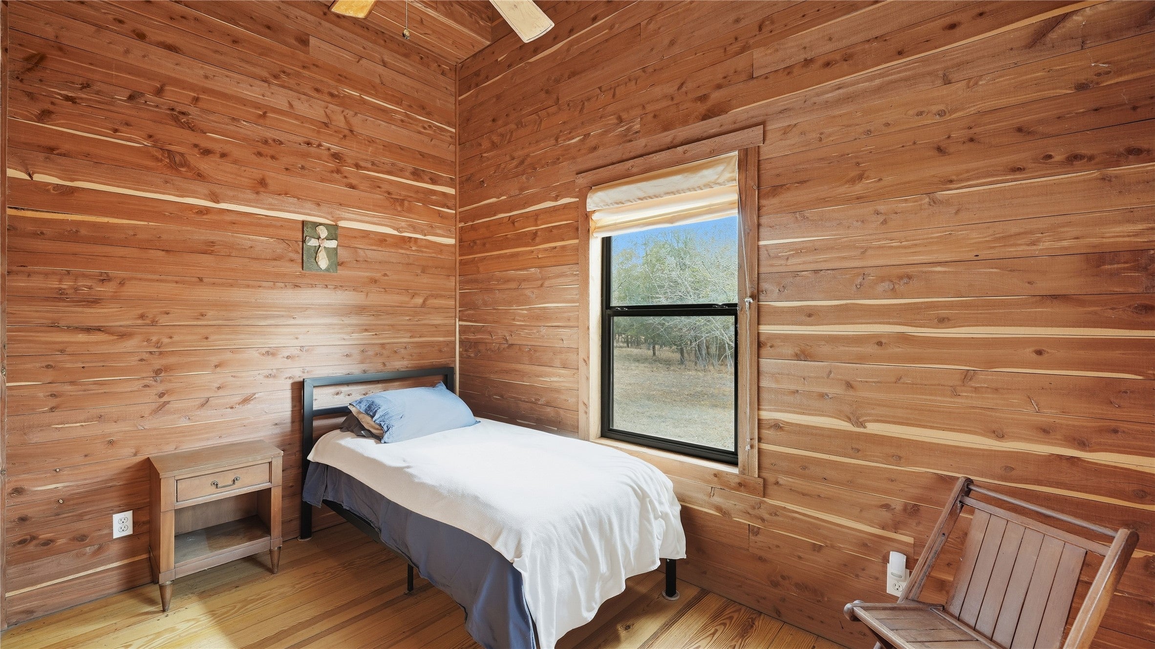 Highly Motivated! Will consider all offers! Nestled on 48 +/- acres this ranch retreat boasts 3 homes offering luxury living, guest accommodations and income opportunity in one of Central Texas most desirable and scenic settings. A blend of hardwood forest, shaded pastures, and open fields create a peaceful escape just minutes from the charming town of Smithville. This unique and exceptional property is turn-key and move-in ready, featuring three homes, multiple workshops, and excellent infrastructure—all surrounded by Century Old Live Oaks and Pecan trees, and abundance of native wildlife The main home - built in 2023, the 1,891 sq ft main residence showcases quality craftsmanship and open-concept living. 2 bedrooms, 2 baths, office, mud room. Vaulted ceilings and abundant natural light with large windows framing ranch views. Quartzite and soapstone countertops, stainless appliances, and custom cabinetry. Large outdoor living spaces with two covered porches accented with rich wood ceilings and columns. Spacious Port-O-Cochere for two vehicles, with rich wood accents. Central heat & air, septic system. Bluebonnet Electric Coop, high-speed fiber internet. Silo pump house with outdoor shower The Bunkhouse - Finished cedar guest home built in 2014, ideal for guests or rental income. First floor - 1 bedroom, 1 bath, kitchenette. Large upstairs vaulted ceiling bunk space capable of sleeping 6, with 1/2 bath and balcony overlooking the ranch. Electric appliances, high-speed fiber internet. Two garages/workshops plus tractor shed The Cabin - Charming 950 sq ft rustic cedar cabin built in 2014, used as a long to short-term rental or guest home. Covered front porch, screened in back porch. 2 bedrooms, 2 baths. Electric appliances, high speed fiber internet. Fully furnished and move-in ready. Partial flood zone in pasture area. Ag-Exempt in place. Located in Fayette County, 12 miles to Smithville, 21 miles to Bastrop, 32 miles to Round Top, 47 miles to Austin.