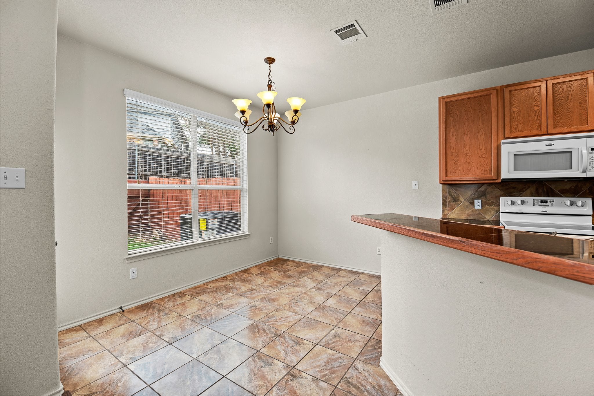 Beautiful 3-bedroom, 2.5-bath condo in the highly desirable Woods at Great Oaks Condominiums! Offering 1,569 square feet of comfortable living space, this home features an open and functional layout filled with natural light. The spacious kitchen boasts abundant counter space and ample cabinetry, perfect for cooking and entertaining, plus a charming breakfast nook for casual dining. Downstairs includes a convenient half bath for guests, while all bedrooms are located upstairs for added privacy. Ceiling fans throughout enhance comfort year-round. Refrigerator, washer, and dryer are included for added convenience. Enjoy your own fenced yard space — ideal for relaxing, pets, or a small outdoor retreat. Located in the heart of Round Rock, close to shopping, dining, and major employers.