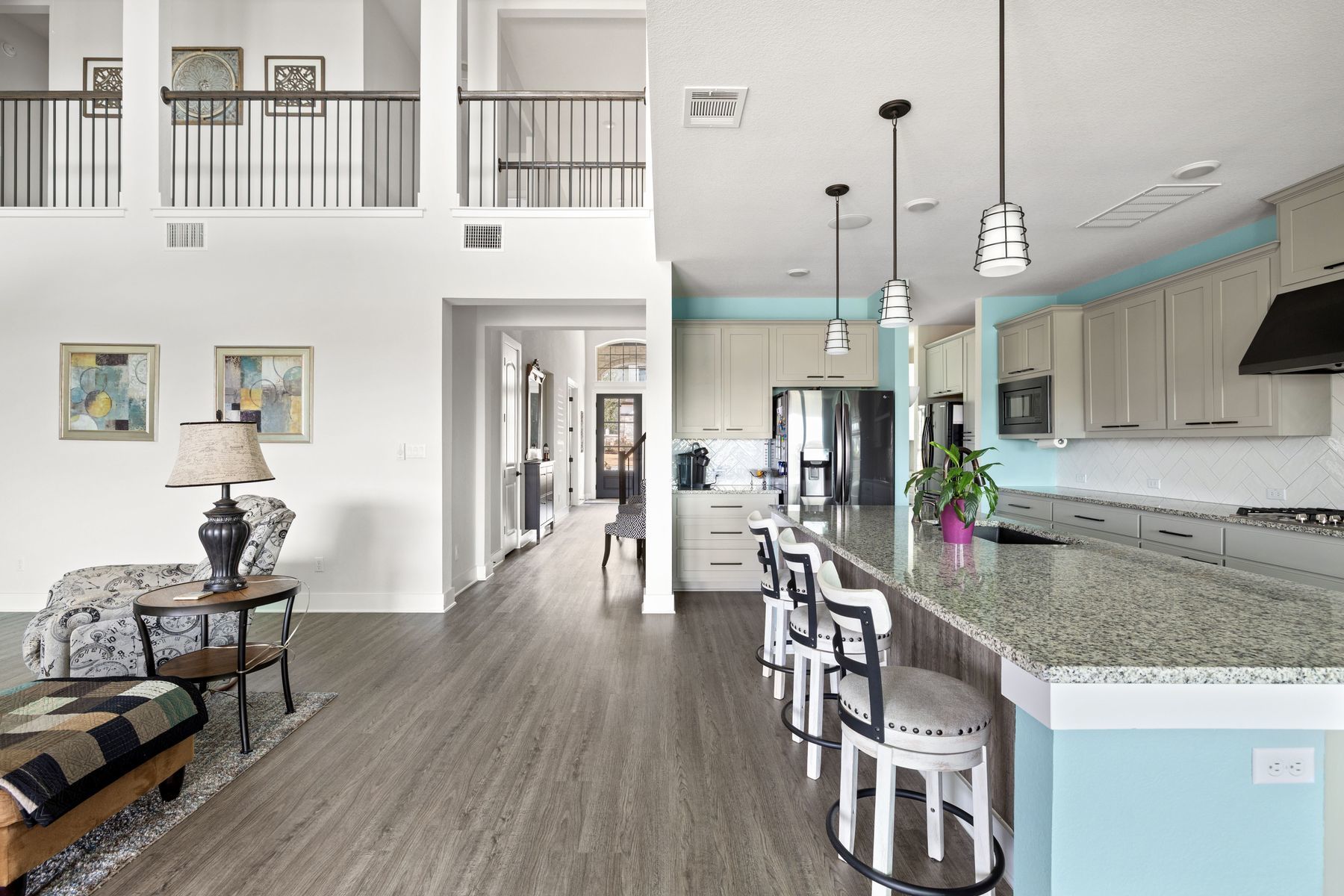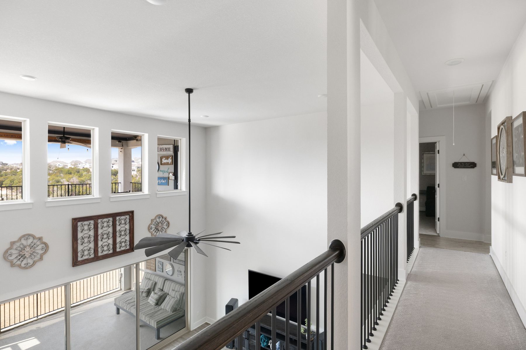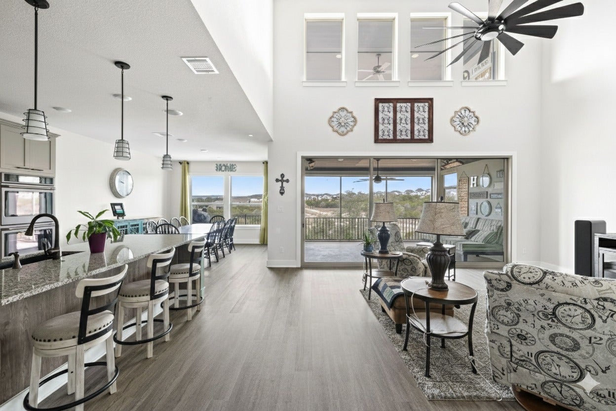 Stunning East-Facing Taylor Morrison Larimar Home with Hill Country Views This beautifully upgraded Taylor Morrison Larimar home offers luxury, comfort, and breathtaking unobstructed Hill Country views. Situated on a spacious cul-de-sac lot, the home features soaring ceilings, abundant natural light, and an open floor plan designed for modern living. Highlights include a media room, game room, guest suite on the main floor, and a three-car garage. The screened-in patio and large sliding glass doors create seamless indoor-outdoor living, while built-in heaters on both the patio and balcony allow year-round enjoyment. Additional thoughtful upgrades include extra outlets, additional fridge space near the kitchen, a freezer outlet in the laundry room, and a convenient connection from the laundry room to the owner’s suite closet. Located in the highly sought-after Travisso community, this home combines everyday convenience with peaceful Hill Country surroundings, just minutes from Cedar Park shopping, dining, and entertainment.