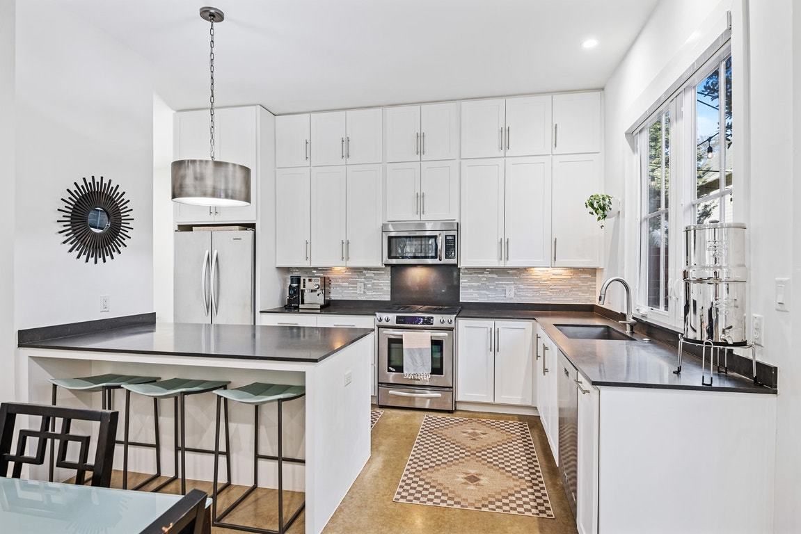 Easy show, book with us or your broker! Lightly lived-in and renovated like new, this is the only Moore-Tate resale available in 78704. Lock n leave oasis under gorgeous live oaks with native landscaping for minimal water usage. Four bedrooms and two spacious living areas accomodates any work from home needs or family size. Totally detached with two private outdoor spaces. High ceilings up and down, and great separation of spaces for privacy within the home as desired. 3-4 private parking spots in addition to large 1-car garage. Friendly community looks out for one another. Storage abounds around this singular floorplan, and nary a corner is wasted. A dedicated living room graces the upstairs, and another living nook begs for your lifestyle interpretation. The covered porch out front doubles as a loungey respite from which to wave at neighbors and a perch to ponder what plants might compliment your mature fig tree. Low maintenance native landscaping spans the front fenced garden. Moore-Tate has a fan base, a waiting list, and a celebrated track record of over 200+ happy homeowners ONLY in 78704. They are proven design-build trailblazers that have rocketed to the No. 1 woman-owned urban Austin home builder who hires local, buys local, and gives back.