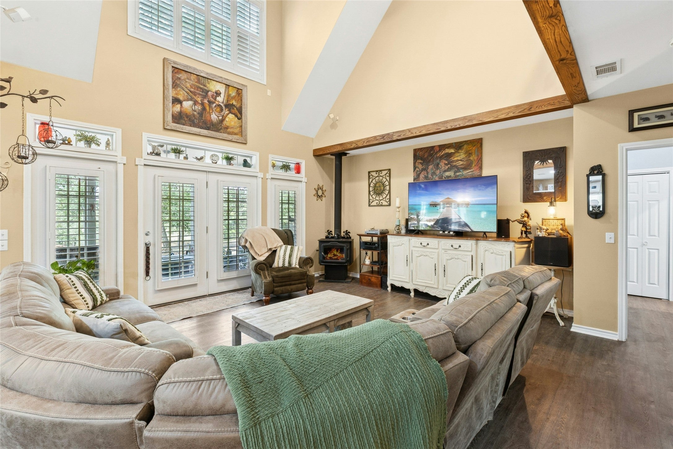 Built to last for generations! 13.5 unrestricted acres with multiple living and workspace opportunities. Property includes: • 2,319 sq ft main home (3 bed, 2.5 bath) • 930 sq ft converted garage w/ 1 full bath • 60x40 shop with roll-up doors + office (full bath & laundry) Additional features: • Stocked pond (bass, catfish, panfish) with dock • Above-ground pool with deck • Outbuilding with electricity • Livestock shed Main home built with unique steel beam construction, standing seam metal roof, commercial-grade LVP flooring, custom plantation shutters, and cast-iron stove. Ideal setup for multi-generational living, home-based business, or investment use. Estimated annual taxes before exemptions: $8500 Unrestricted property allows for flexible use. Se habla español con asistencia.