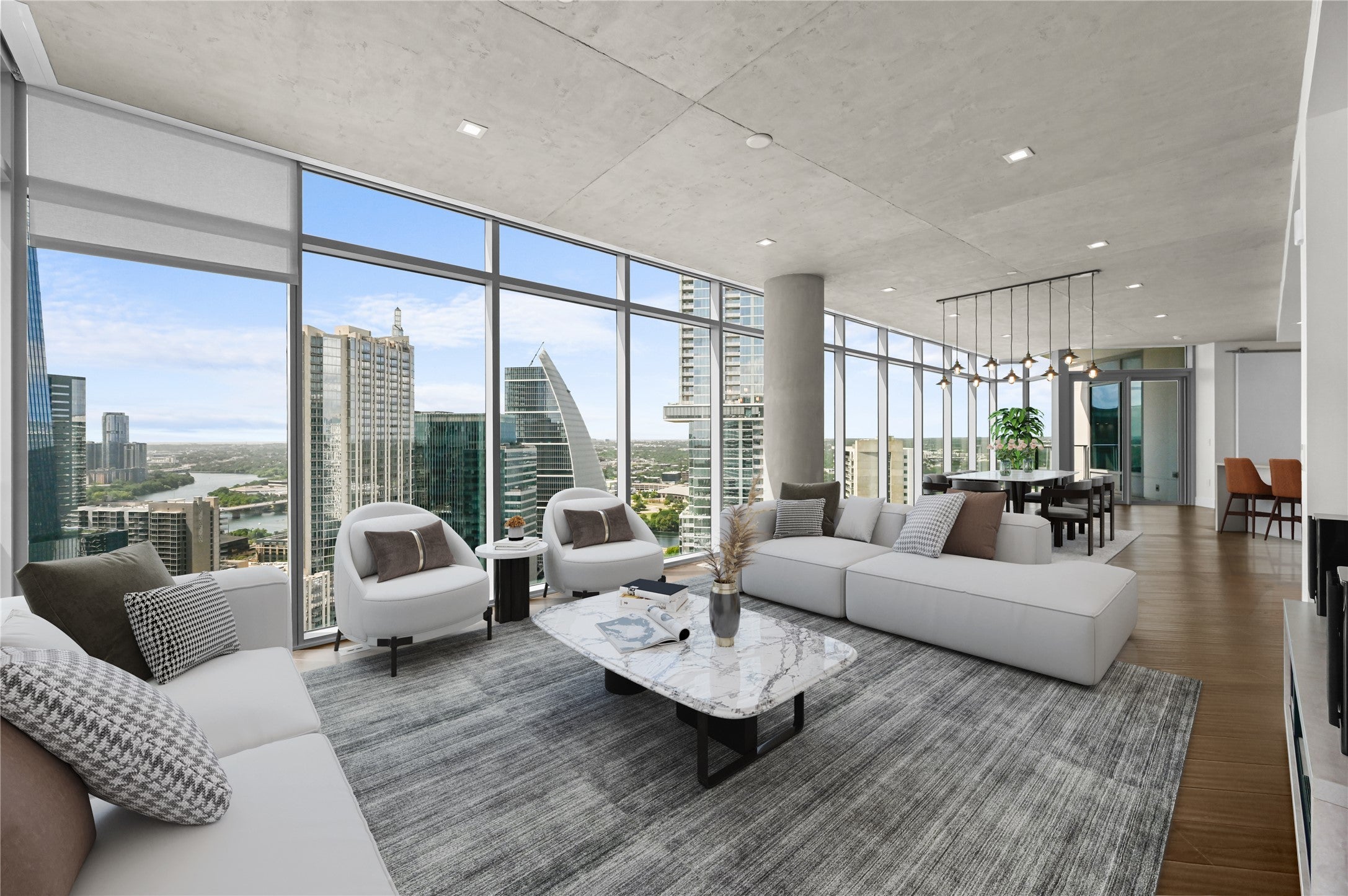Perched on the 32nd floor and overlooking the Capitol View Corridor—one of the city’s most protected vantage points-this highly sought-after floorplan boasts panoramic views of Downtown and Lady Bird Lake. With 3-bedrooms and 3-bathrooms the residence includes an additional study/flex space and two private, covered terraces perfect for soaking in the cityscape. Floor-to-ceiling windows frame the city skyline and flood the home with natural light. Luxury finishes include wide-plank hardwood flooring, marble bathrooms, a premium Miele appliance package, motorized window shades, and custom closet built-ins. Nestled in the vibrant Market District, Fifth & West is Austin’s premier boutique high-rise, crafted by renowned architect Michael Hsu. Step outside your front door and into the heart of Austin’s best culture—award-winning restaurants, upscale shopping, live music venues, nightlife, and entertainment are all just steps away. With MoPac just one mile away and the Central Business District nearby, connectivity and convenience are second to none. Enjoy two premium, reserved parking spaces with urban storage container world-class building amenities: 24-hour concierge service, a resort-style pool, resident portico with fire pit, multiple elegant lounge areas, two fully furnished guest suites, a cutting-edge fitness center, a private meeting room, and a beautifully appointed pet park with an adjacent indoor lounge and coffee bar. The controlled-access parking garage ensures peace of mind. Welcome to refined urban living in one of Austin’s most iconic residences. Tax and assessed values are estimates for illustration purposes only. All figures should be independently verified.