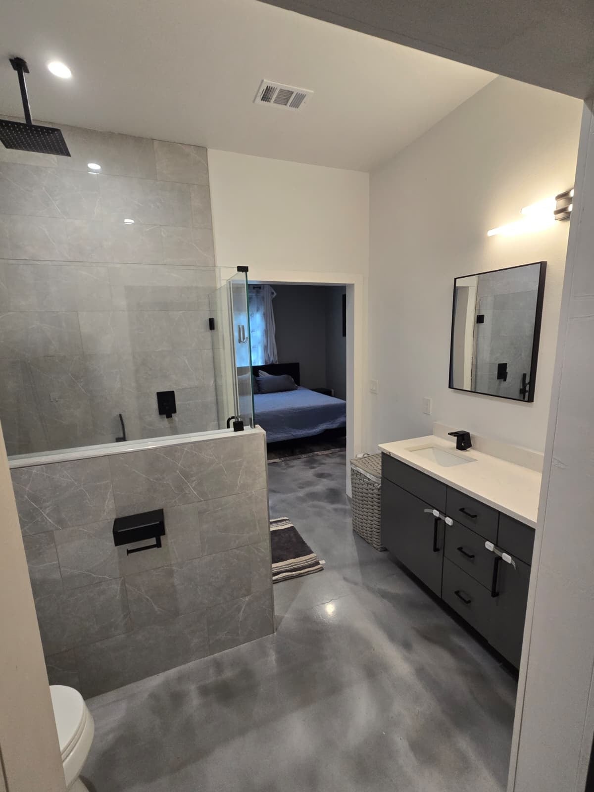 This home in the heart of Rockdale is truly a delight! You’re welcomed by an elegant metal front door that sets the tone from the moment you walk in. The kitchen features white cabinets running along the entire wall—making it incredibly easy to stay organized—along with a stylish vent hood, a center island, and granite countertops. The living room boasts soaring high ceilings, a stunning chandelier, and recessed lighting throughout the home, creating a bright and elegant atmosphere. Outside, the home offers the comfort you’re looking for with a covered patio and extended concrete area, perfect for gatherings. The beautifully designed curb appeal makes this home enjoyable inside and out.