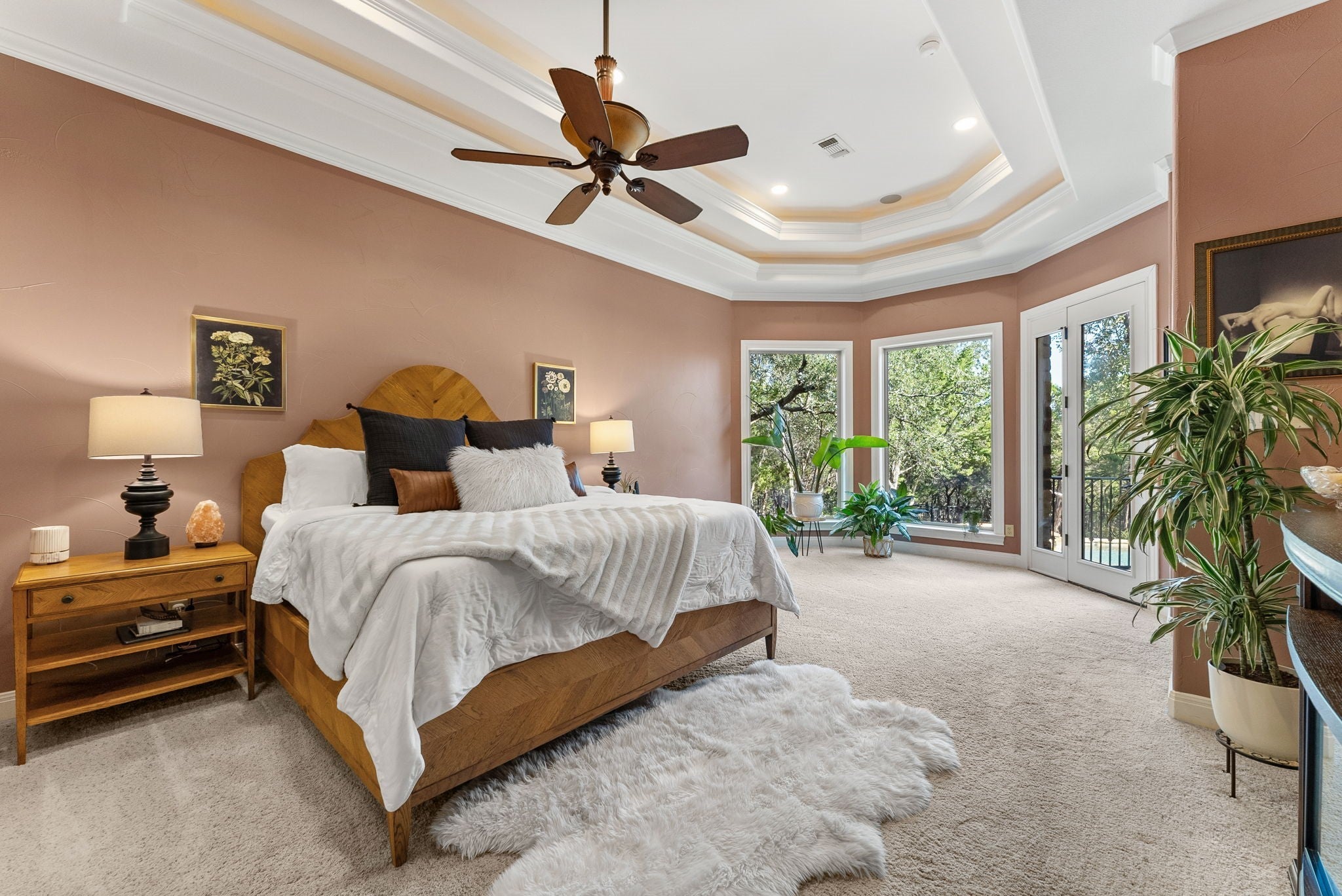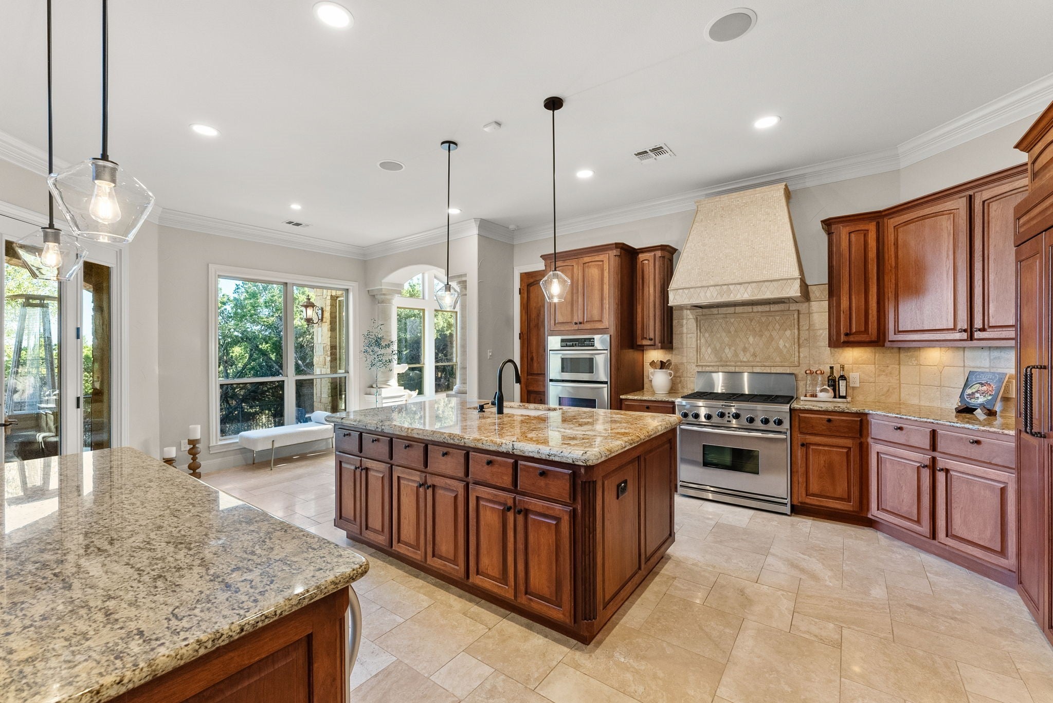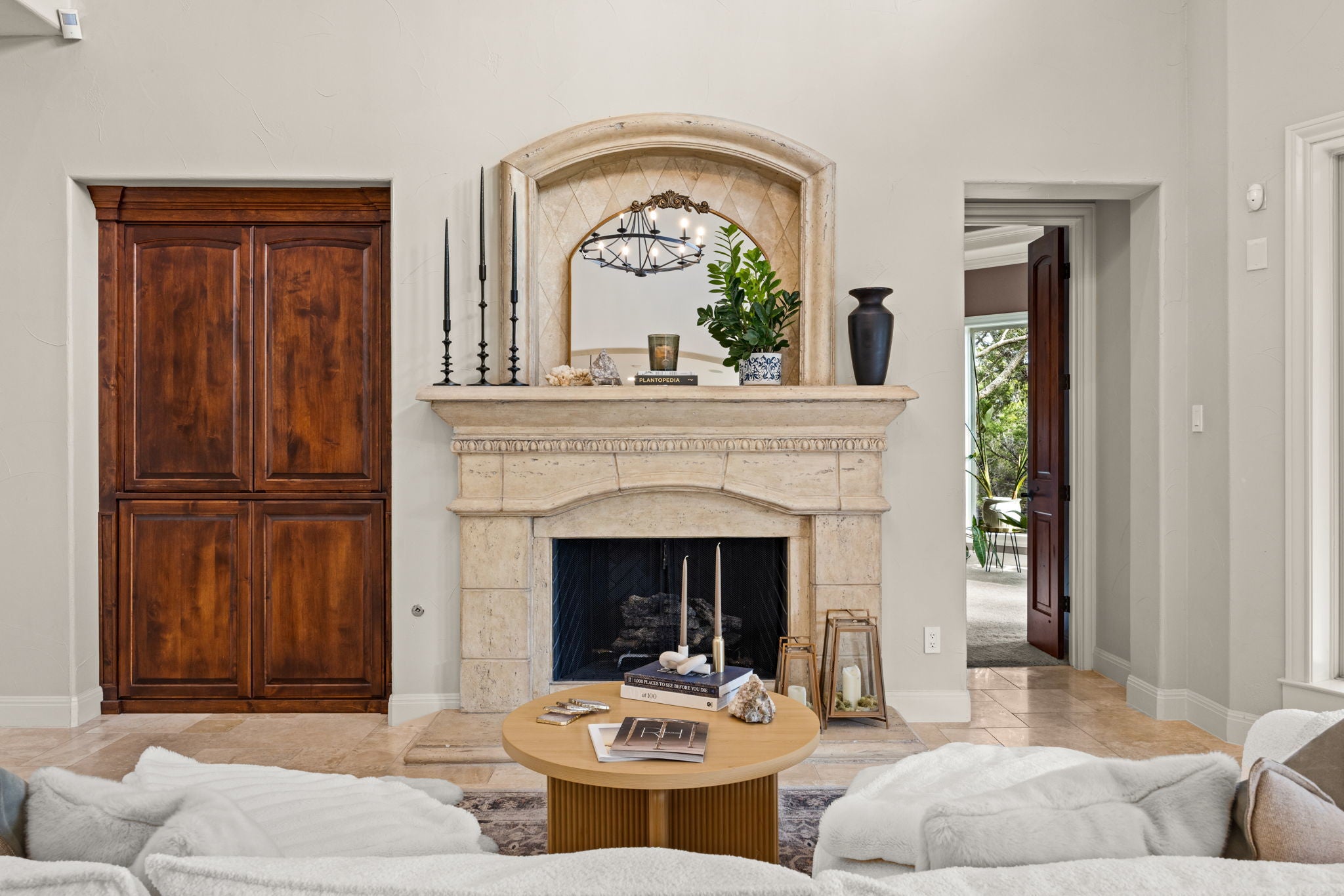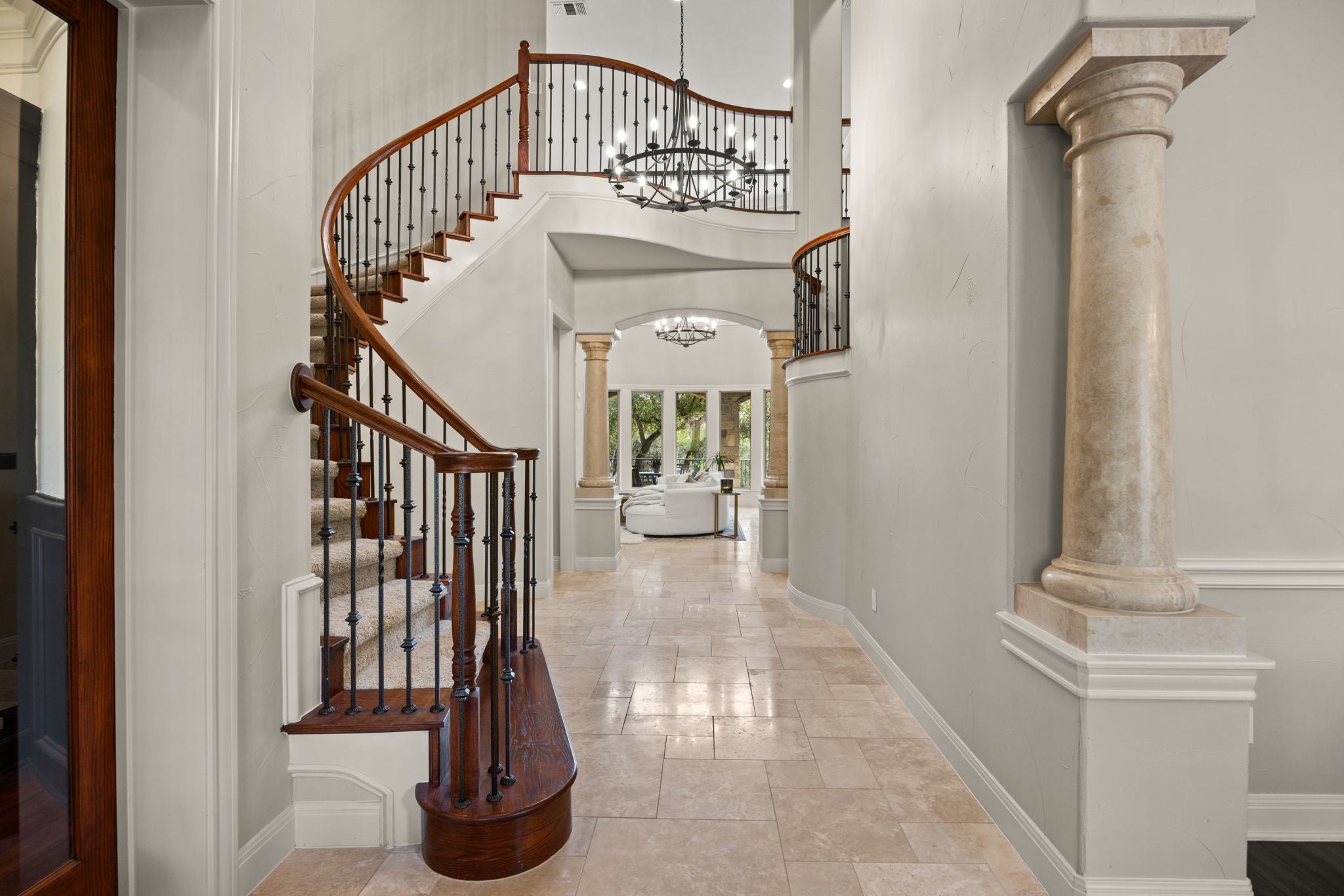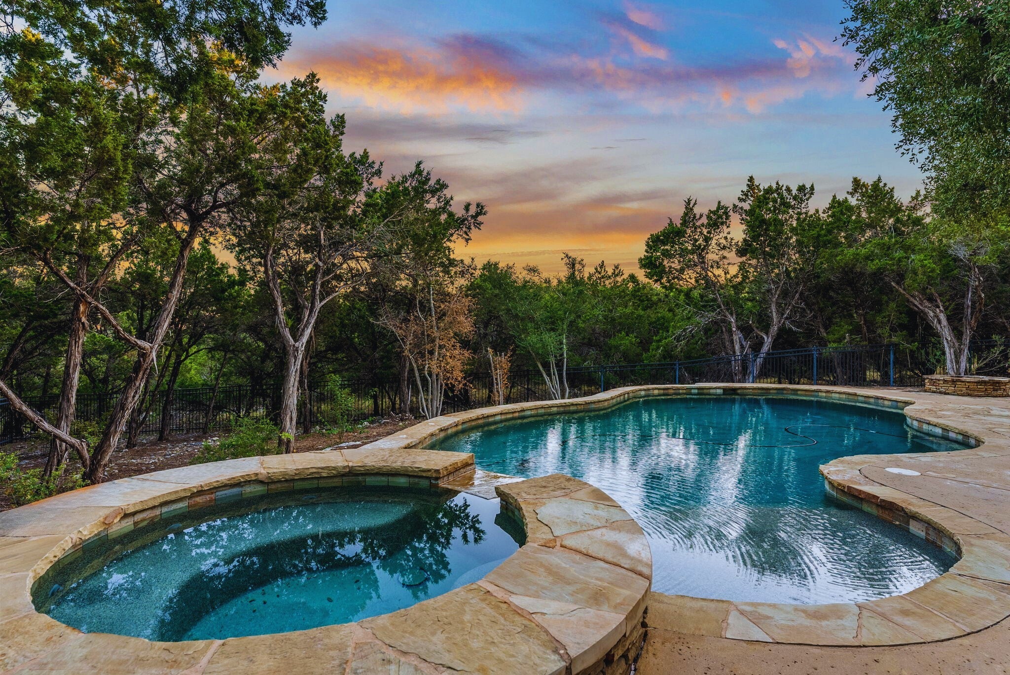 The sellers have made recent updates to the house! Call for more info! Welcome to this stunning Mediterranean-inspired 4-bedroom, 3.5-bath home, featuring a beautiful stone exterior, terracotta roof tiles, marble columns and arched accents. Short Term rentals are allowed! This custom-built retreat is located in the sought after community of The Hollows in Jonestown. As you enter the front door, you’ll be greeted by soaring ceilings, dual staircases, hand-textured walls, and custom woodwork throughout. An open floor plan flows seamlessly, from the living area, to the spacious gourmet kitchen. Entertain guests and enjoy delicious meals together with friends and family complete with top-of-the-line appliances, custom cabinetry, and a large center island. The expansive living area features a cozy stone fireplace and travertine tile. The primary suite is a spacious sanctuary with ambient tray ceiling lights and back patio access. The spa-like Primary bath offers a soaking tub, walk-in shower, dual vanities, and a large walk-in closet. The three additional bedrooms upstairs are generously sized to accommodate family or guests. The upstairs hallway overlooks the downstairs and has a custom bookshelf that slides aside to reveal the private media room equipped with a projector. Relax and enjoy your personal oasis in the backyard with a covered patio overlooking the sparkling pool and native plants. Enjoy the amenities of The Hollows, including a marina, pools, a beach club, hiking trails, and lakefront park access, just minutes away.