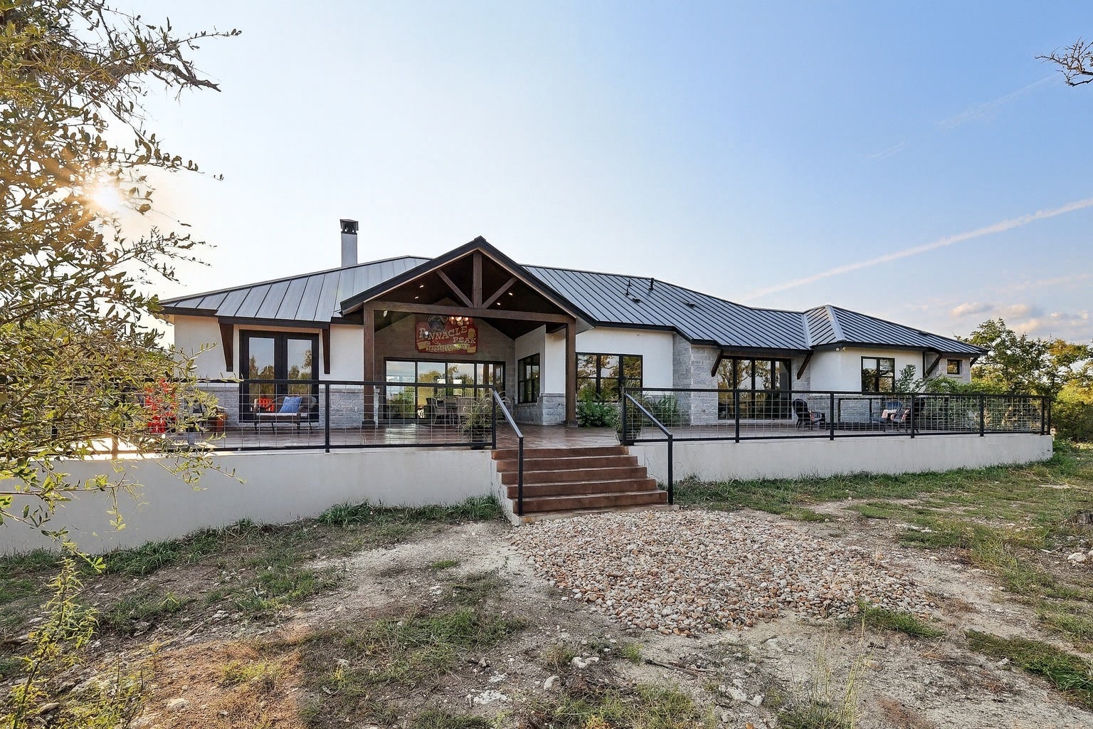 Every detail has been thoughtfully curated in this stunning West Dripping Springs estate. Beyond the private gated entry, a fully high-fenced 5 acres unfolds into an immaculate custom home, separate guest house, and impressive workshop — offering both luxury and functionality. The 4-bedroom, 3.5-bath main residence showcases top-of-the-line finishes throughout. The gourmet kitchen is a chef’s dream with Cafe appliances, dual dishwashers, an oversized walk-in pantry with built-ins, plus a butler’s pantry featuring a beverage fridge and JennAir coffee maker. Designed for entertaining, the spacious living area flows seamlessly into the dining space and a game room complete with a full wet bar. The wet bar space could easily be transformed into a great home office space (see virtual staging) or even a play area. Expansive glass sliders open the living and game rooms to the massive covered patio with a propane fire pit — blending indoor and outdoor living with ease. The primary suite is a true retreat, with French doors opening to the patio and a spa-like bath featuring dual vanities, a freestanding soaking tub, and a walk-through steam shower. Energy efficiency is built in with Andersen windows throughout. Guests will enjoy a private 750 sq ft guest house with 2 bedrooms, 1 bath, a full kitchen, and living space. Connected to the guest house is a 2,500 sq ft shop boasting two oversized garage doors, a professional 72" basketball goal, laundry, abundant storage, and a Weaver 10,000-lb car lift. Adjacent is a 20’ x 50’ RV hookup. Outdoor fun continues with a fire pit lounge, axe throwing and darts area, and an above-ground hot tub perfect for cool Hill Country evenings. Plans and renderings for a future pool are also available. This pristine property offers the best of rural living — privacy, recreation, and high-end comfort — just 10 minutes from the heart of Dripping Springs.