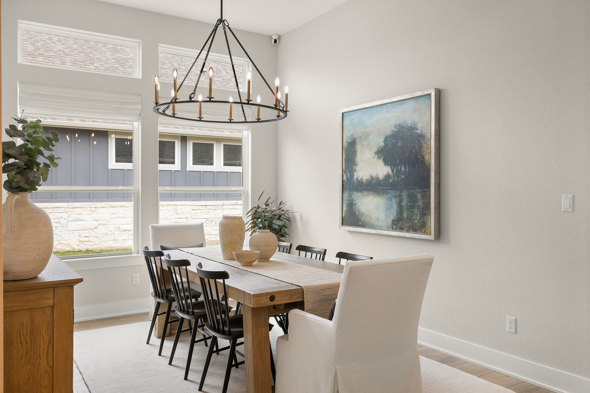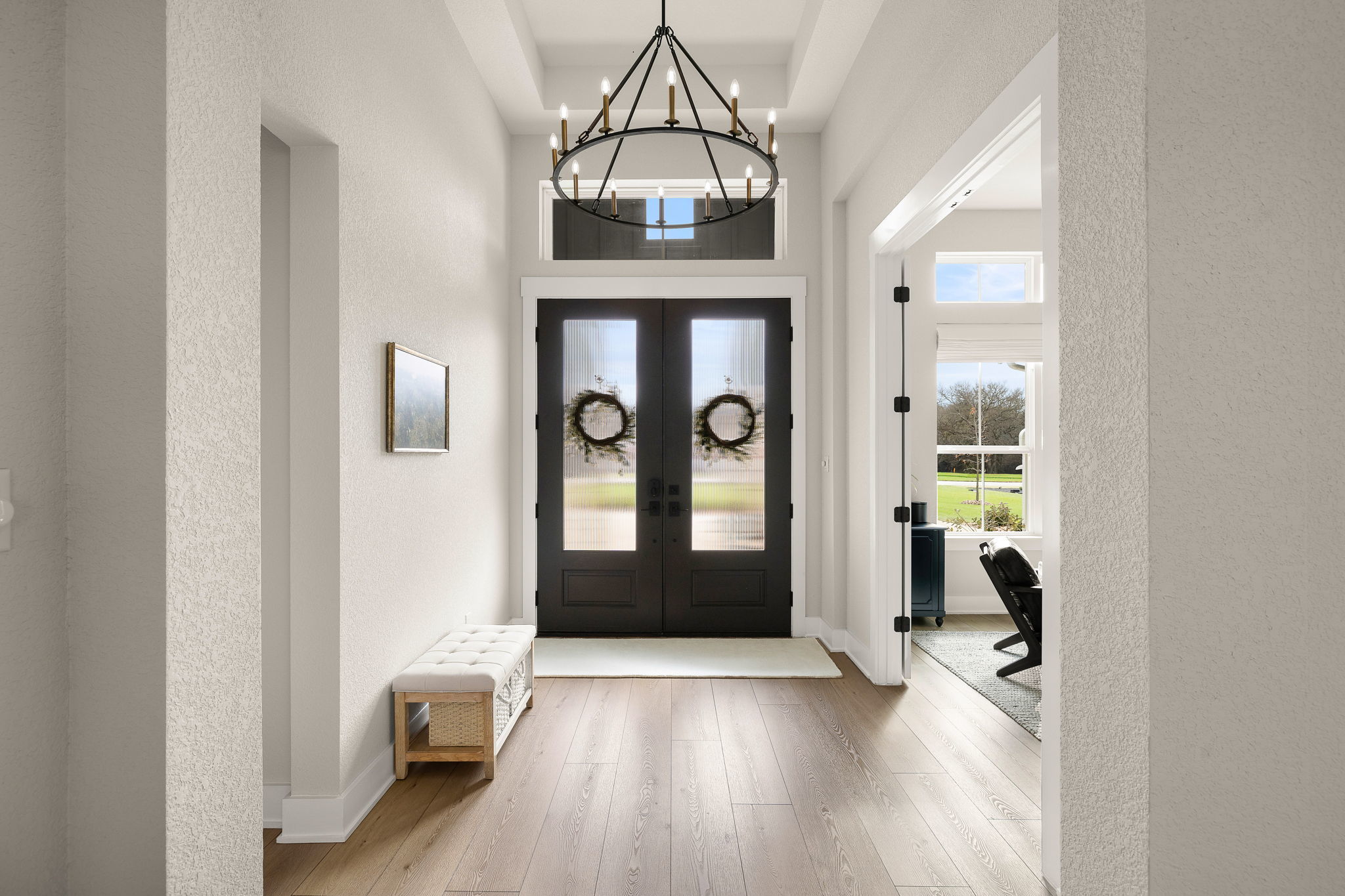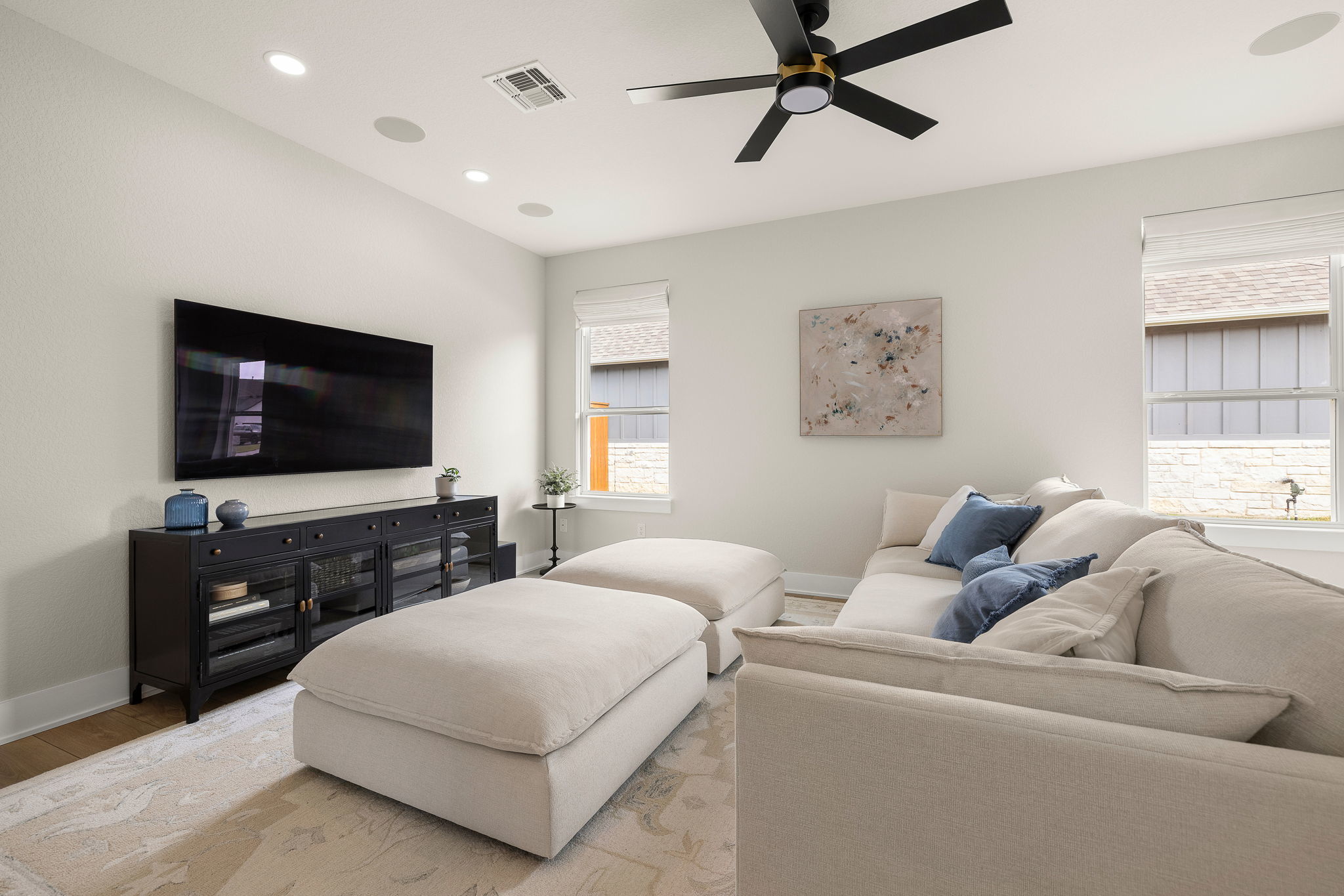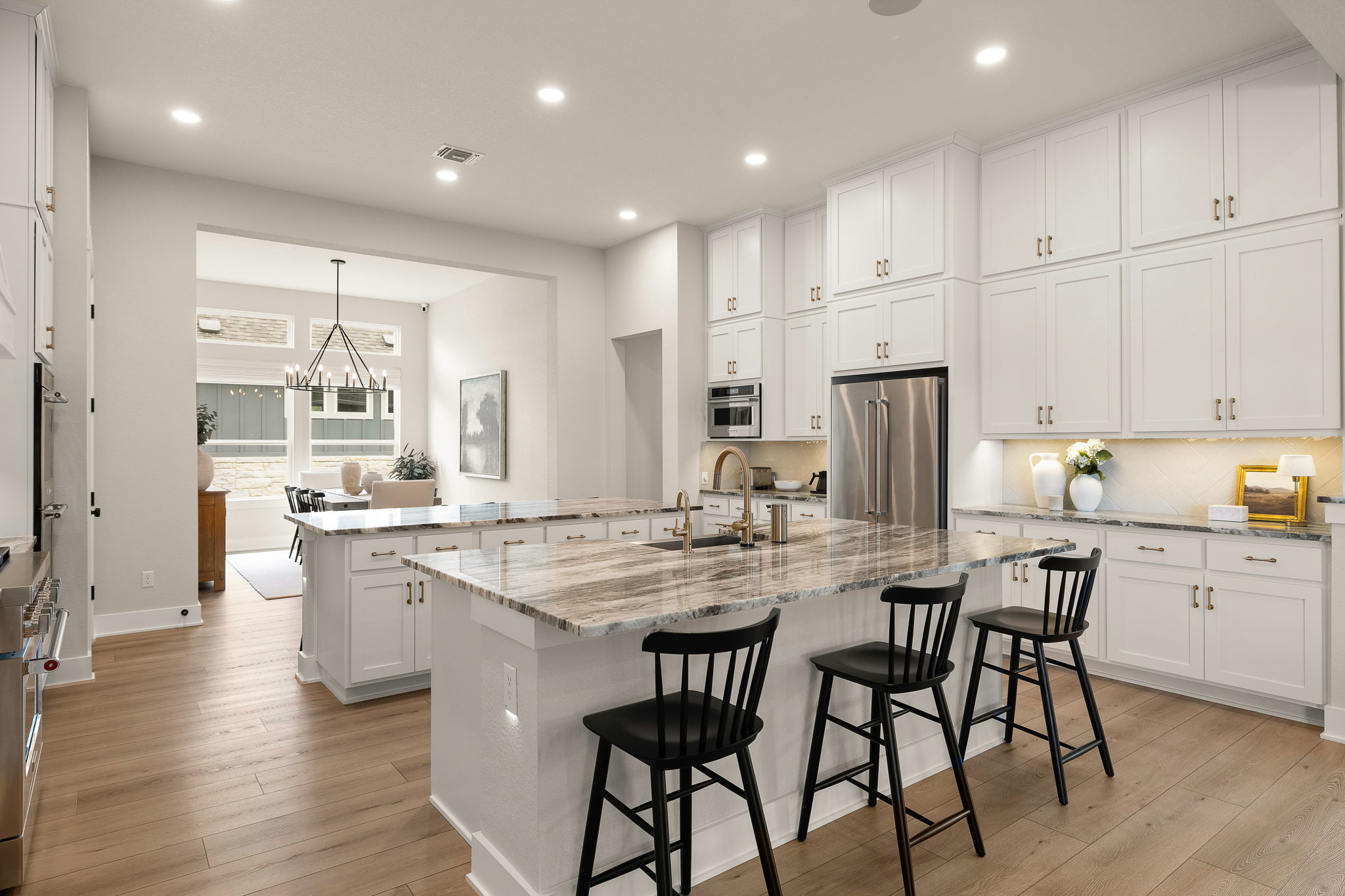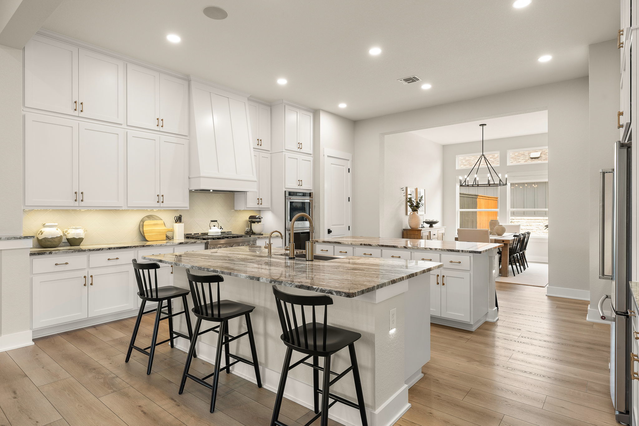 Welcome to this stunning single-story home in Liberty Hill designed for both everyday comfort and effortless entertaining. With four bedrooms, three and a half bathrooms, a dedicated office, and a versatile flex room, this home offers plenty of space and flexibility. At the heart of the home is a bright, open living area with soaring ceilings, a striking fireplace, and large windows that bring in natural light and frame views of the backyard. The kitchen is truly a showstopper, featuring two islands, abundant cabinetry, stainless steel appliances, and generous prep space, making it perfect for hosting gatherings or simply enjoying daily life. The private primary suite offers a peaceful retreat with a spa-like bathroom that includes a soaking tub, walk-in shower, dual vanities, and a spacious walk-in closet. Secondary bedrooms are thoughtfully placed throughout the home to provide privacy and flexibility for guests or family members. Outside and you’ll find a backyard made for Texas living, complete with a beautiful pool, a covered patio ideal for relaxing or dining outdoors, and plenty of yard space to enjoy. This property offers the perfect blend of quiet neighborhood living while still being close to schools, shopping, dining, and commuter routes.
