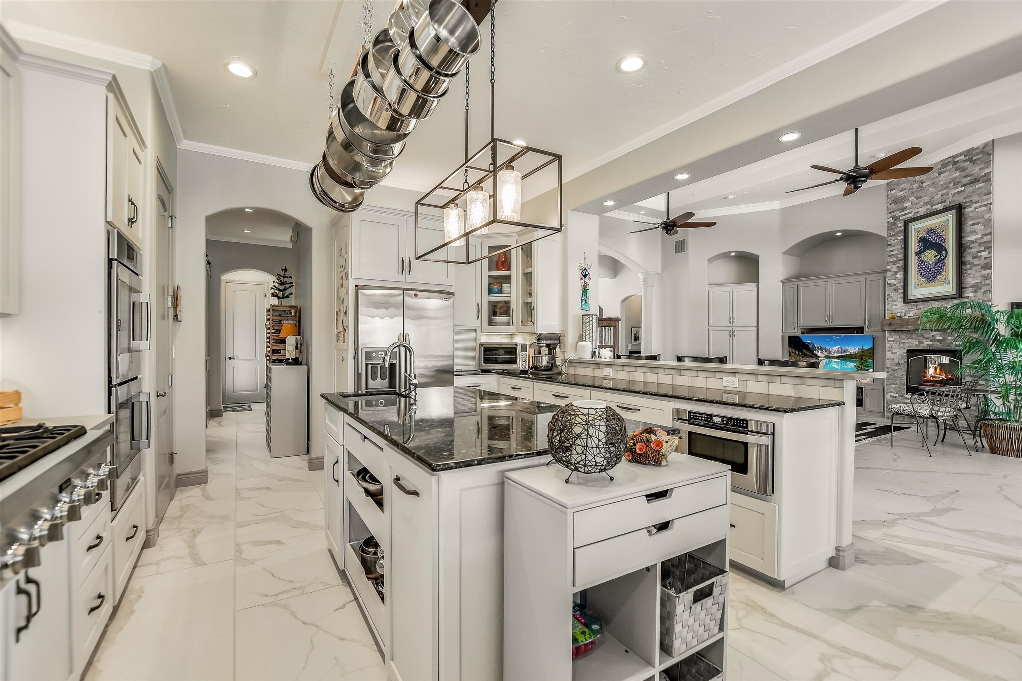 - Dishwasher, Disposal, Built-In Oven, Double Oven, Gas Cooktop, Refrigerator