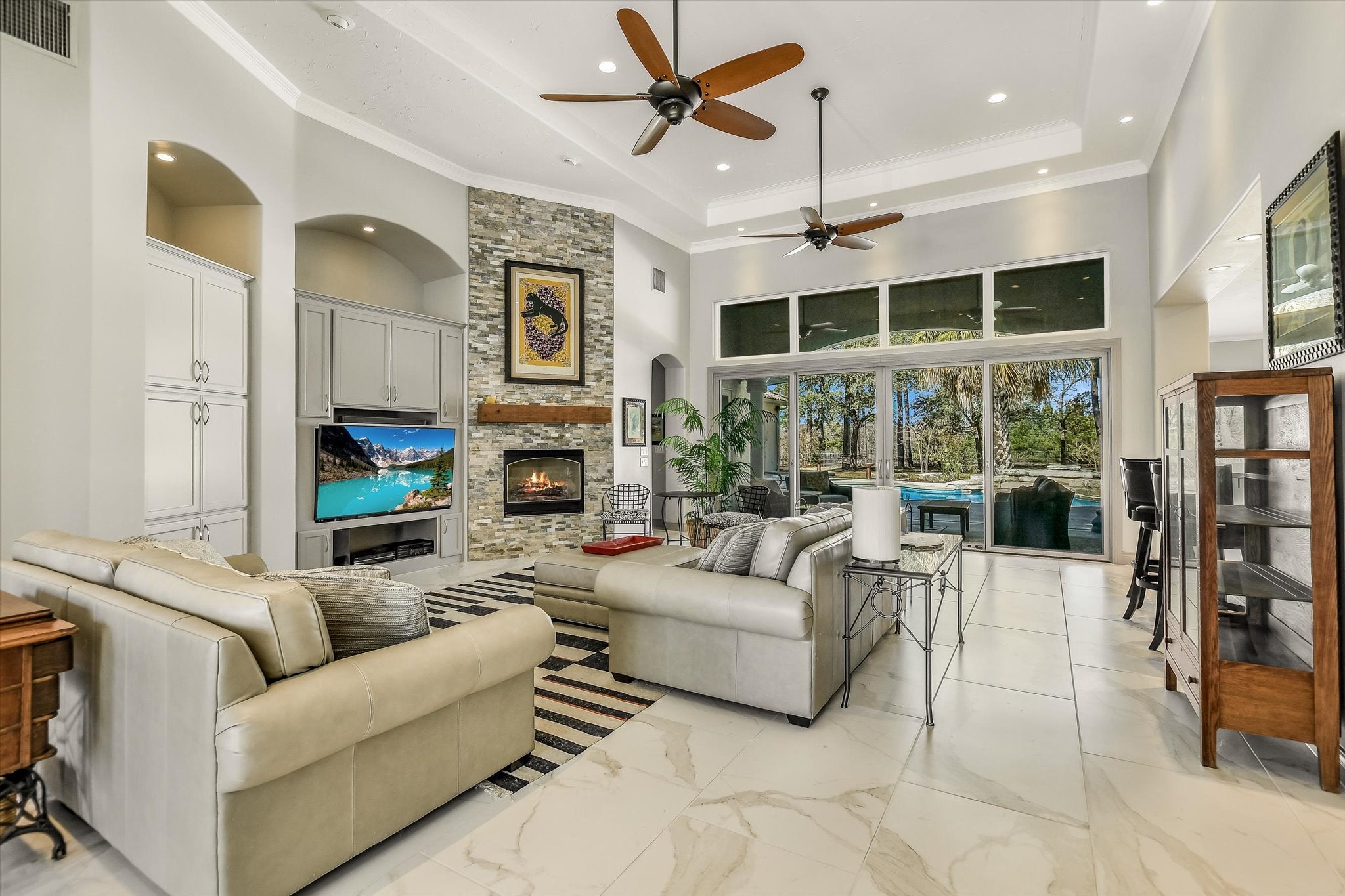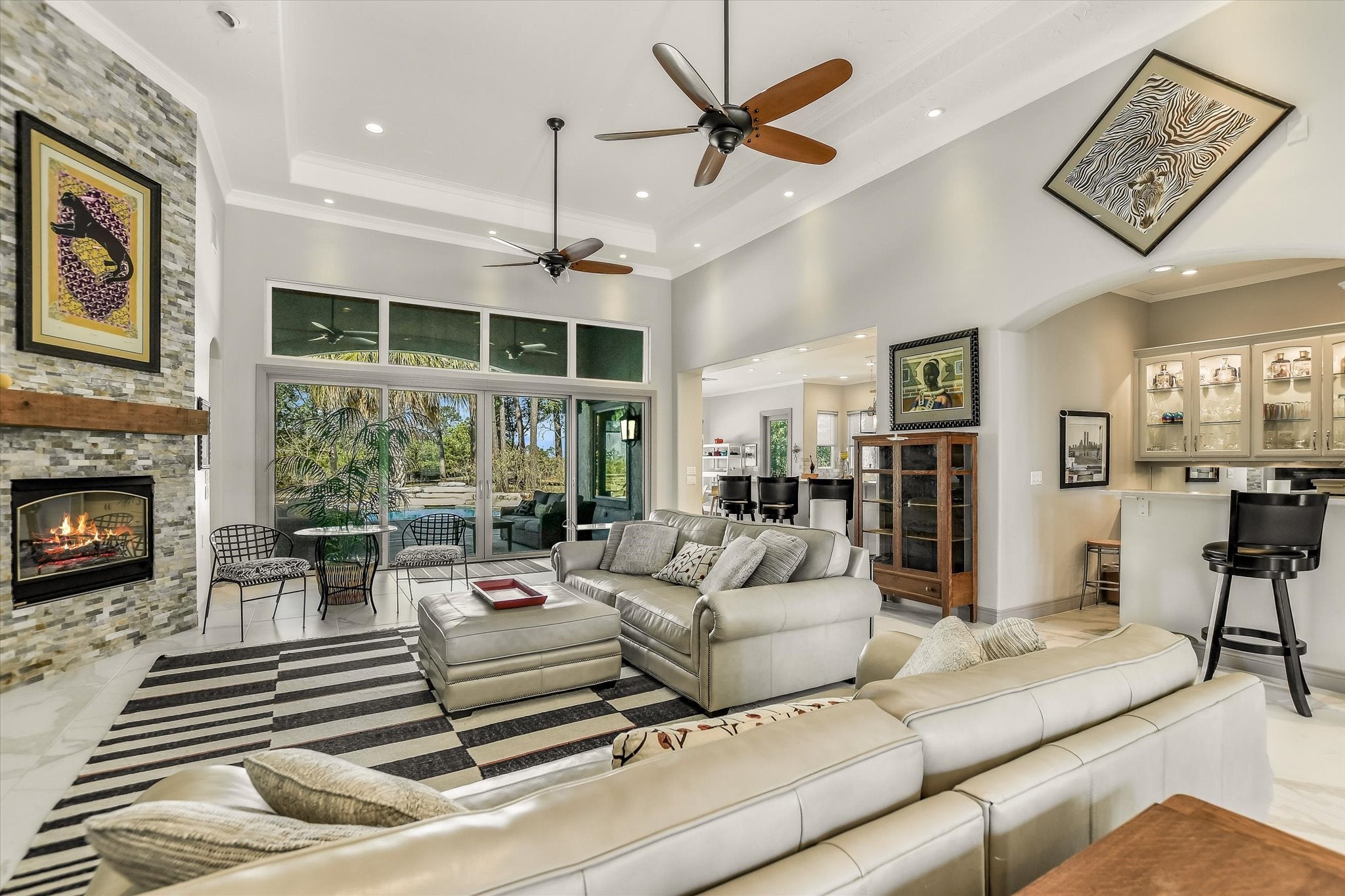 Resort-Style Golf Course Living at its finest. From morning coffee overlooking the fairway to sunset swims in your private pool, this home delivers a lifestyle that feels like a permanent vacation. With luxury finishes, thoughtful updates, and unmatched outdoor amenities, this property stands out as a rare opportunity on the golf course. Experience the perfect blend of luxury, comfort, and resort-style amenities in this beautifully updated 3,582 sq. ft. home, ideally positioned on Hole 13 of a premier golf course. Every detail has been thoughtfully curated to elevate daily living and create an entertainer’s dream environment. Property Highlights 3 full baths + 1 half bath inside, additional half bath in the pool house, primary bedroom with large closet and bath attached (downstairs), 2 large bedrooms with walk-in closets and jack-n-jill type bath attached, 2 dining spaces, private office with option of easily being a 4th bedroom, large laundry on main floor, dedicated golf cart garage with direct course access, detached 3-car garage for vehicles, toys, and storage. Outdoors - Step into your private resort featuring a recently resurfaced and retiled pool, upgraded equipment, a relaxing spa, and an outdoor kitchen. The covered cabana and convenient outdoor bathroom make this space ideal for hosting, lounging, and enjoying year-round outdoor living. Entertainer’s Paradise -Inside, a dedicated wet bar area offers the perfect setting to serve guests their favorite drinks. Whether hosting intimate gatherings or lively celebrations, this home is designed to impress. The home showcases a modern, neutral palette with no carpet, allowing effortless personalization. Updates Include: Recently installed Pella Windows throughout (including window wall), renovated kitchen, updated bathrooms, new hard surface flooring, refreshed laundry room with new stone counter tops, new wine fridge...numerous additional improvements (see full update list in photos)