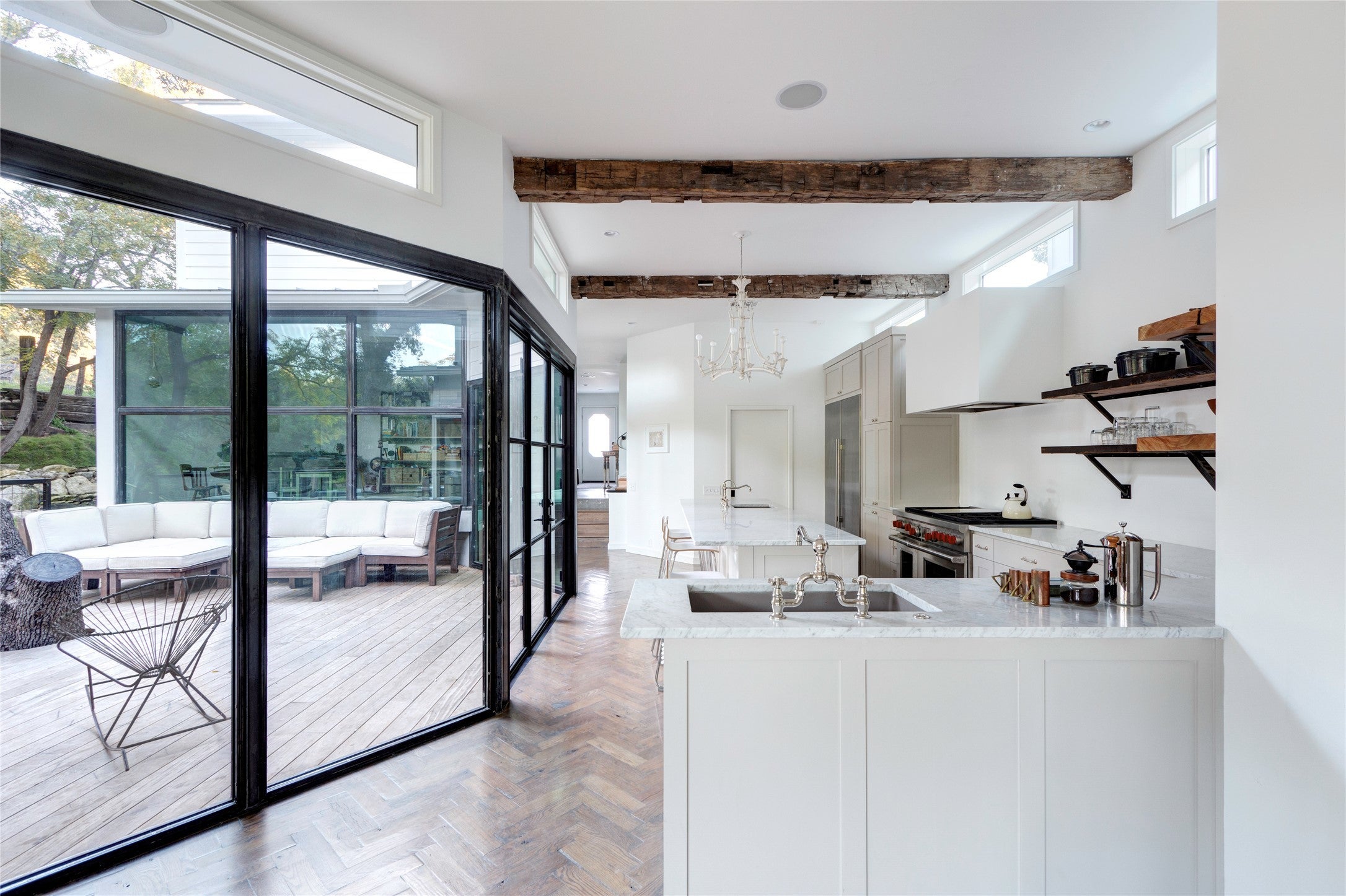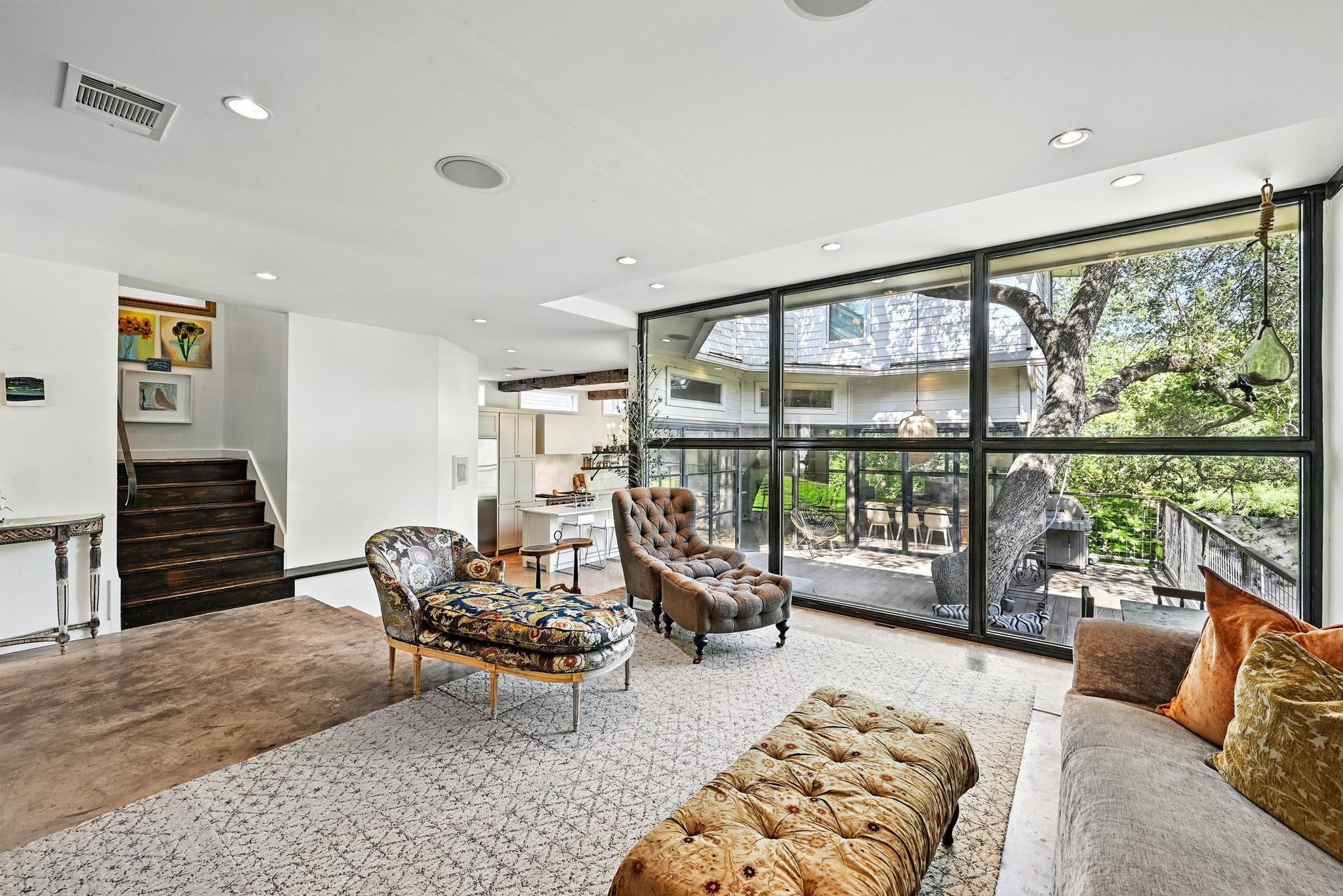 Welcome to 1700 S 6th St., a thoughtfully curated modern farmhouse in one of Austin’s most beloved neighborhoods. Designed and built at the leading edge of the white siding movement, this one-of-a-kind residence stands apart with its authentic materials, architectural vision, and deep attention to detail. Featured in Houzz, Crate & Barrel, Loft Home, and Spectacular Women of Architecture, this home is as much a creative expression as it is a functional, family-ready retreat. Soaring steel-framed windows span the back of the home, drawing natural light and a lush treehouse ambiance into the main living areas and primary suite. In the kitchen, reclaimed open shelving crafted from Spaghetti Warehouse beams pays homage to old Austin, while Sub-Zero column refrigeration, a Wolf 48” dual-fuel range, and reverse osmosis drinking water elevate everyday living. Entertain with ease thanks to folding Durango doors that open the kitchen and living room to a shaded outdoor patio anchored by a live oak and surrounded by an edible garden—including Meyer lemon, olive, bay laurel, asparagus, and more—on a fully automated Rachio irrigation system. Inside, you’ll find white oak herringbone floors, a Rumford wood-burning fireplace with a Colorado River-recovered cypress mantle, and layered design elements throughout. The primary bath features a vintage European workbench-turnedvanity, a soaking tub, and a spa-style shower with three showerheads. The lower-level music studio includes a murphy bed for added flexibility, while a whole-home sound system, ADT security, and wired high-speed internet make the home smart and secure. Plans for a pool convey, along with a custom-built media cabinet and split HVAC systems in the garage and studio. This is more than a home—it’s a showcase of soul, sustainability, and sophisticated Austin living. Tax and assessed values are estimates for illustration purposes only. All figures should be independently verified.