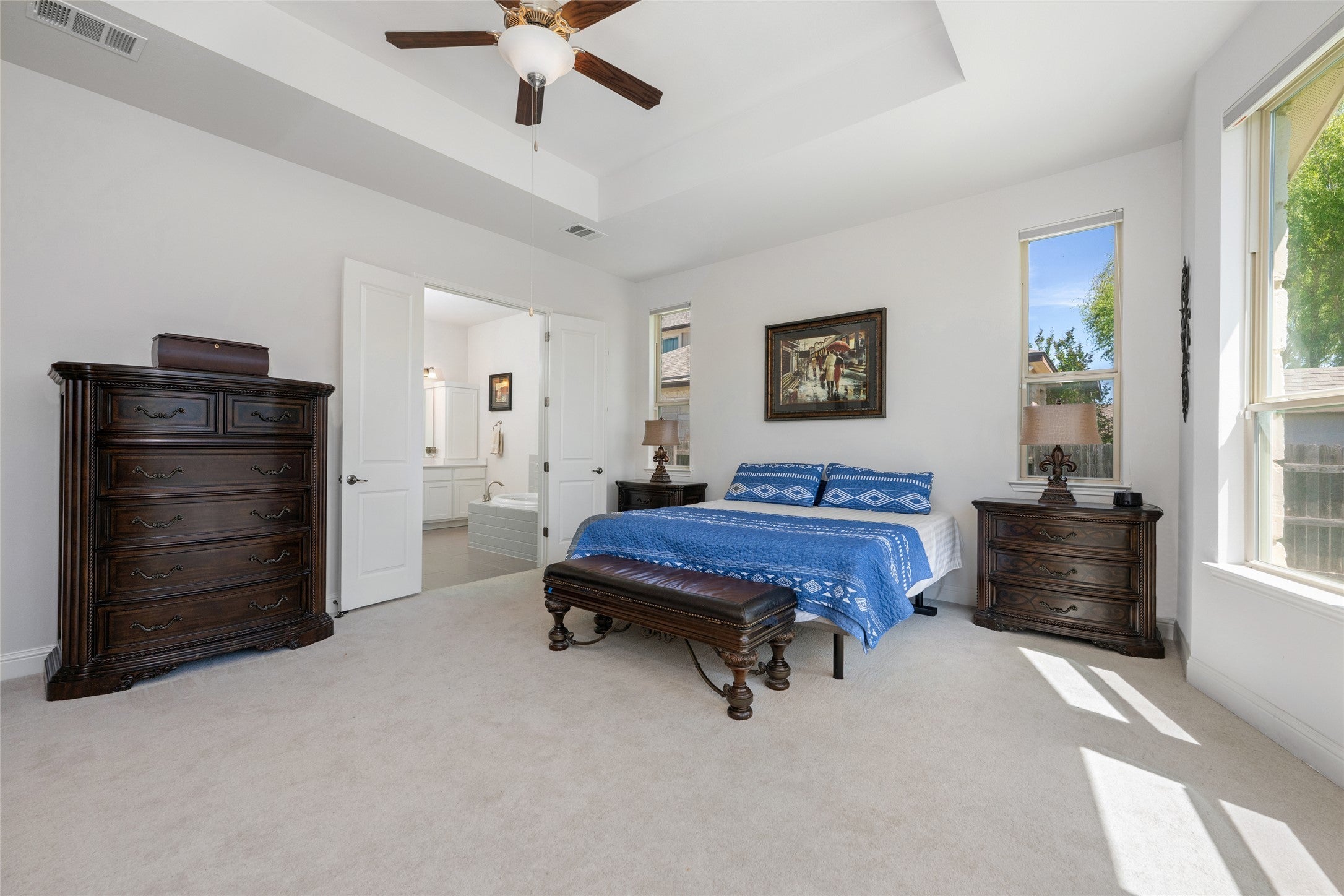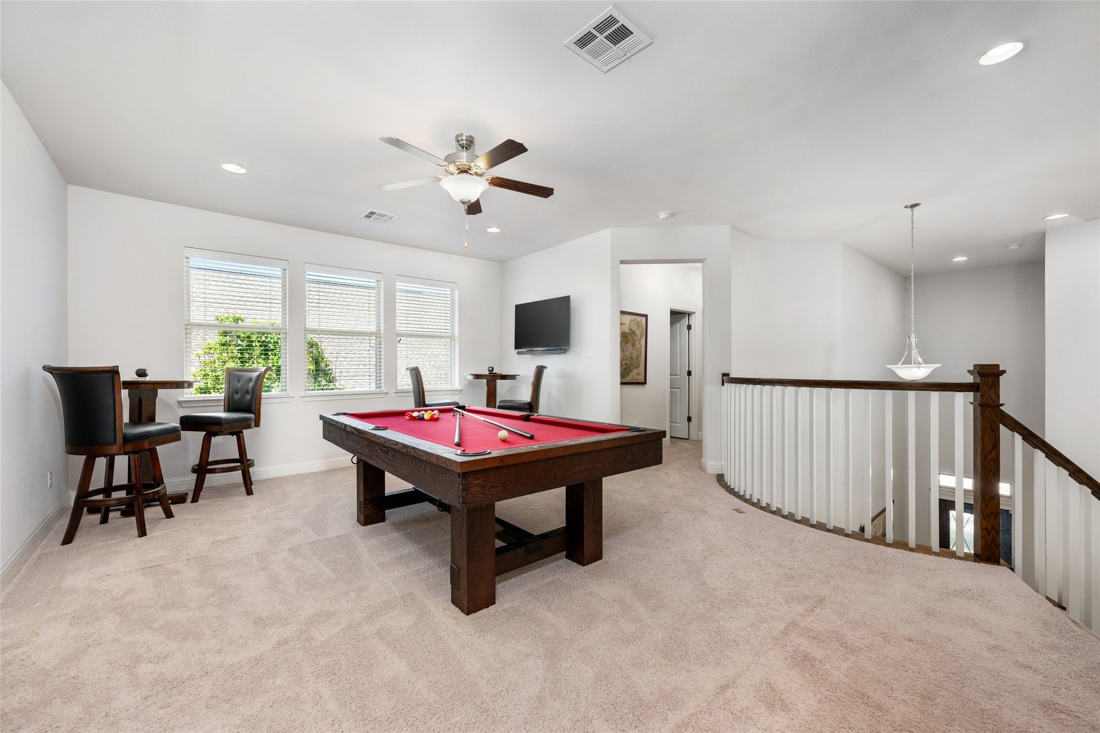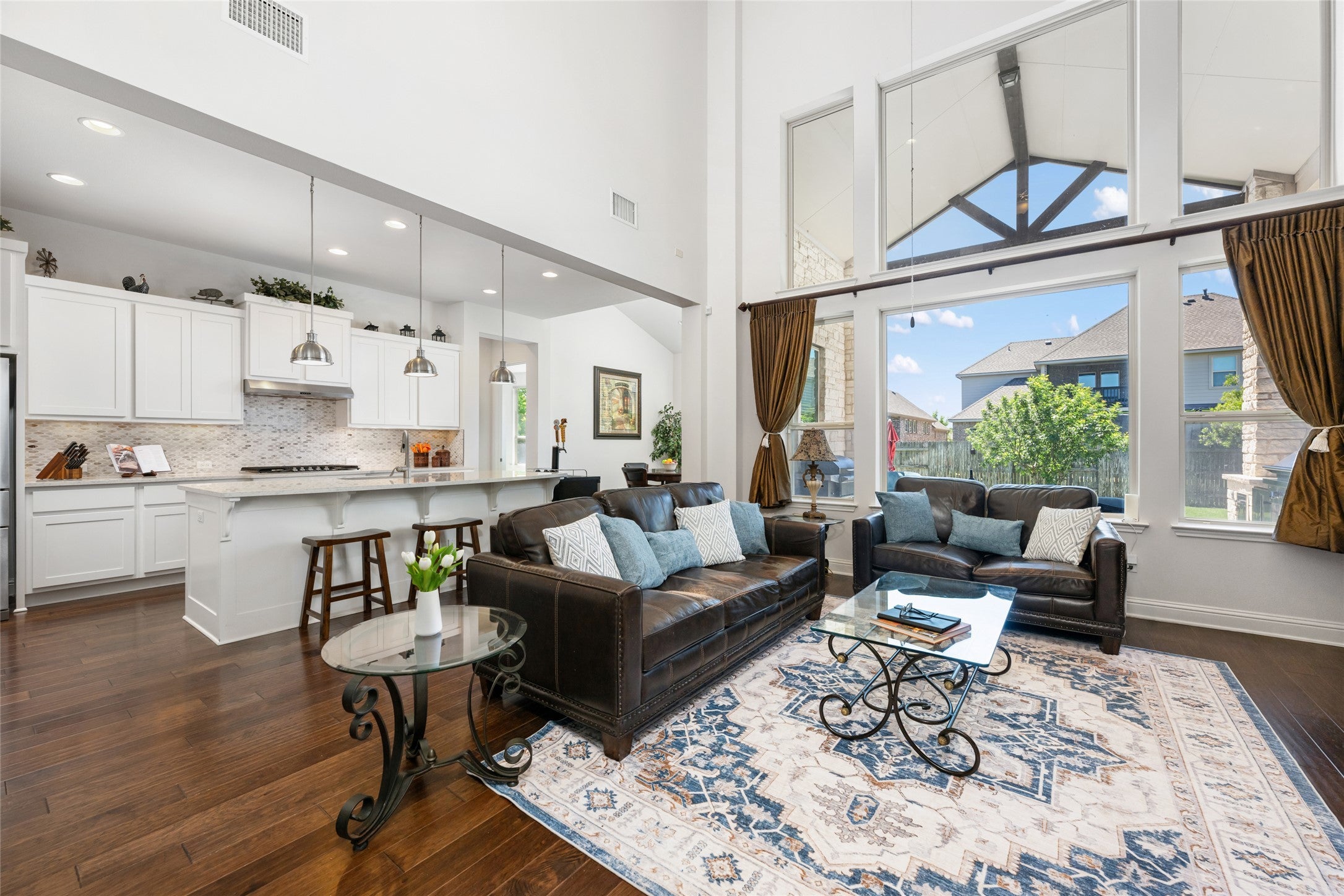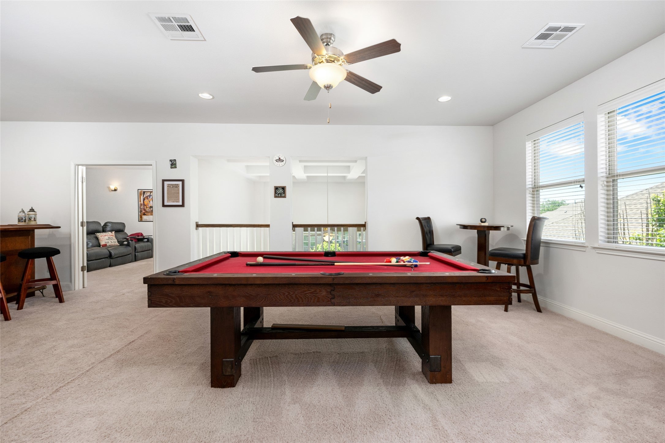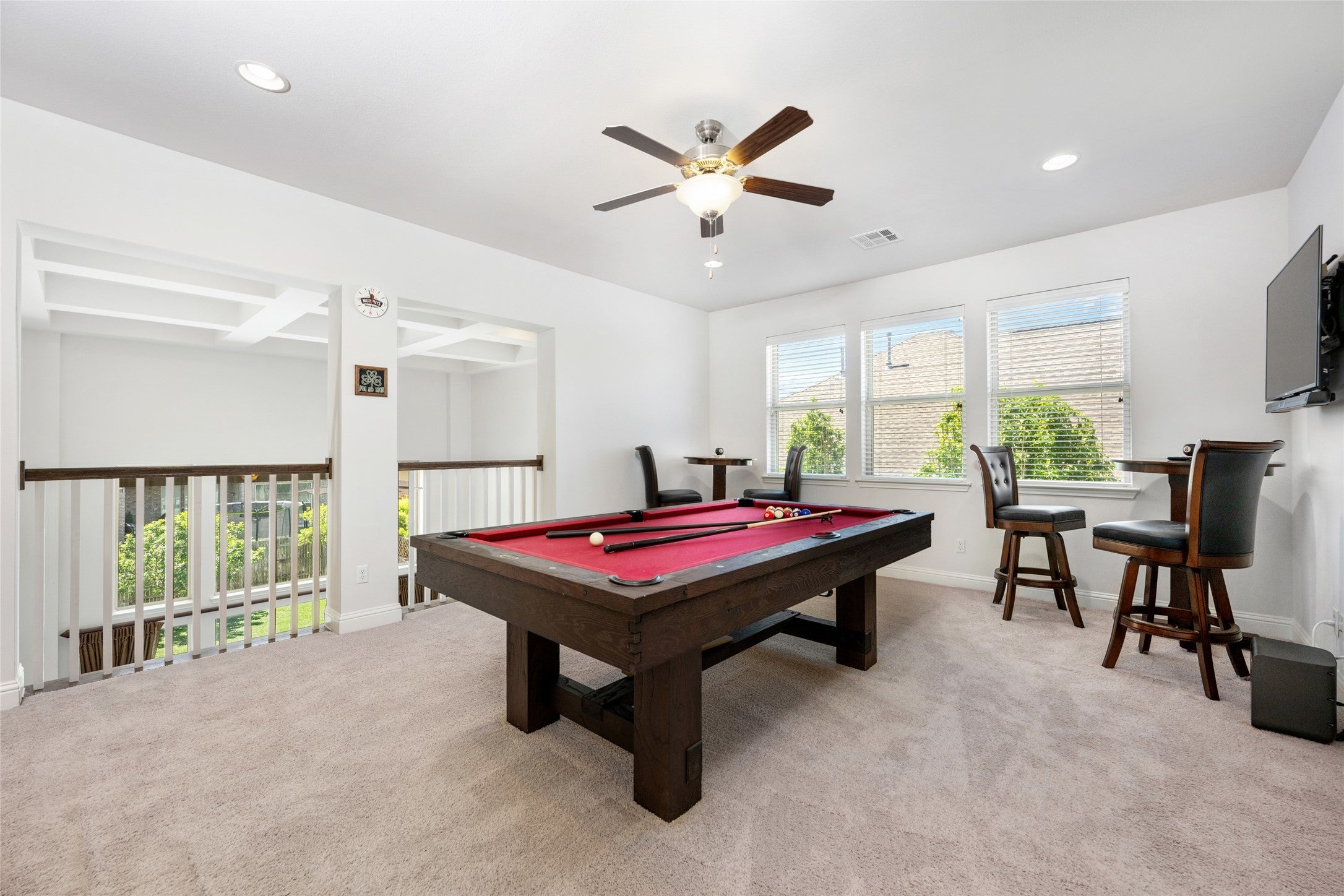Better than new—and designed for the way people actually live—this expansive semi-custom CalAtlantic Homes home in Palmera Ridge stands out with one of the largest floor plans in the neighborhood, enhanced by over $50,000 in thoughtful post-build upgrades already completed for you. With over 4,500 square feet, 5 bedrooms, 4.5 baths, a convenient downstairs home office, and a highly functional layout featuring both the primary suite and a guest suite on the main level, this home delivers the flexibility today’s buyers are searching for—but rarely find executed this well. From the moment you enter, soaring ceilings and a dramatic curved staircase create a strong first impression, leading into a modern open layout where the kitchen, living, and dining areas connect seamlessly. A wall of windows fills the space with natural light, anchored by a sleek gas fireplace—designed for both everyday living and effortless entertaining. Upstairs is where this home truly separates itself—featuring a spacious game room, built-in bar, and a fully equipped media room with projector, screen, and premium surround sound. This isn’t just additional space—it’s a true entertainment experience. Additional highlights include custom window treatments throughout, a 3-car garage, custom drop zone cabinetry, flex/storage space, and an oversized laundry room. Situated on a rare 70’ wide lot (approx. 9,450 sq ft), the backyard offers both space and flexibility, complete with a covered patio, custom outdoor kitchen, and ample room to design and build a future pool. Located within Palmera Ridge, residents enjoy access to community amenities, multiple pools, parks, trails, and convenient proximity to nearby schools, shopping, and major roadways (buyer to verify). Homes offering this combination of size, layout, upgrades, and lot width are difficult to find—plan to tour early.