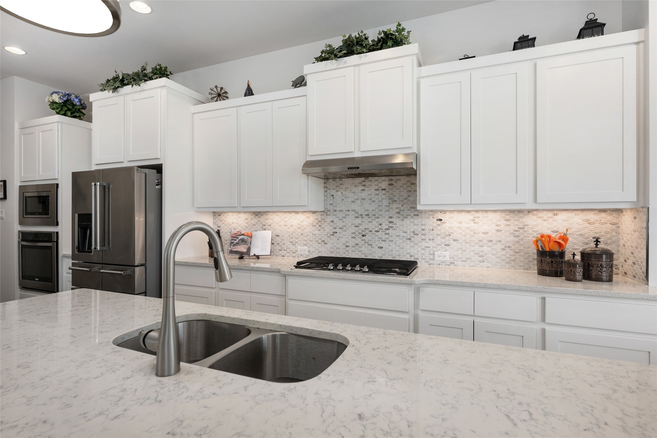 - Dishwasher, Gas Cooktop, Disposal, Microwave, Stainless Steel Appliance(s), Tankless Water Heater, Built-In Oven, Plumbed For Ice Maker, Vented Exhaust Fan