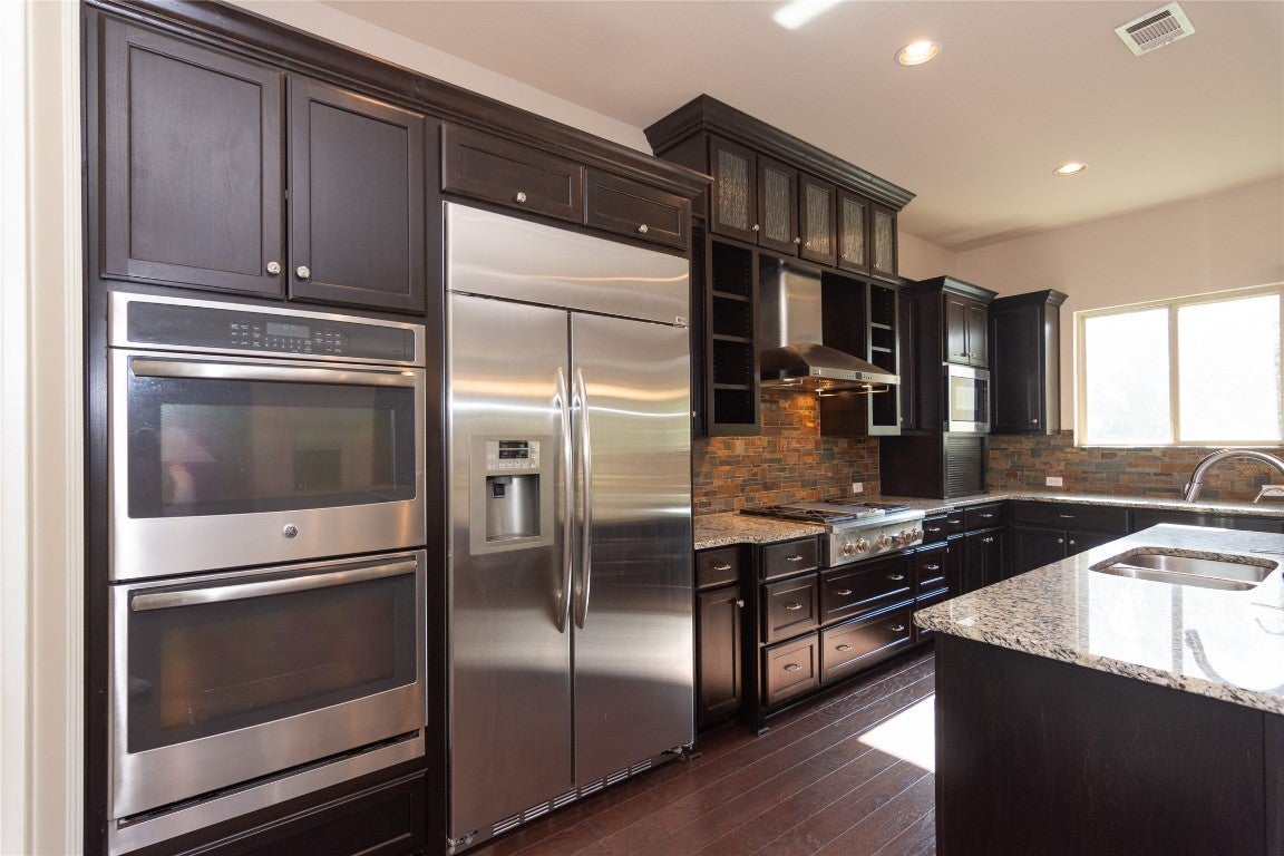- Double Oven, Dishwasher, Exhaust Fan, Free-Standing Gas Range, Disposal, Gas Range, Gas Water Heater, Microwave, Plumbed For Ice Maker, Refrigerator, Water Softener Owned, Built-In Electric Oven, Vented Exhaust Fan, Wine Refrigerator