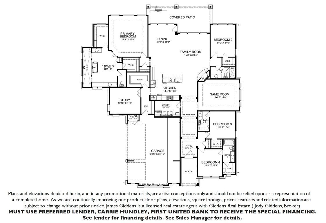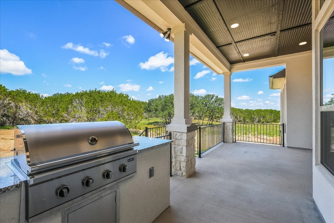 New construction home in Clearwater Ranch. NEW 5% flex incentive to use on 3-2-1 buy down, 2-1 buy down, closing costs or price reduction. You could afford up to $125,000 more home than if you bought a resale—without raising your monthly payment. That means more space, more upgrades, and more of what you love. See sales manager for details and incentives. 1 acre, single story, 4 bed/4 bath, study, game room, 3-car garage home. SIENA III floor plan with stunning entry, 4' wide iron front door. Kitchen with high-end JennAir appliances, double convection ovens, gas cooktop, microwave drawer and dishwasher. Quartz-topped waterfall island with undermount sink, push button disposal, and built-in soap dispenser; upper cabinets to 10' with glass fronts and puck lighting. Great room with corner direct vent fireplace, large rear windows. Extended outdoor patio with built-in kitchen. Utility room with sink, space for extra freezer w/ice maker connection. Primary bedroom with en-suite bath, double vanities, large freestanding tub, walk-through shower and two walk-in closets. Extended size game room wired for surround sound, two secondary bedrooms with own en-suite.