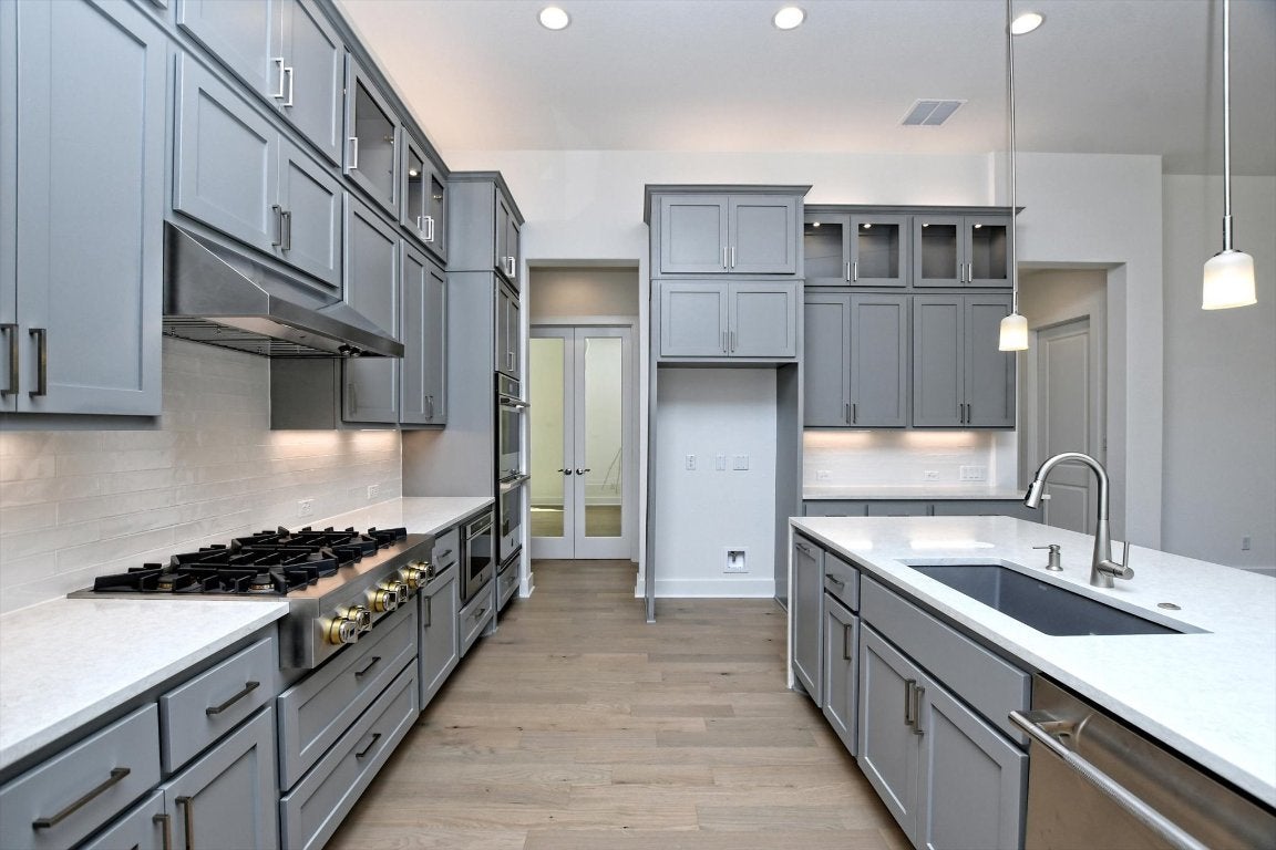 - Built-In Gas Oven, Dishwasher, Microwave, Propane Cooktop, Plumbed For Ice Maker, Double Oven