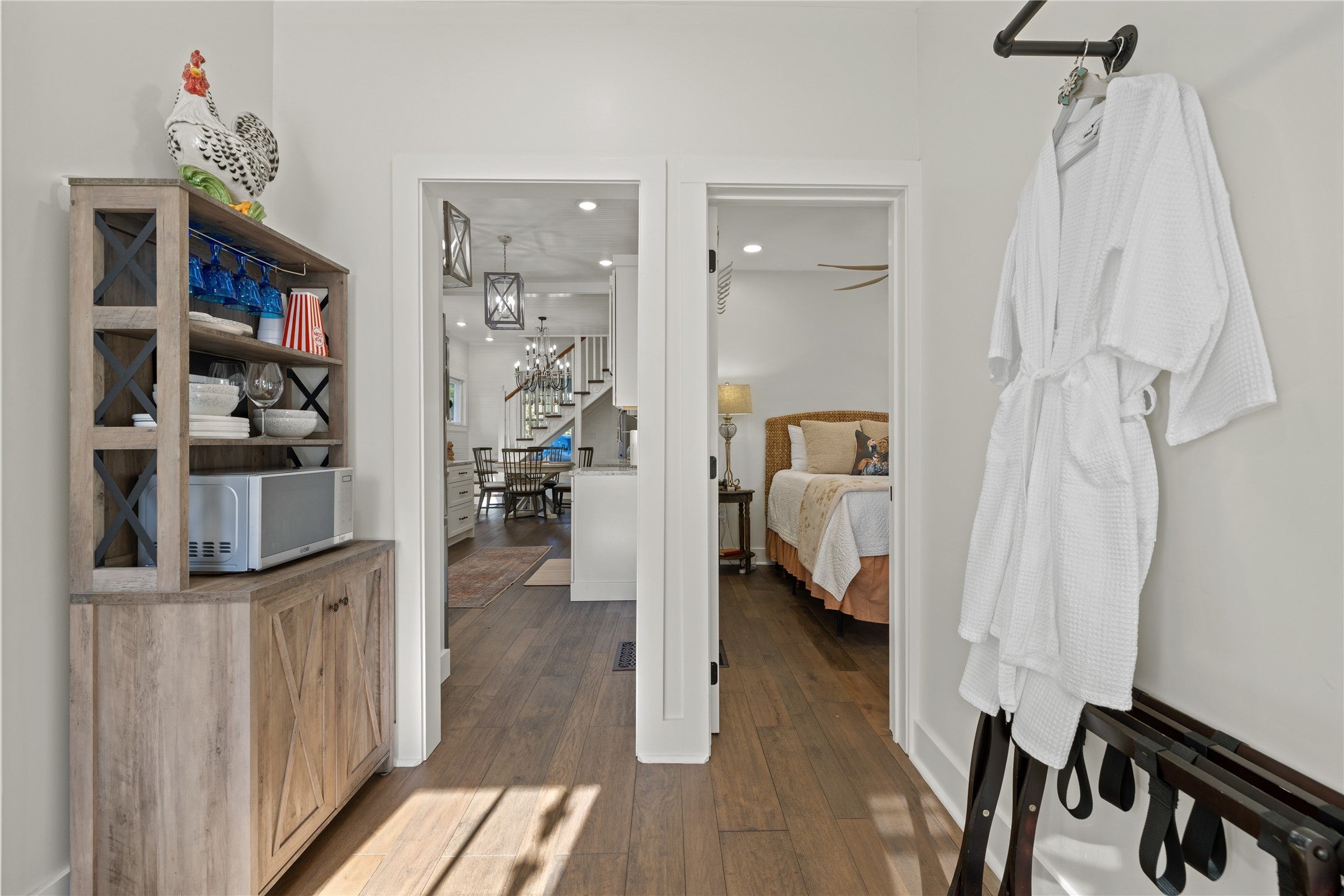 Perfectly nestled in Fredericksburg’s Historic District with 2 STR Permits! Located in the heart of Fredericksburg’s Historic District and just a short stroll from Main Street, this exceptional multi-home property seamlessly blends historic charm with modern comfort. Following a complete renovation of the front home (2023–2025) and updates to the back home, this turnkey retreat is currently used as a B&B short-term-rental. If you're wanting a place of your own, you can use one home for personal use and the other for guests. The possibilities are endless. The front home features 3 bedrooms, 3 gorgeous bathrooms with frameless glass showers, a cozy sitting room, dining area with unique chandelier, gas fireplace, and a beautifully well-equipped kitchen with gas cooktop. The back guest home offers a fun antique filled 2 bedrooms, 2.5 bathrooms, two inviting sitting rooms with TVs, a full kitchen, and an additional kitchenette, perfect for gatherings or extended stays. Outdoor spaces include a spacious covered porch, BBQ pit, hot tub, and comfortable sitting area, ideal for relaxing and entertaining just minutes from popular restaurants, shopping, galleries, tasting rooms, and museums. Blending Fredericksburg’s rich German heritage with thoughtful updates throughout, this property stands out as a premier offering in one of the most sought-after locations in town. Property has 2 permits and rated 5Star on both VRBO and AirBnB. Sold turnkey, excluding a few select personal items.
