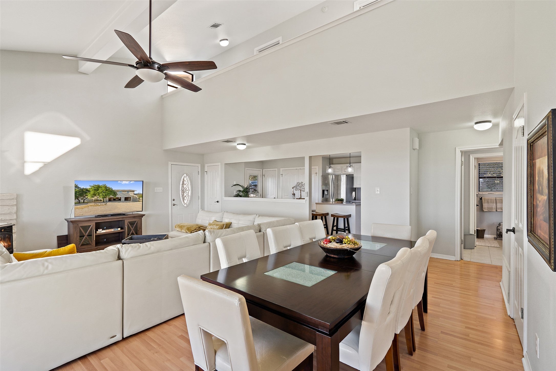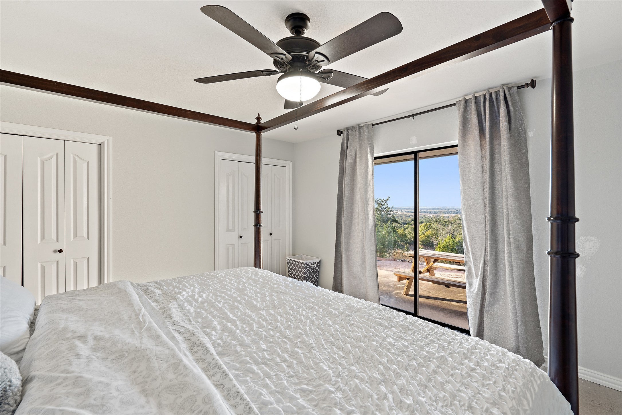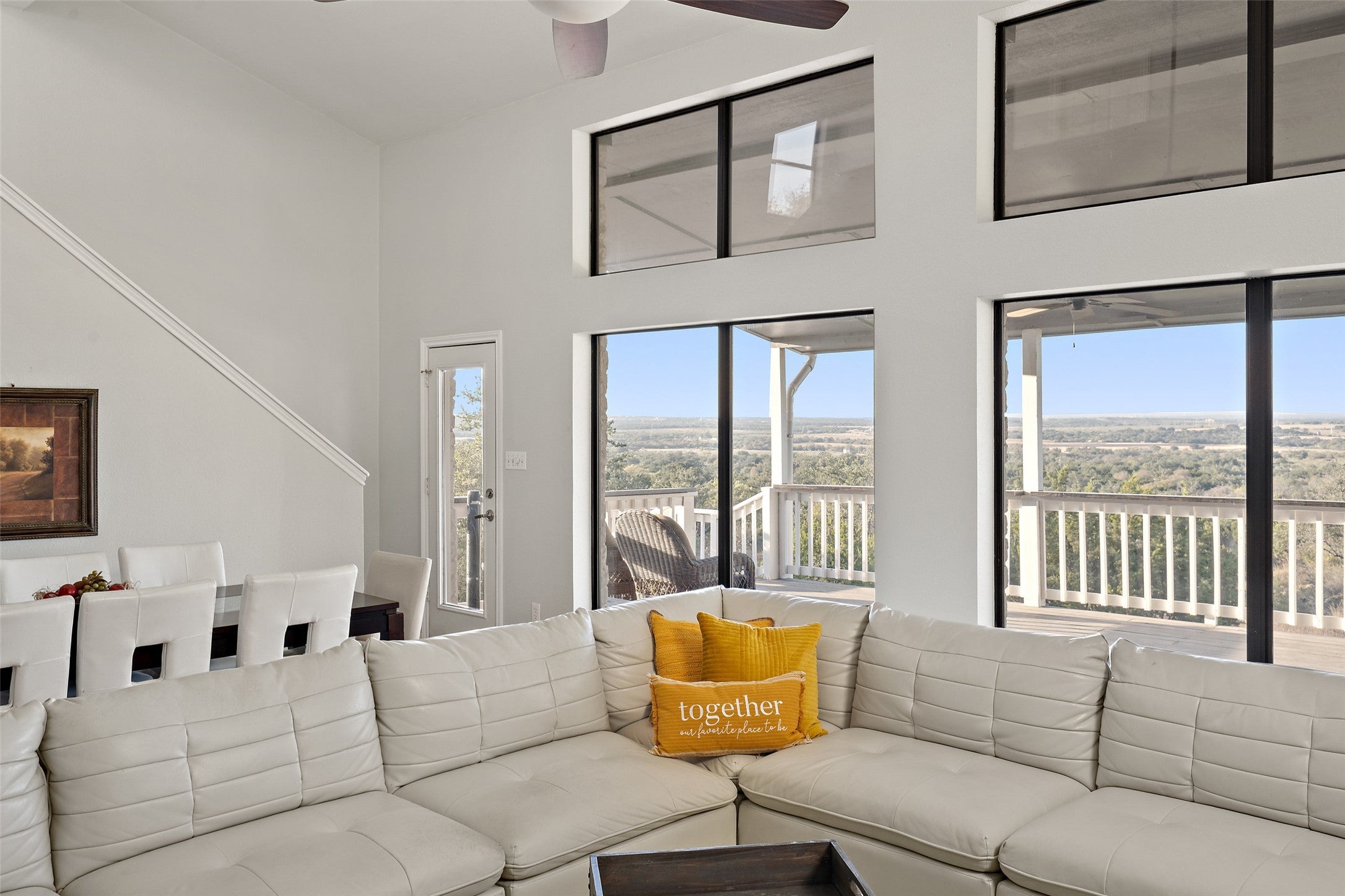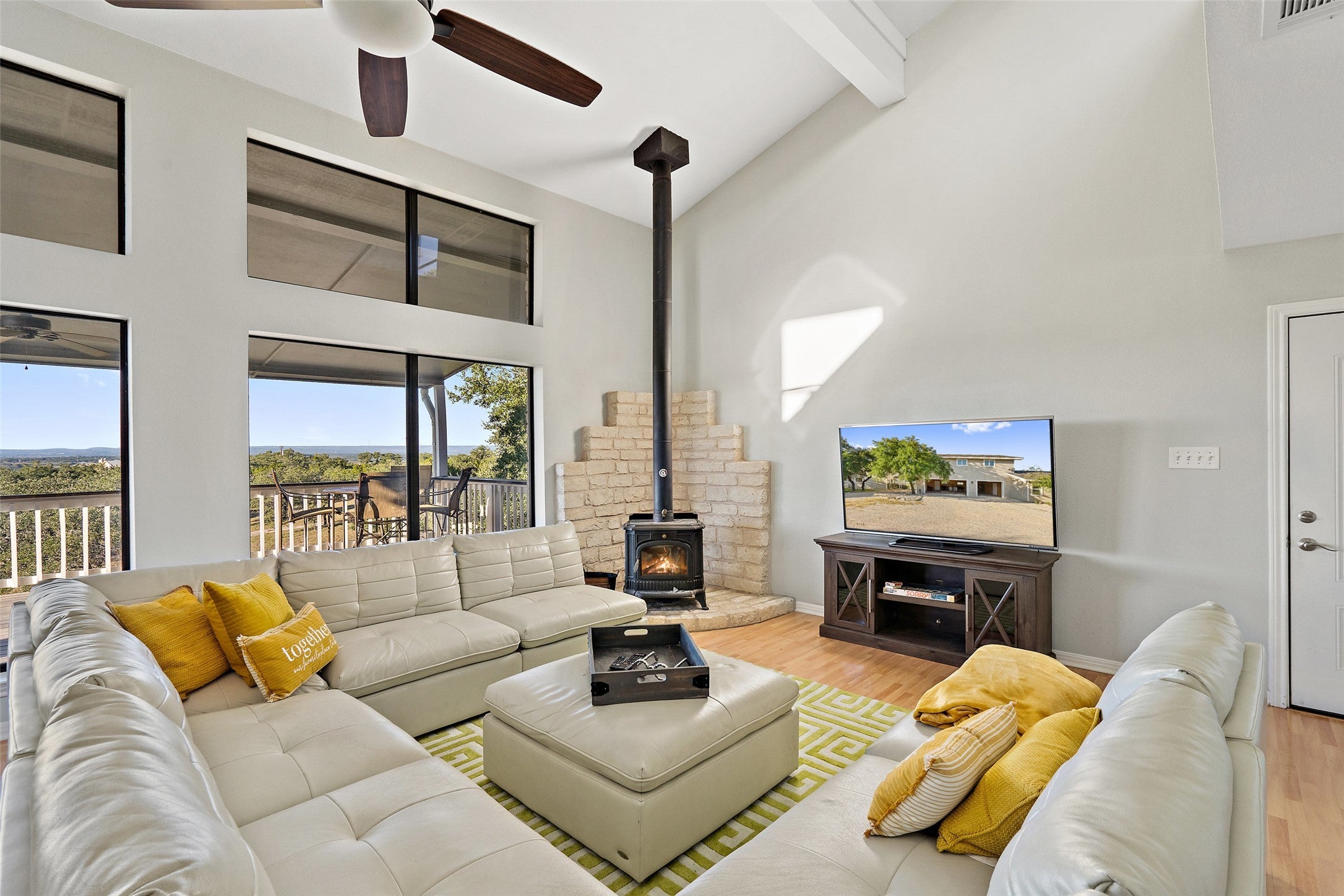 Rare 5-acre Hill Country lease offering two homes on one property, ideal for extended families, multigenerational living, or those needing additional guest space. The main residence features vaulted ceilings and panoramic windows showcasing beautiful Hill Country views. The layout includes a primary suite on the main level and two upstairs bedrooms with a shared Jack-and-Jill bath, accommodating up to six residents. A second 2-bedroom, 2-bath home located just steps away through the attached garage provides additional living space for guests, family members, or a private home office. Outdoor living is highlighted by a large covered back deck perfect for dining and entertaining while enjoying the surrounding Hill Country landscape. The property includes a three-car garage with a spacious game room above featuring a pool table, ping pong table, and large TV. Light restrictions allow up to one horse per acre, and there is ample space for RV or trailer parking. Conveniently located approximately 15 miles from Bee Cave and Marble Falls, with easy access to local wineries, breweries, distilleries, and nearby Lake Travis recreation.