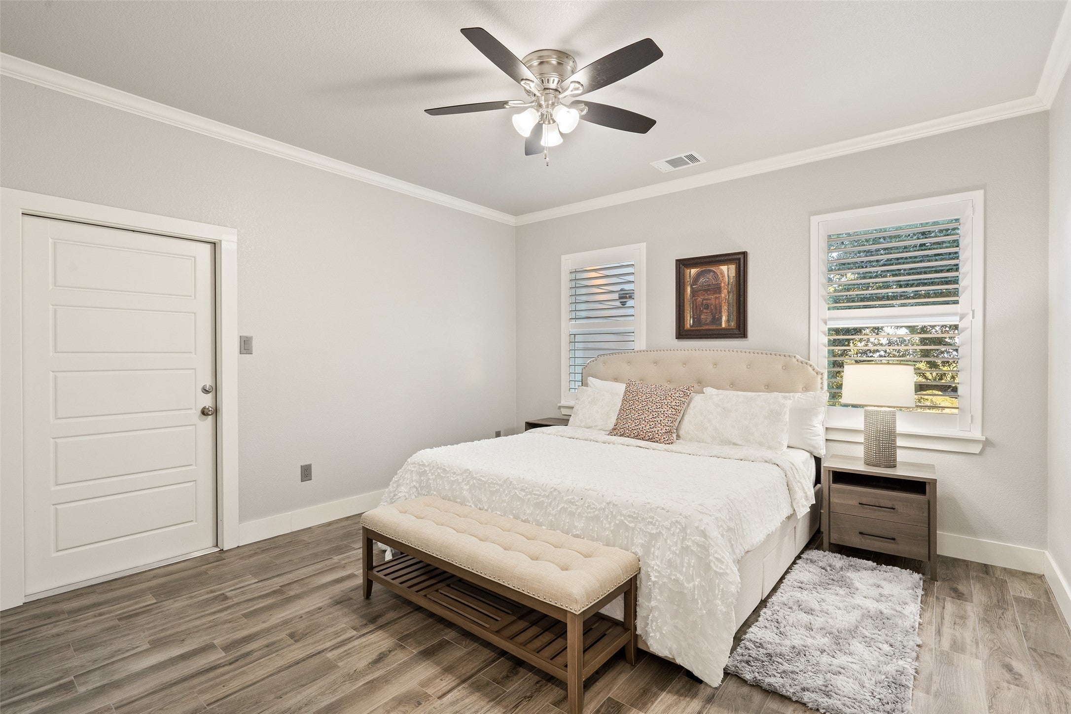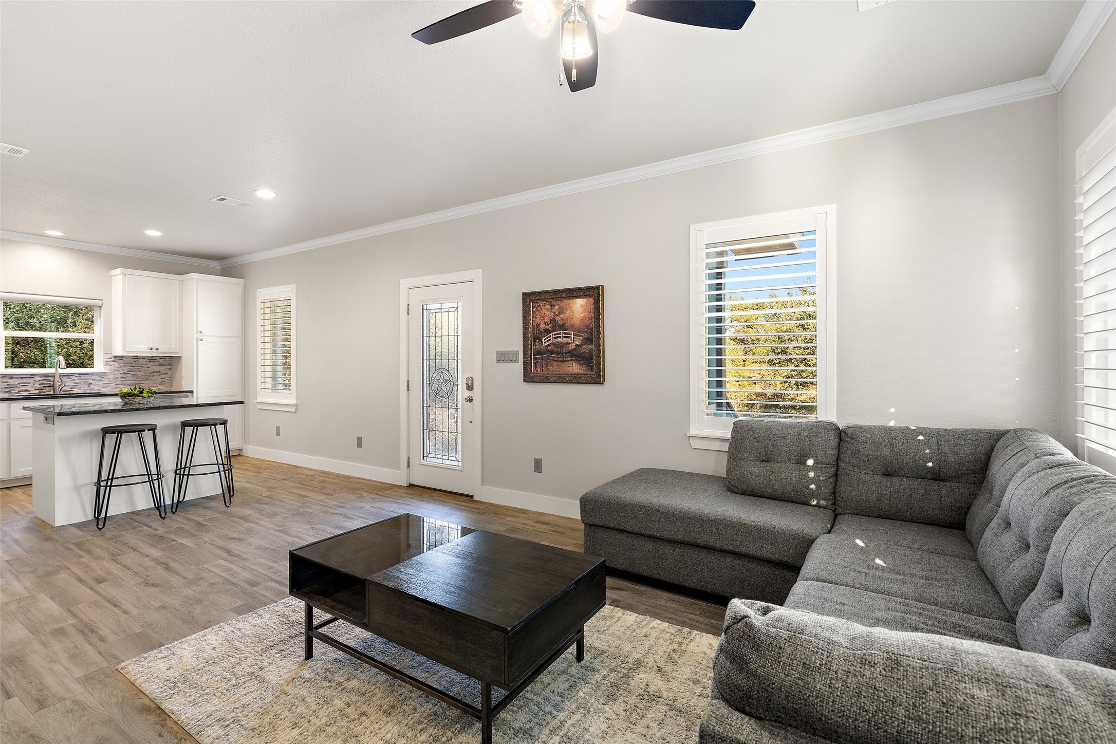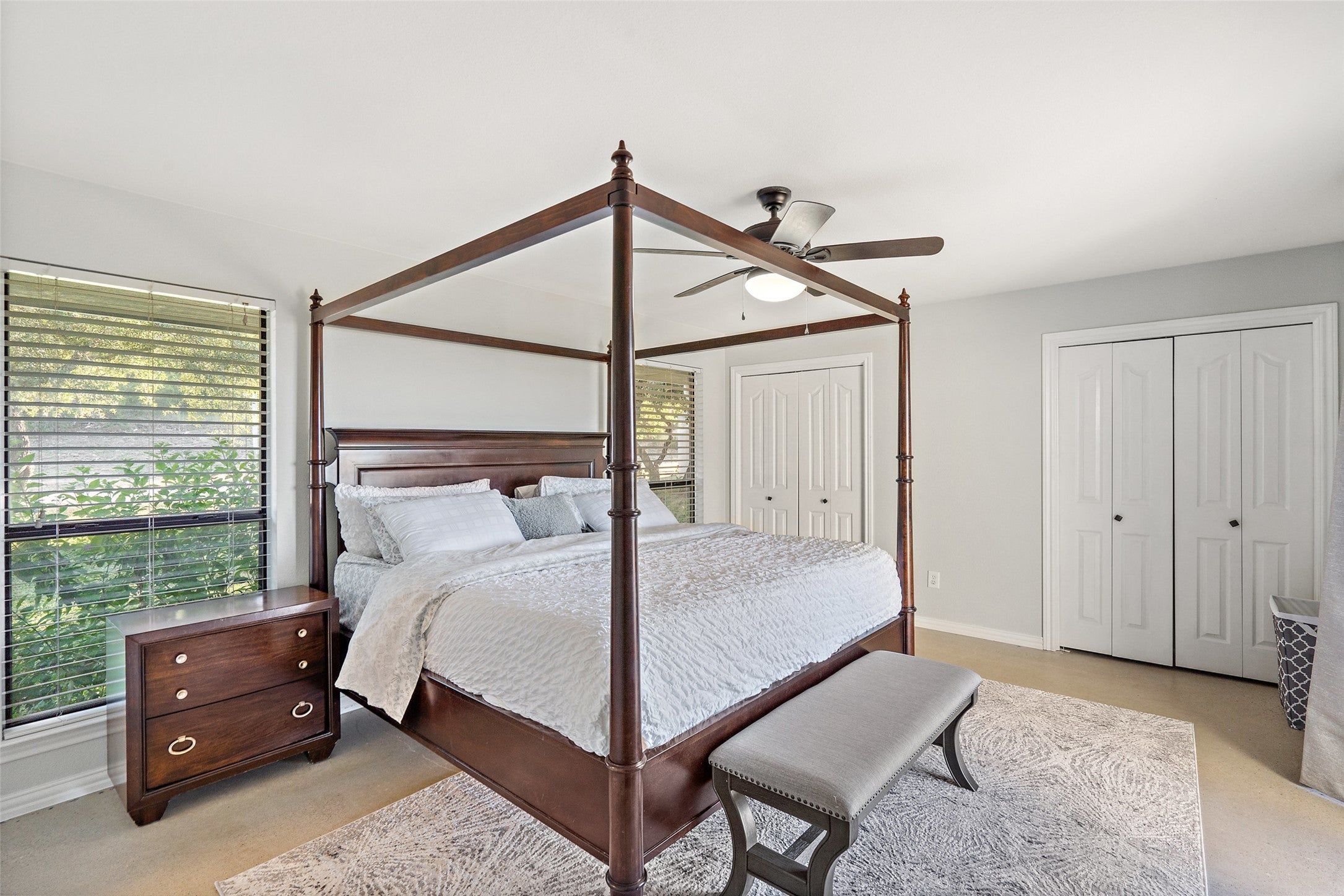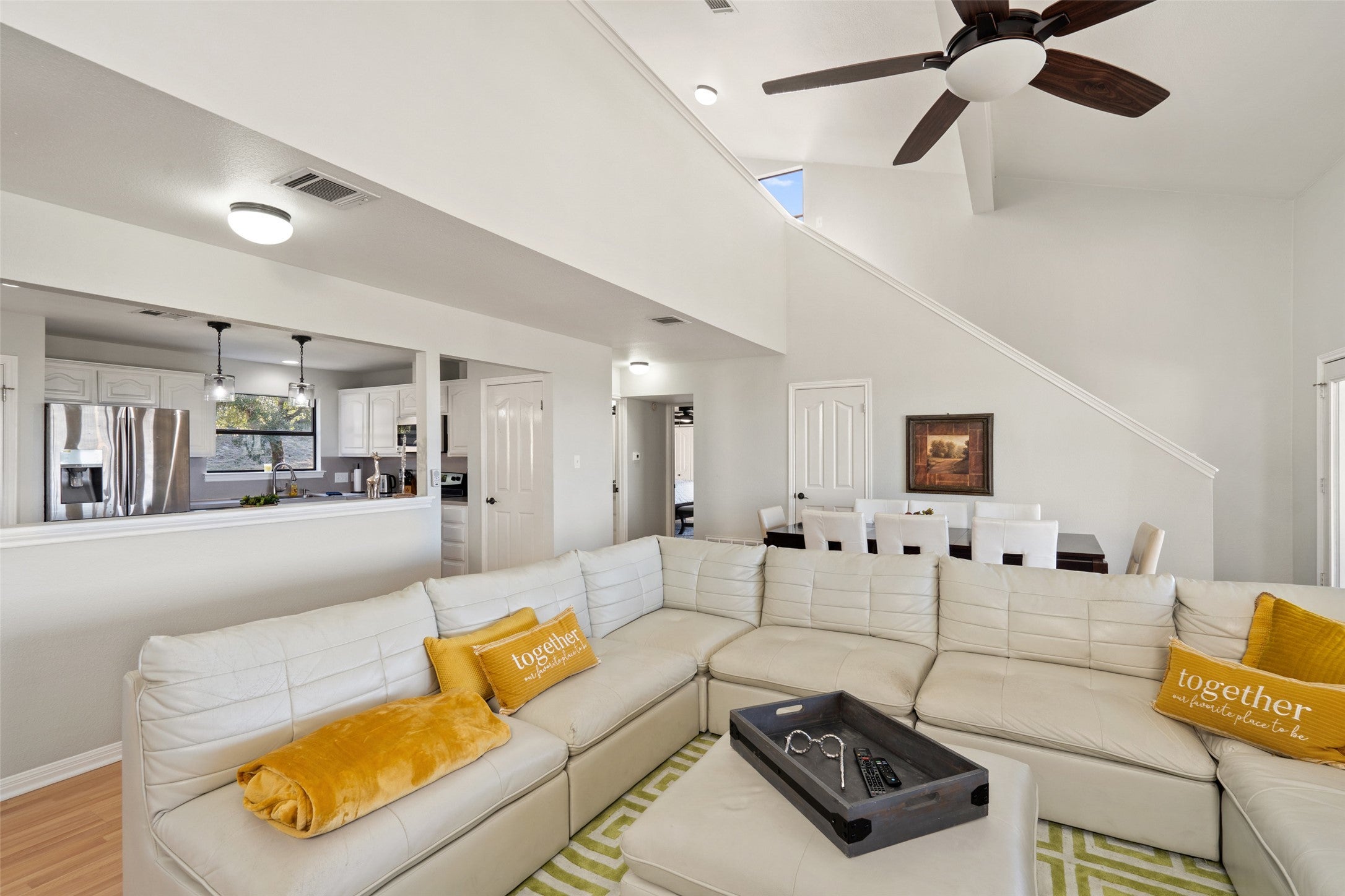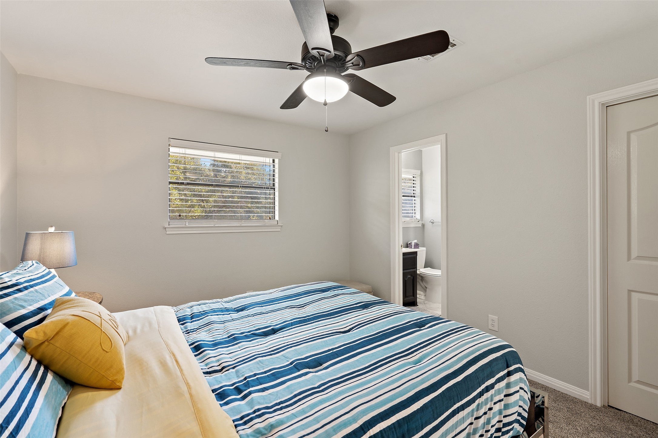Rare 5-acre Hill Country lease offering two homes on one property, ideal for extended families, multigenerational living, or those needing additional guest space. The main residence features vaulted ceilings and panoramic windows showcasing beautiful Hill Country views. The layout includes a primary suite on the main level and two upstairs bedrooms with a shared Jack-and-Jill bath, accommodating up to six residents. A second 2-bedroom, 2-bath home located just steps away through the attached garage provides additional living space for guests, family members, or a private home office. Outdoor living is highlighted by a large covered back deck perfect for dining and entertaining while enjoying the surrounding Hill Country landscape. The property includes a three-car garage with a spacious game room above featuring a pool table, ping pong table, and large TV. Light restrictions allow up to one horse per acre, and there is ample space for RV or trailer parking. Conveniently located approximately 15 miles from Bee Cave and Marble Falls, with easy access to local wineries, breweries, distilleries, and nearby Lake Travis recreation.