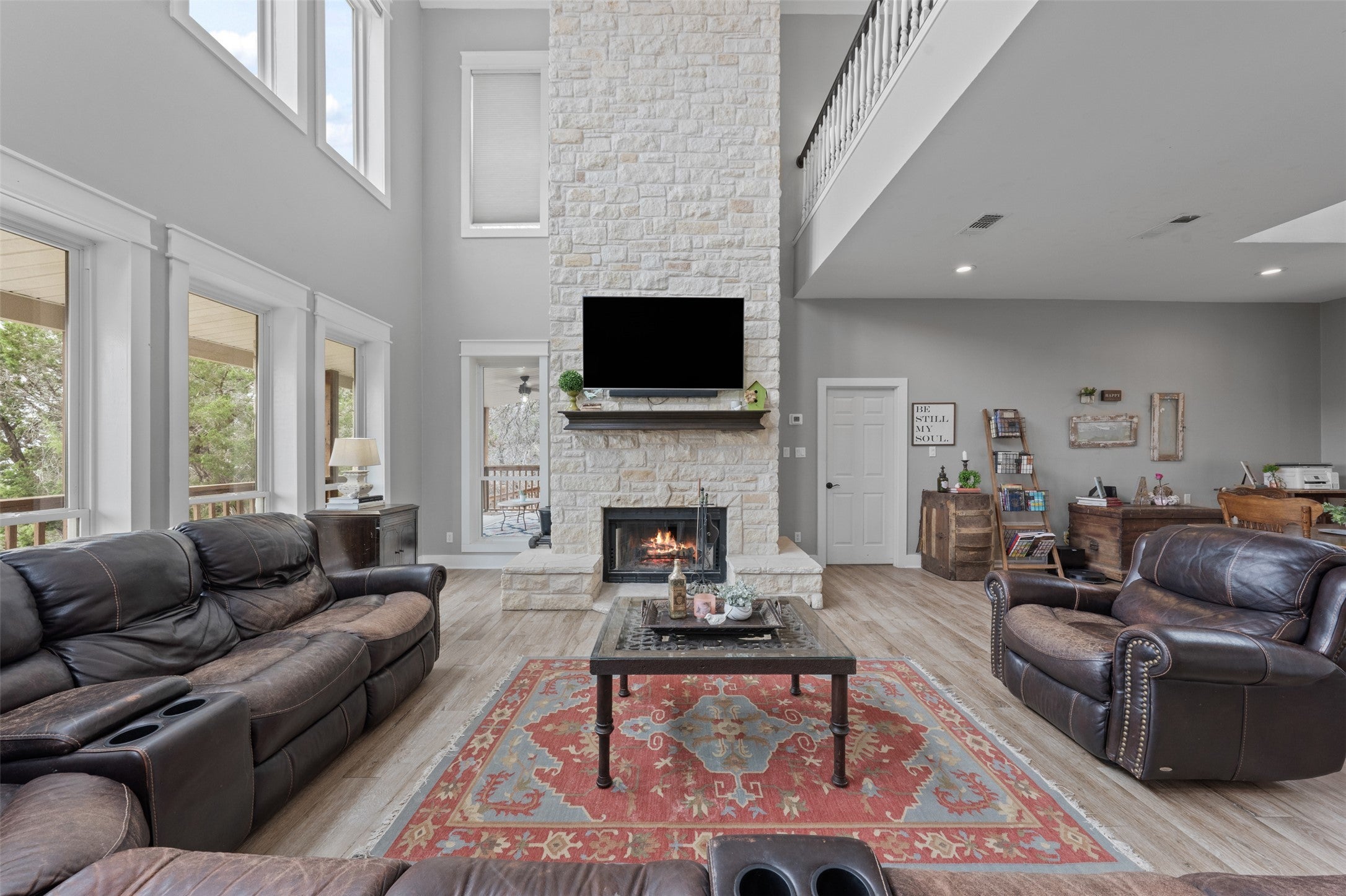 - Family Room, Stone, Wood Burning