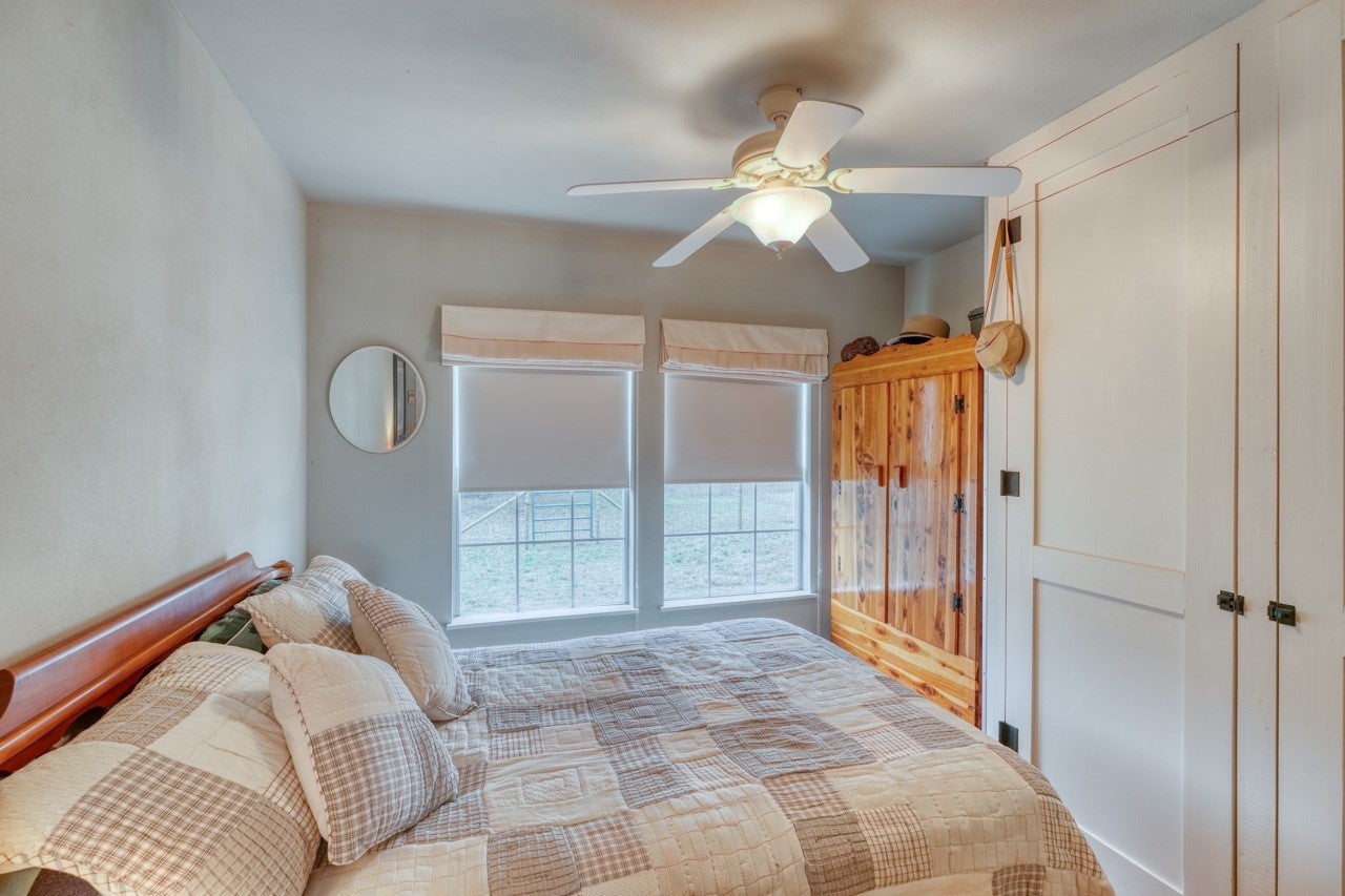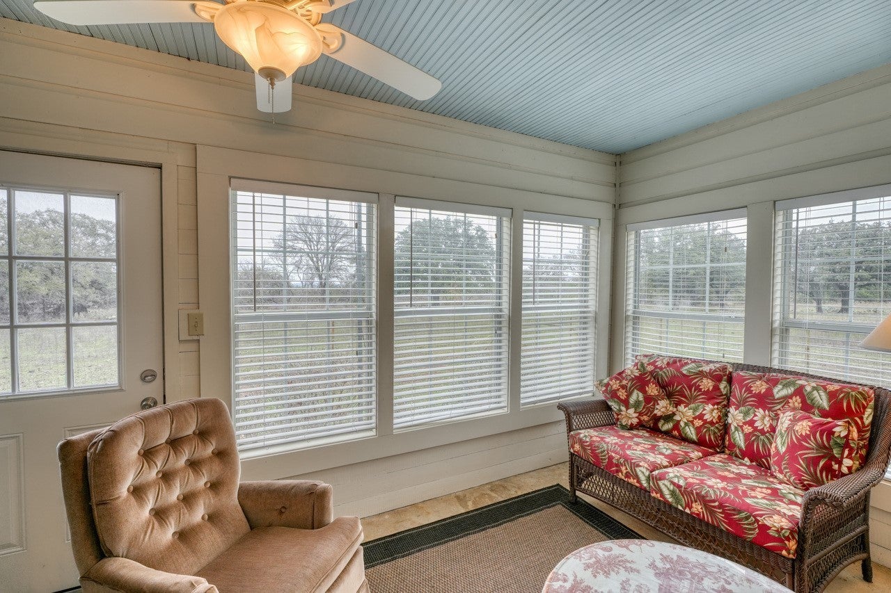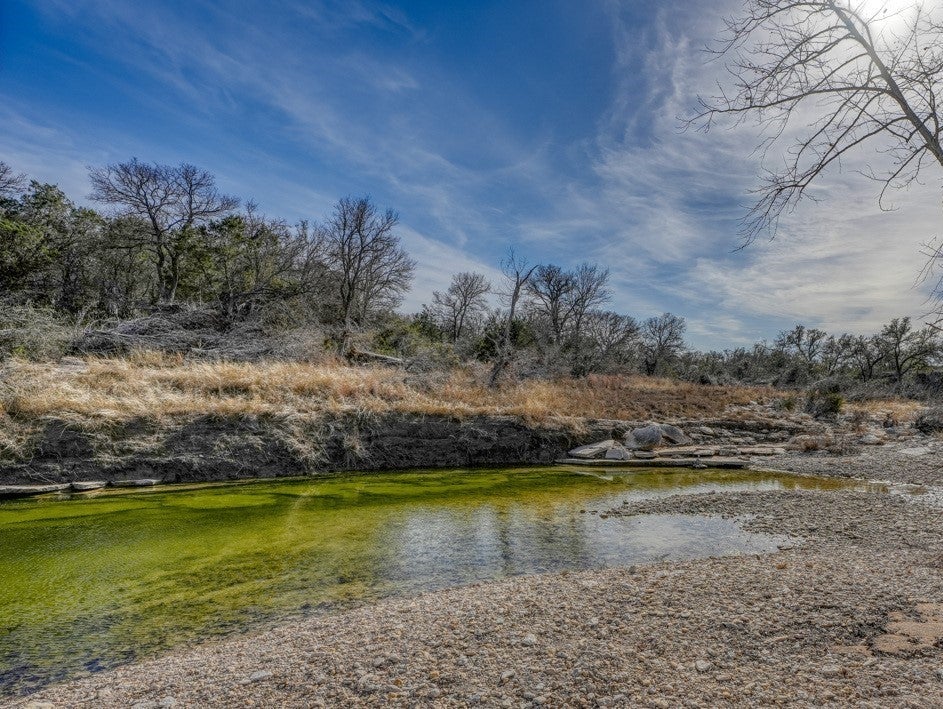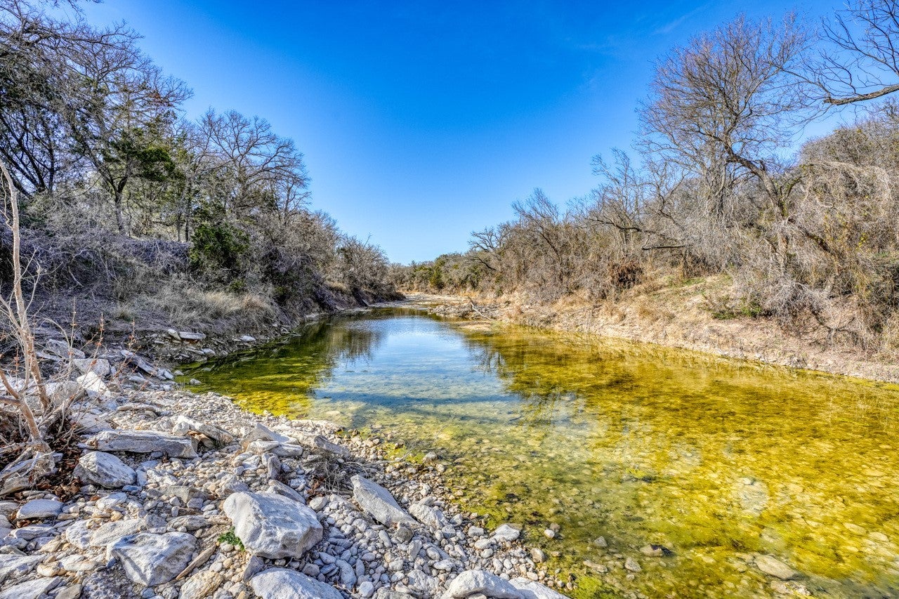 Conveniently located approx 14 miles North of Lampasas. Approx 1.3 miles off Hwy 281. Mostly a cattle grazing, hunting and recreational ranch. Float the creek in optimum weather periods or get your fly rod out at the deep holes and cast away. Drive through the gate on top of the plateau with expansive hill country views. There is a gradual drop of 120’ in elevation down to Simms Creek, the beautiful rock bottom creek is the main attraction. Water runs clear most of the time and you can see the bottom and fish swimming by. There are also three stock ponds, one known to have been previously fished. Lampasas County is known for great hunting and diverse wildlife, and Simms Creek 267 has it all. The property provides good habitat for whitetail deer, turkey, dove, ducks, feral hogs, and varmints. A good mix of heavy to moderate tree cover, forbs, and browse help attract wildlife to the ranch. The approx 1,032 sq ft updated 1940s ranch house includes three bedrooms, one bath, kitchen, enclosed sun porch, separate dining room and living area. With central air/heat for year round comfort. The natural hardwood floors have been carefully restored to bring back some of the original charm. There is a covered front porch with plenty of room for grilling or just sitting outside during a spring rain shower or enjoying the beautiful sunsets. The barn is perfect for storing your tractor, UTVs and ATVs. There is an old hay barn/horse stall. The ranch is blessed with ample water supplied by a 60 gpm private well.