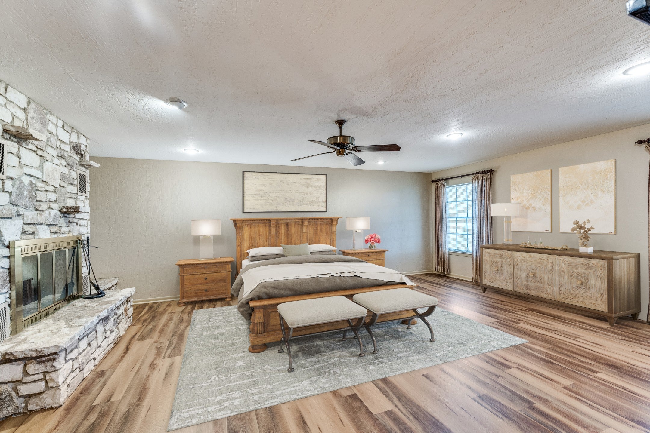 - Family Room, Outside, Stone, Wood Burning, Bedroom