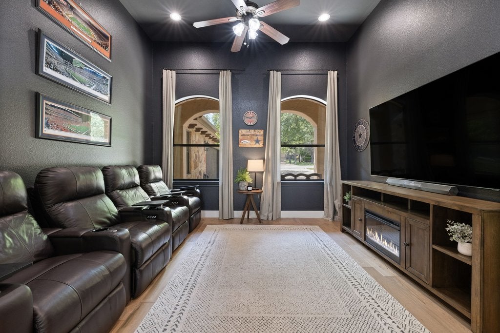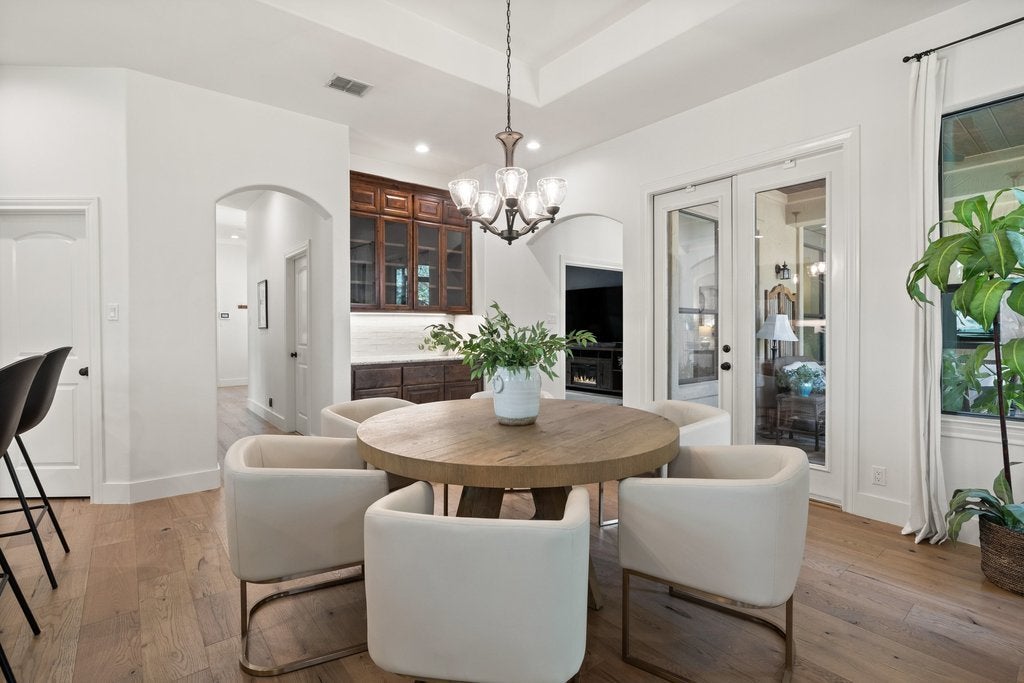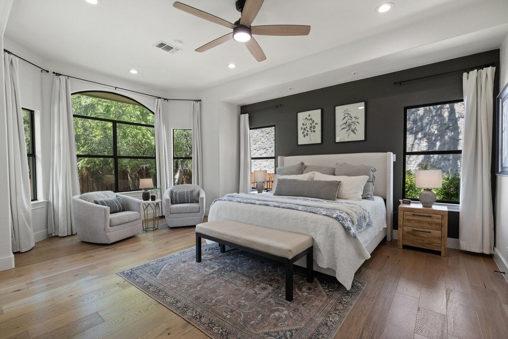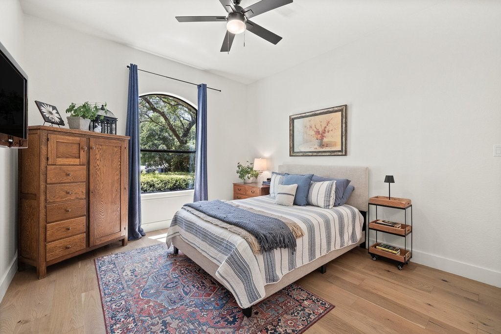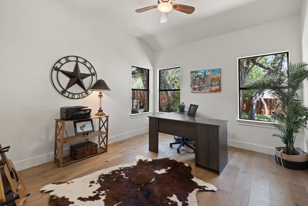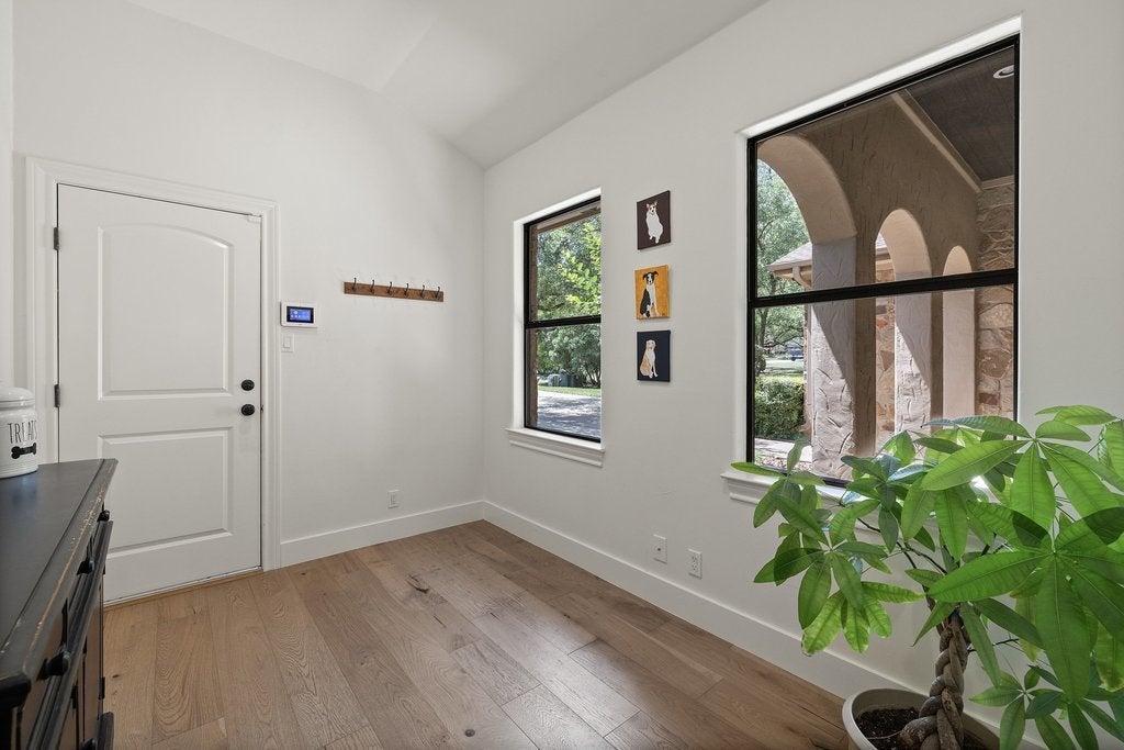 In the heart of Old Lakeway, beneath a canopy of mature trees, this beautifully reimagined single story home offers a rare blend of thoughtful design, everyday functionality, and inviting outdoor living, all just steps from miles of hike and bike trails and walkable neighborhood amenities. Inside, vaulted ceilings with exposed cedar beams and wide plank European white oak floors set a warm, elevated tone. The layout is exceptionally well designed, with flexible living spaces that adapt to the way you live. Whether you need a dedicated office, media room, or additional living area, every inch of this home has purpose. Custom cabinetry, designer finishes, and smart storage are thoughtfully integrated throughout. The home naturally draws you outdoors, where a fully screened porch and extended patio create a private, peaceful setting for daily living and entertaining. It is a space that invites you to slow down, whether starting your day with coffee or unwinding in the evening. The backyard feels tucked away and quiet, while the front and side landscape lighting add a stunning architectural presence after sunset. Thoughtful upgrades, including sound reducing window enhancements, contribute to a comfortable interior experience. The home’s position also offers immediate access to the vibrant trail system just beyond, creating a unique connection to the active Lakeway lifestyle right outside your door. The kitchen and baths have been beautifully updated with timeless finishes, including quartz countertops and custom tile work, and the home features smart technology and key system improvements that make it as functional as it is refined. Located within acclaimed Lake Travis ISD and just minutes from Lake Travis, golf, dining, shopping, and medical facilities, this home offers a lifestyle that is both connected and quietly removed. Magnificent neighbors convey. Owner/Agent.